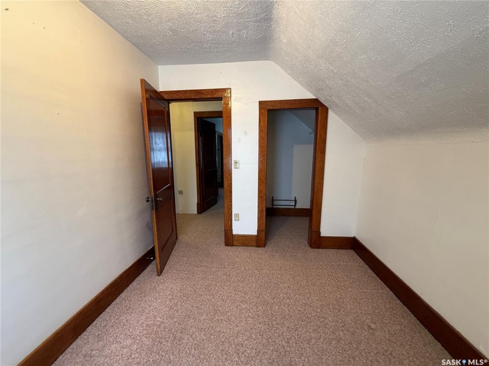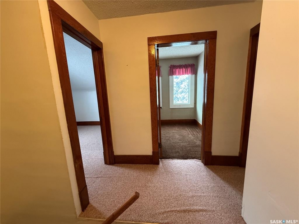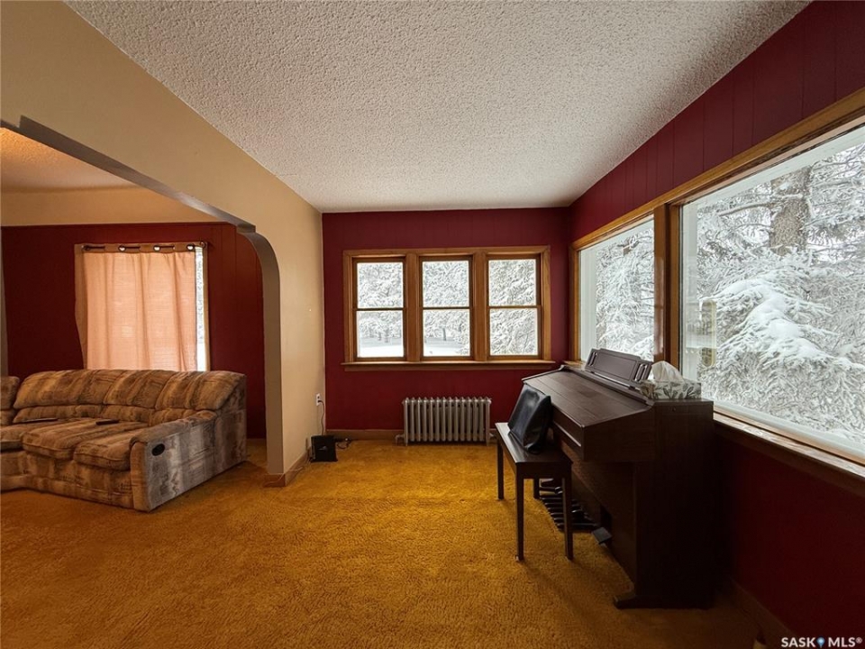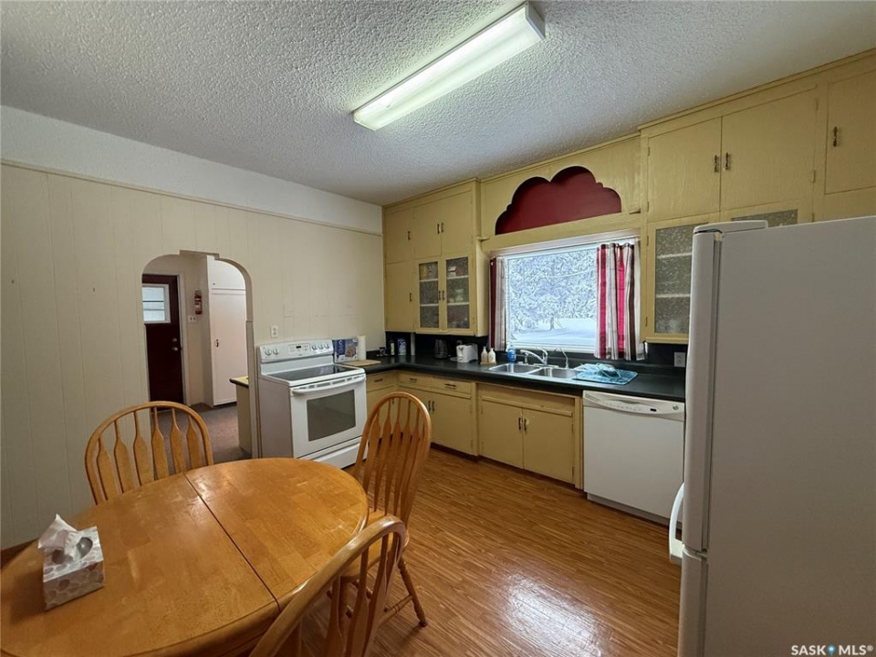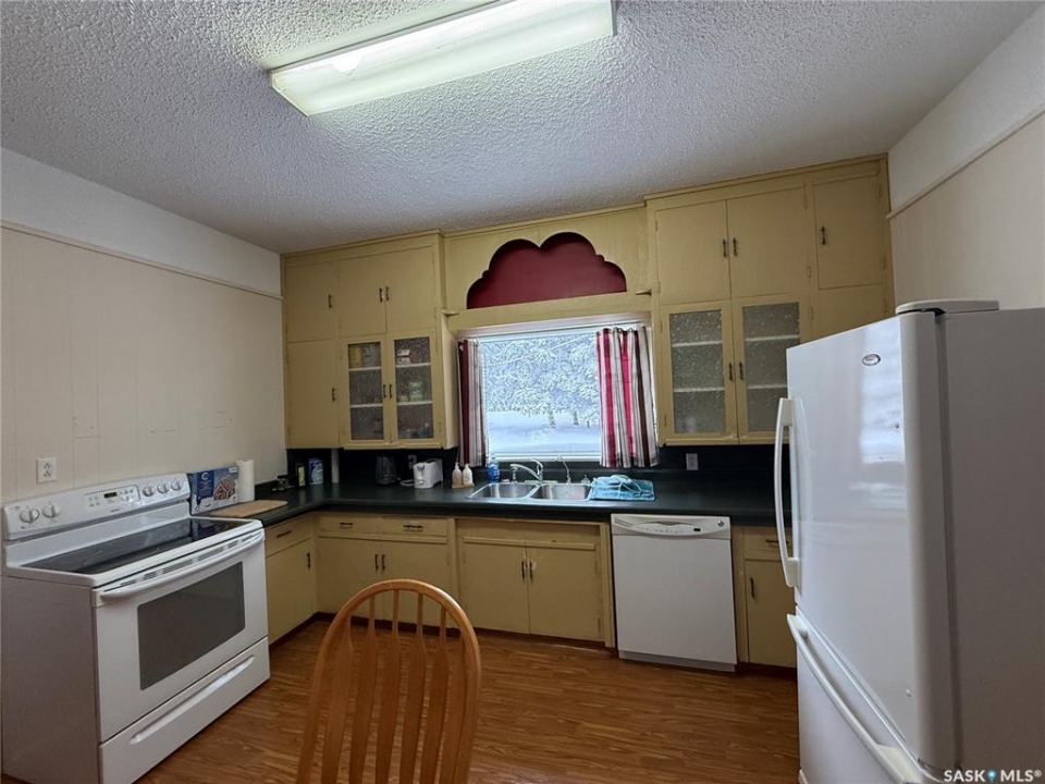Beautiful character home situated on an expansive 100 x 260 ft lot in the charming Village of Englefeld, approximately 25 minutes from the BHP Mine and the City of Humboldt. Originally built in 1925, this home was thoughtfully relocated from a farm site and placed on a full basement constructed in 1976, with an attached garage added in 2009. The home offers a functional and inviting layout, featuring direct access from the attached, insulated garage into a spacious laundry/mudroom. A standout feature is the main-floor primary bedroom, complete with a walk-in closet and convenient access to the main bathroom. The bright kitchen offers an abundance of cabinetry and comes equipped with a fridge, stove, and built-in dishwasher. The large living room is filled with natural light and showcases a cozy wood-burning fireplace. Adjacent to the living room is a versatile great room and an additional dining area with garden doors leading to a deck overlooking the beautifully treed backyard. The second level includes four bedrooms plus a den, offering excellent space for family living or home office needs. The basement features another wood-burning fireplace, a toilet, and is already plumbed for a shower and sink, with the remaining space open for future development. A separate access from the basement to the garage provides excellent potential for a future rental or in-law suite. Outside, you'll appreciate the park-like yard with mature trees, garden space, and plenty of green space. A charming barn-style shed at the rear of the property provides additional storage or could be transformed into a playhouse. Homes offering this level of character, space, and lot size rarely come available at this price point. Immediate possession available—call today to book your private showing.