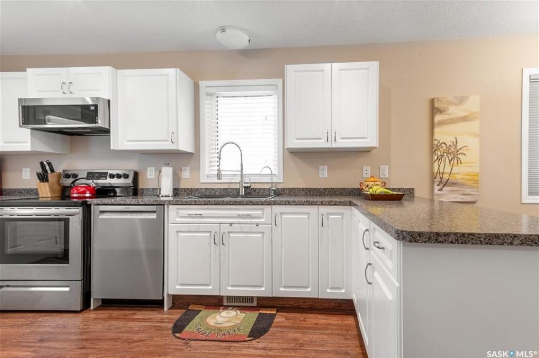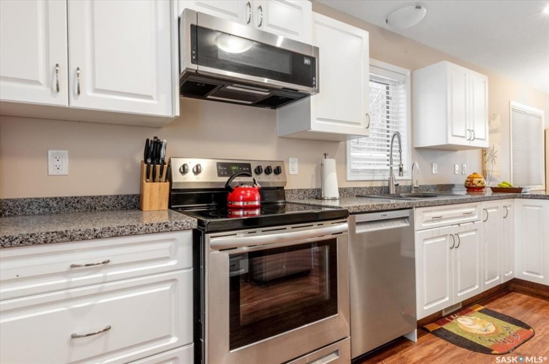 Located in the quiet town of Fort Qu'appelle, with Echo & Pasqua Lake to the West, along with Mission & Ketepwa Lake to the East, the convenience of access to lake life makes this property a one of kind. Offering excellent curb appeal with the modern exterior finishes, and an extended driveway to allow for more off street parking. Welcoming you inside to the home is the well sized living room, highlighted by the expansive windows allowing for natural light to flow into the home throughout the day. The modern day open concept floor plan invites you in the dining area, and into the kitchen. Offering plenty of cabinet space, countertop areas, the modern looking kitchen is complete with high end stainless steel appliances. Seller has added a microwave, dishwasher and new sink, and faucets for extra value. Vinyl plank flooring is found through out the home. Moving along the main level is a 4-piece bathroom with additional medicine cabinets added (ensuite as well.) The secondary bedroom is well sized, and the primary bedroom is highlighted with a 3-piece ensuite, walk in shower, and two separate closets. Hatch access in the laundry room leads into the crawl/partial basement highlighted with a hi-efficiency furnace, water softener, air exchanger and a recently added sump pump for extra protection for your investment. Excellent storage can be found down here. A fully insulated 1 car attached garage is ideal for those cold winter mornings, and storage for city garbage/recycling bins. Outback you are greeted by a patio area, perfect for morning coffees and summer bbq's. A new shed has been added, with the seller including all garden tools, shovels and more for the buyer. Additional fencing has been added with central A/C and underground sprinklers completing this move in ready home. Have your agent book a showing today!