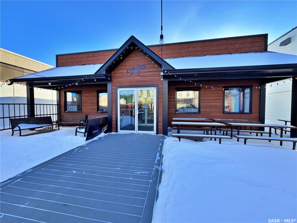BUILDING FOR SALE: ENDLESS OPPORTUNITIES WITH THIS ONE!! — BUILT IN 2019 with 2364 SQFT — great space for a bakery, restaurant or a pub/bar, and with its excellent patio space, it offers plenty of potential for outdoor dining! Also a great opportunity for retail space (front-approx 1500 SQFT). here's your opportunity to own a next-to-new building in the heart of downtown Moosomin; a vastly GROWING community on the #1 highway in SE SASK servicing over 30,000+ people in the surrounding area! This 2364 SQFT commercial property has become a beloved fixture in the community, currently offering ice cream, deli items, delicious daily specials, baked goods, fruits, vegetables, and fresh meat. This modern building (wheelchair accessible) features a bright storefront, good sized kitchen, office space, a wheelchair-accessible washroom (plus employee washroom+laundry), on-site staff parking, and a lovely outdoor patio with ample seating! As the current owners look forward to retirement, they're also offering this turn-key operation to a new owner who can continue its success -- the CRATEHOUSE business is also for sale (MLS � SK026274-->includes the building, land, inventory, and equipment.) With a recent multi-million dollar expansion to our airport, many new commercial/industrial developments, a new 90-spot daycare opening, and our excellent health care facilities, Moosomin is the place to be! NOW PRICE AT $575,000!!