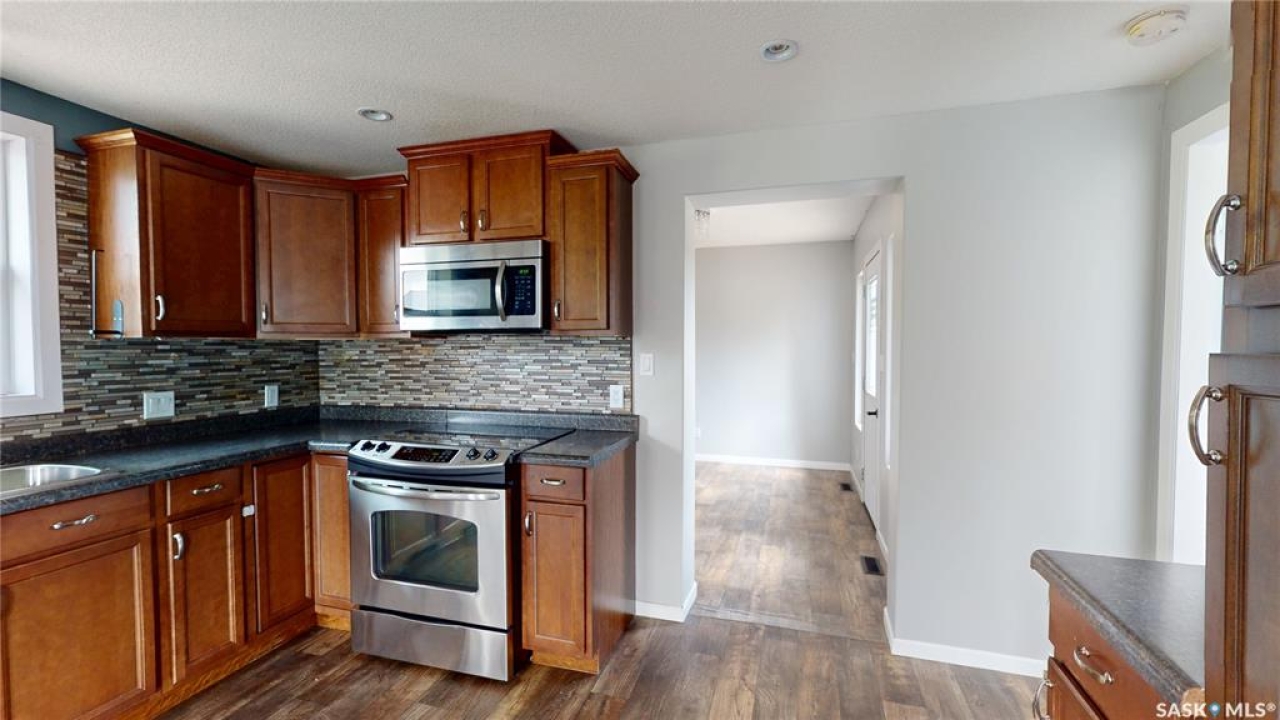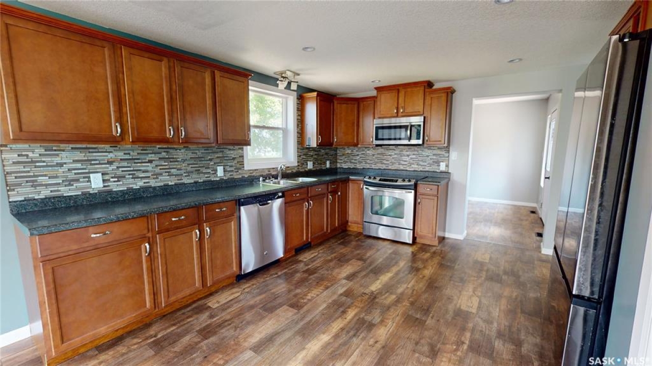 NEW PRICE! UPDATED 1 1/2 story home on a whopping 87' x 195' LOT! the whole home was gutted in 2013 and redone! 2 bedrooms, 2 bathrooms, tiled bathrooms, central air, updated electrical & plumbing, main floor laundry, lovely backyard -- these are just a few of it's finest features! -- MAIN FLOOR: the mudroom features ample space for a large closet & access to the front deck. The kitchen features stainless steel appliances, tiled backsplash and under cabinet lighting. The dining & living room boast south, east, & west facing windows, a lovely wood feature wall and access to the private deck. A laundry space and 4pc bathroom with a custom tiled shower and jetted tub are just off the mudroom/kitchen. 2ND FLOOR: 2 bedrooms and a 3pc bathroom with a tiled shower and floor is located on the 2nd floor. BASEMENT: the basement is a great space for storage. YARD: a 87' x 195' lot, private deck, flower beds, tree house, fire-pit area — a little backyard oasis! UPDATES INCLUDE: exterior (2013) & interior (2014); electrical + panel, plumbing, furnace, water heater (2023), AC, windows, doors, drywall, insulation, siding, shingles, soffit, fascia, decks -- to many updates to list! NOW PRICED AT $139,000! click the virtual tour link to have an online look!