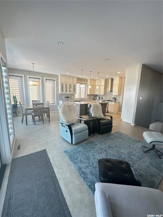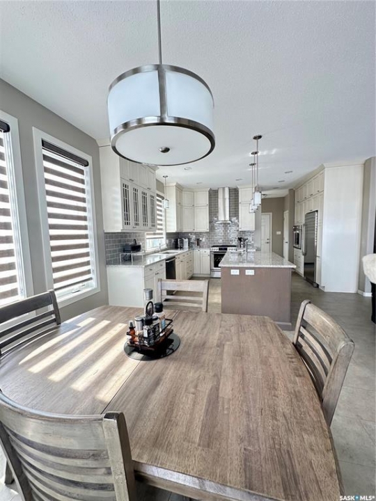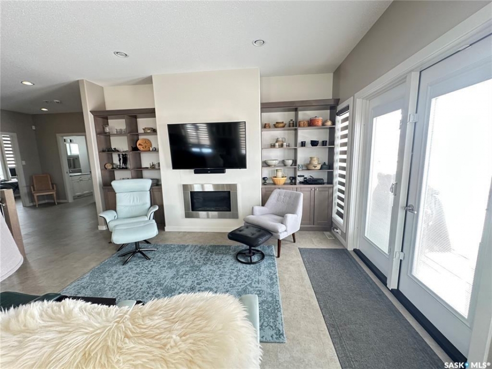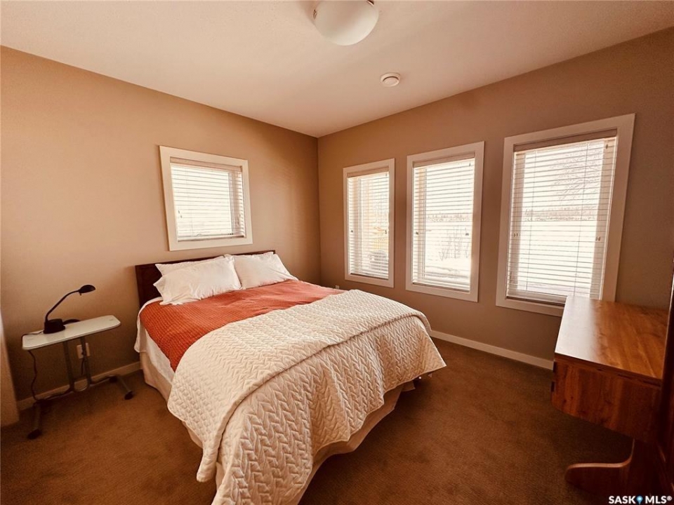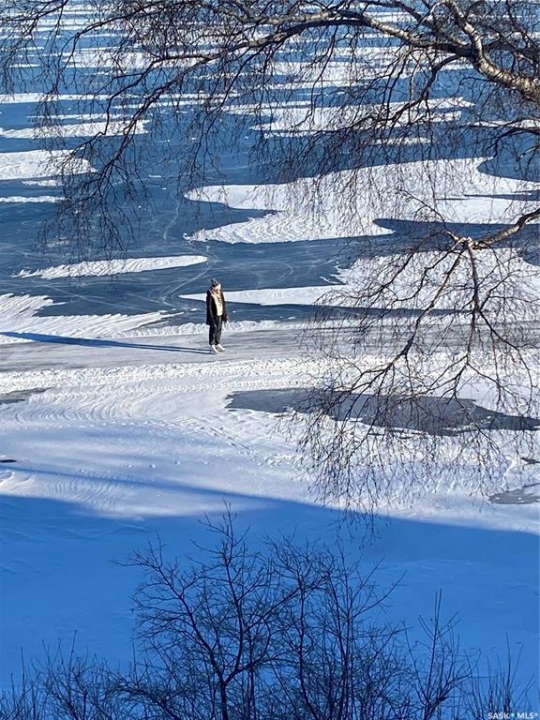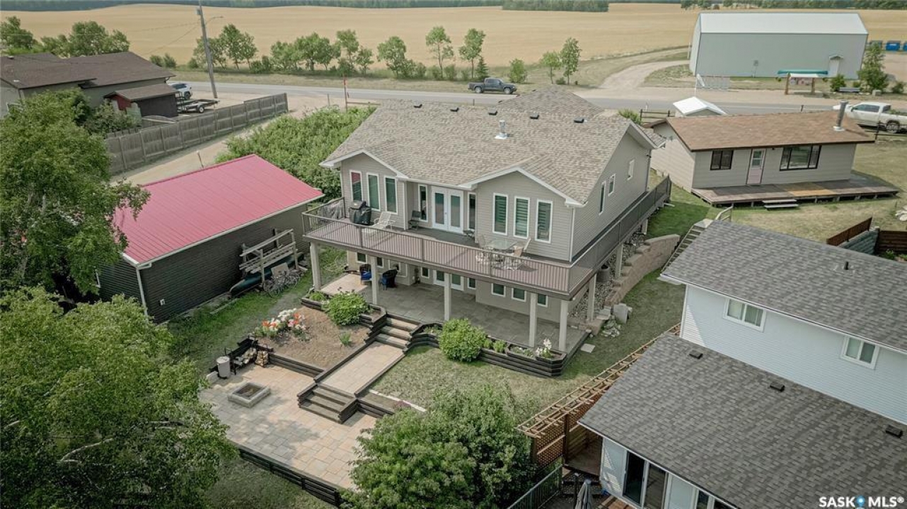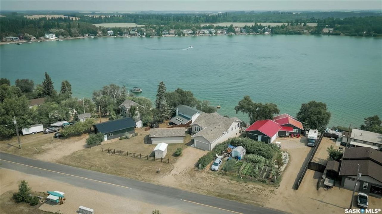 Welcome to this stunning modern waterfront home in the Hamlet of Crystal Lake, SK. Built in 2017, this exceptional property offers over 2,000 sq. ft. of beautifully developed living space, complete with walkout level, in floor heat, and breathtaking lake views from both upper and lower decks. Designed with meticulous attention to detail, the home features a spectacular custom kitchen with quartz countertops, a large island, high end cabinetry, a butler's pantry, and premium appliances including a gas range and convection oven. Expansive energy efficient windows and patio doors fill the home with natural light and frame the pristine spring fed lake. The upper level includes a spacious primary bedroom with stunning lake views and a private 2 piece ensuite. A luxurious 3 piece main bath features a high end steam shower for the ultimate relaxation experience. The walkout lower level offers a family room, two additional bedrooms, a full bath, and a recreation area with direct walk-out access to the lakeside patio and fire pit. The professionally landscaped walkway and staircase to the water enhance the property's natural beauty and functionality. A 700 sq. ft. rustic detached guesthouse sits just southwest of the main home, providing additional private sleeping quarters. A private dock is located directly in front of the property. With ample parking, a double-attached garage, this move-in ready home blends luxury, comfort, and lakeside living. It is a rare opportunity to own a truly exceptional waterfront home. Virtual Tour link: https://www.facebook.com/watch/?v=784927980938417