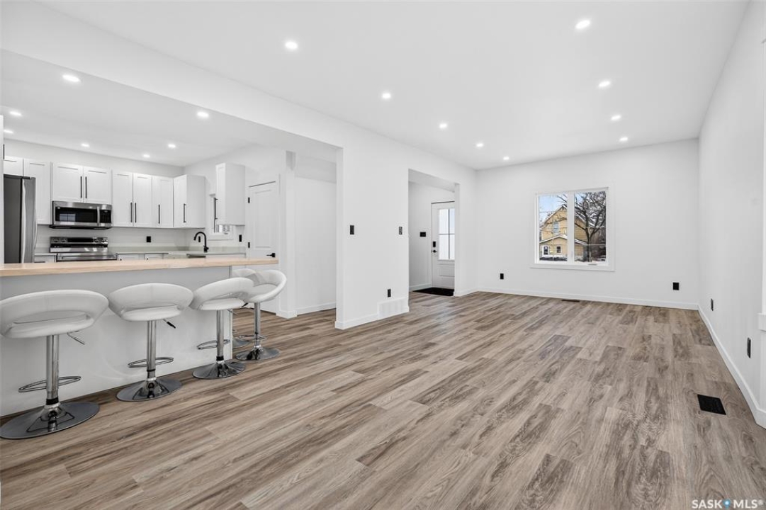 This beautifully renovated one and half storey has been completely transformed, offering the comfort and reliability of a nearly new home with the charm of an established neighborhood. The interior has been stripped to the studs and rebuilt with new insulation (except attic), poly, drywall, interior doors, hardware, flooring, and trim. Main floor is bright with large new windows throughout allowing for plenty of natural sunlight. The stunning kitchen is incredibly functional showcasing white cabinetry with 39-inch uppers, quartz countertops, a farmhouse sink, excellent pantry storage. A full electrical upgrade, including new service and wiring throughout the home and garage. The mechanical systems are entirely new as well, featuring a high-efficiency furnace, Navien tankless hot water heater, central air, all new ductwork, new waterlines, and updated ABS plumbing. The spacious bathroom has been completely redone. Basement is roughed in for a future bathroom and includes a backflow check valve. Exterior improvements include new windows and doors, newer shingles on both the house and garage, and new soffit, fascia, and eavestroughs with leaf guards. The single garage features a new overhead door, opener, and generous attic storage. Both the front and back decks are newly built and the yard is well-designed with garden space and additional parking finished with reclaimed asphalt. This home offers exceptional value with extensive upgrades inside and out! Quick possession available. *GST is included in the purchase price. Buyer agrees to assign GST rebate back to the Seller.