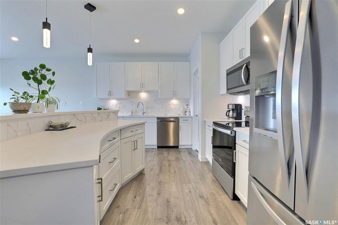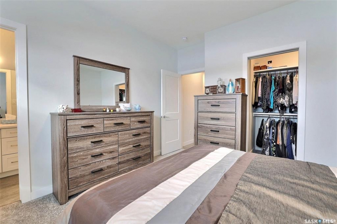Beautiful, meticulously maintained bungalow condo with double attached garage. Spacious entry leads to wide open floorplan flooded with natural light from the wall of south facing windows. Large kitchen with gorgeous white cabinets, large sit up eating island, plenty of stone counterspace and huge pantry. Large sunny living and dining room with garden doors to rear yard. Primary suite with walk in closet and 3pc ensuite featuring double sink vanity and oversized shower. 2nd bedroom generous in size plus main floor laundry room and main 4pc bath. Basement features insulation and partial wiring and is wide open for your future development plans with roughed in plumbing. Direct entry to the double attached, insulated and heated (electric) garage. Sunny rear yard offers open space behind and is xeroscaped with patio, maintenance free greens and rock garden area. All top end appliances plus central air, island stools and living room wall mounted TV included. Complex very well managed and ideally located close to all east end amenities. Grocery, shops, restaurants and more all in walking distance. Move in ready. Call today!