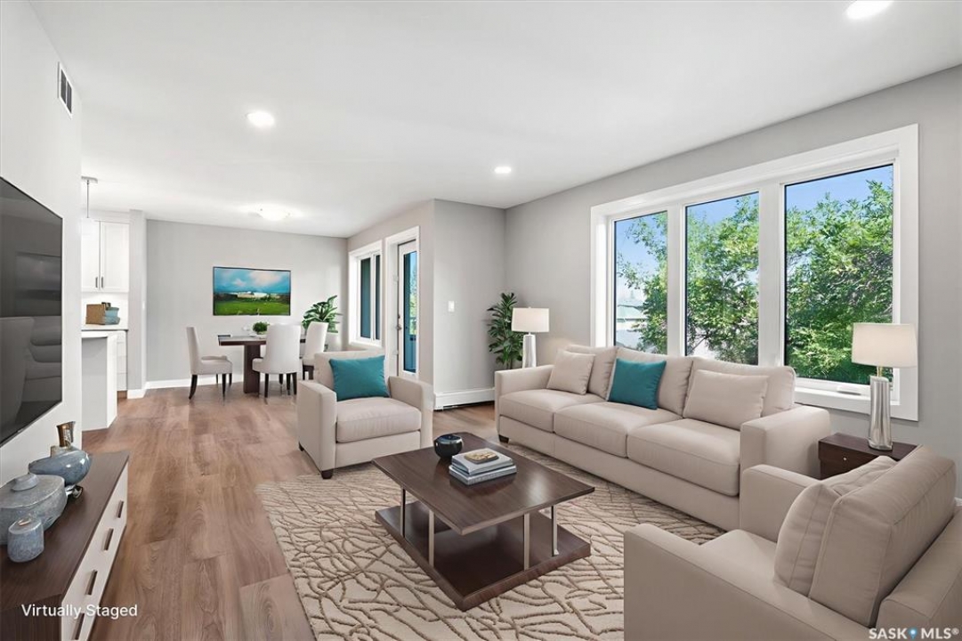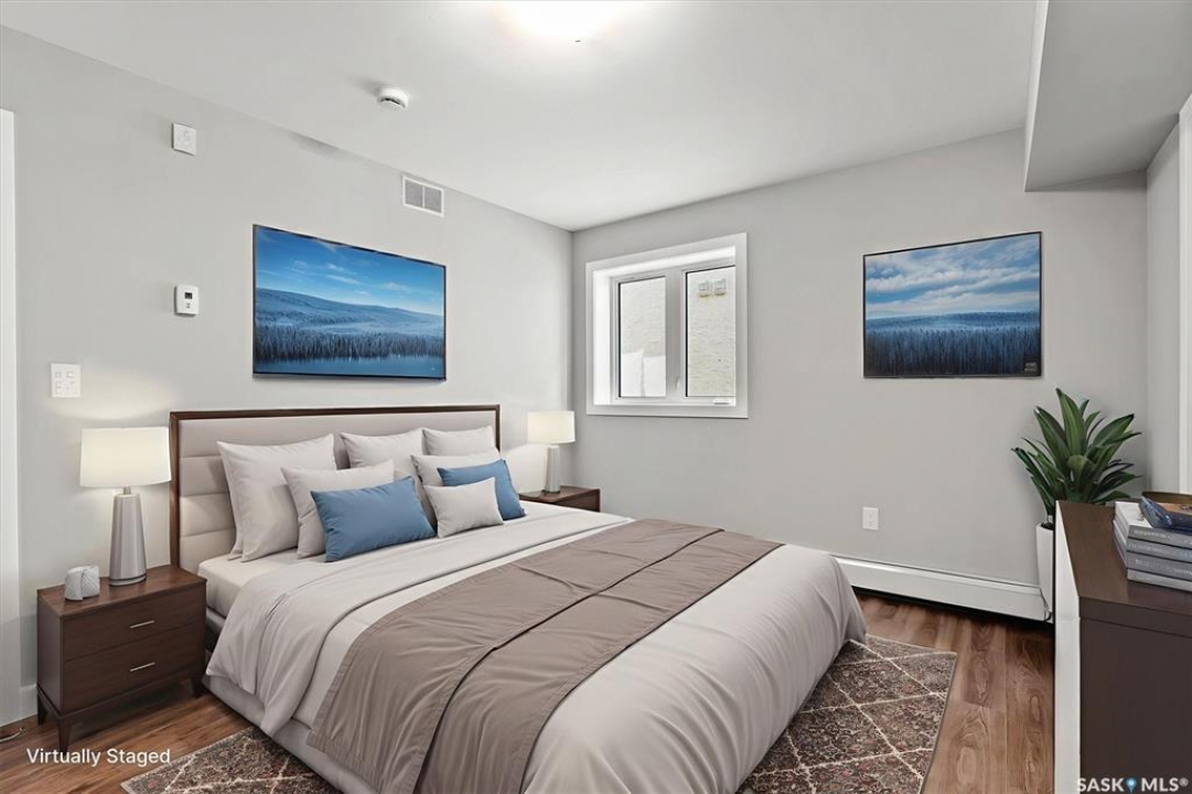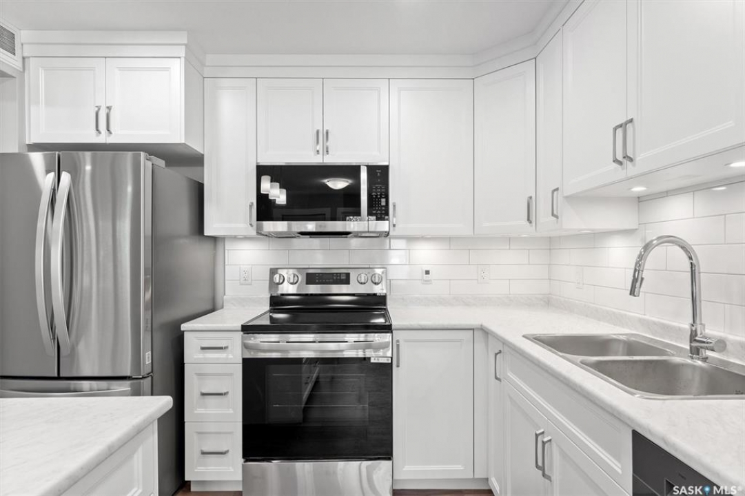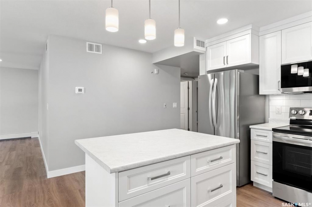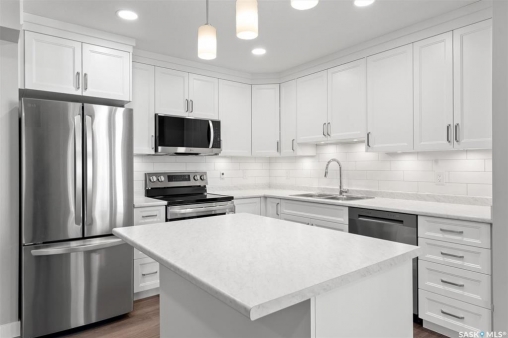 Welcome to #202 - 318 108th Street in Sutherland! This is a beauty! If you're seeking a brand new condo in a prime location near the University of Saskatchewan and the upcoming SaskPolytech, this might be the perfect fit for you! Featuring light grey walls, barnwood-style vinyl plank flooring, and crisp white cabinets, this unit boasts a timeless color palette. This second-floor corner unit offers two spacious bedrooms, one of which includes a convenient 2pc ensuite. Upon entering the suite, you'll be greeted by a generous foyer complete with a large front entry closet. The kitchen is equipped with plenty of cabinetry, tiled back splash, under cabinet lighting, brand new stainless steel appliances, and an island featuring stylish pendant lighting. From the dining area, you can access a balcony that includes a natural gas BBQ hookup. The living area is filled with natural light, thanks to an abundance of windows facing a peaceful residential area. This home features vinyl plank flooring throughout the primary living spaces and bedrooms, while the entryway and bathrooms are finished with linoleum for easy maintenance. Call your favorite Realtor � today to take a look at this lovely condo!