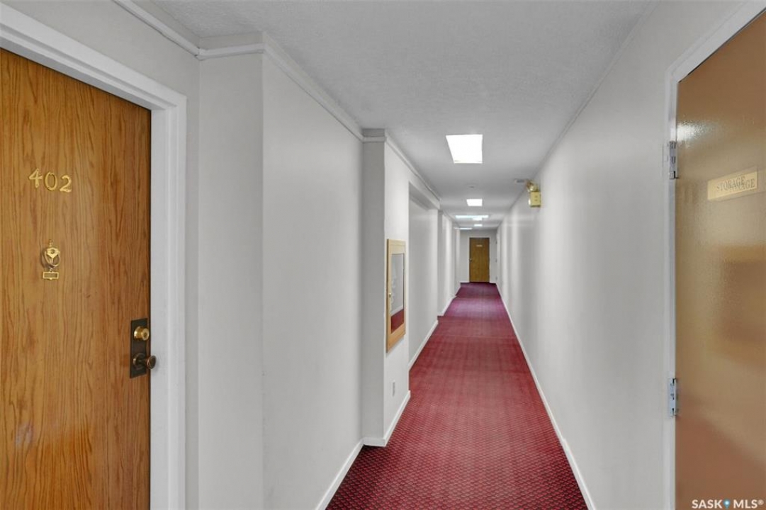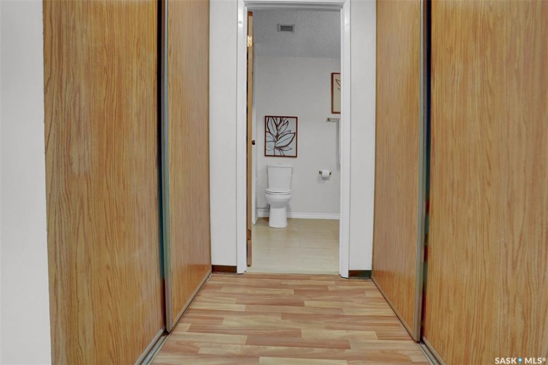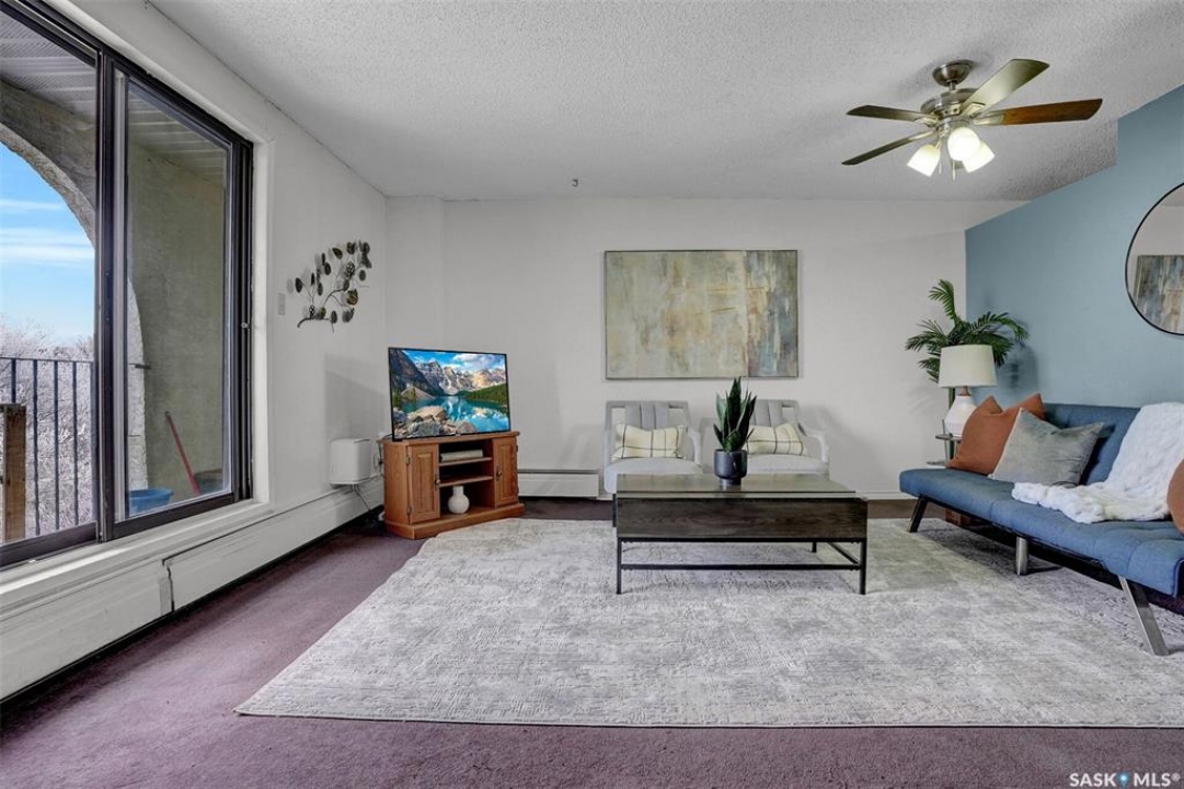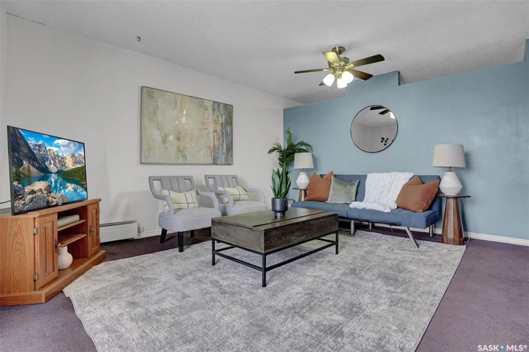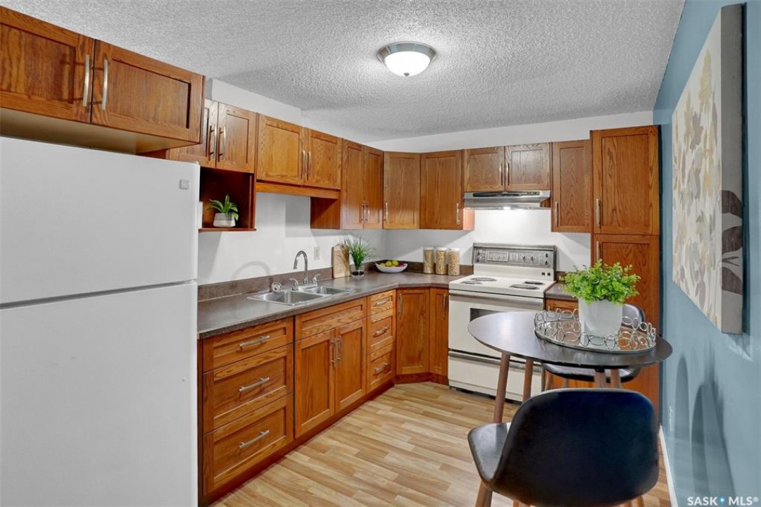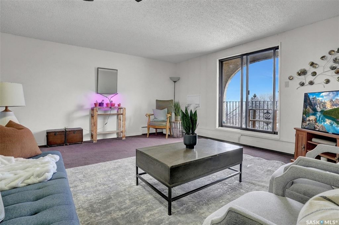 Welcome to this well-maintained 926 sq. ft. condo offering a comfortable and convenient lifestyle in a location with close proximity to downtown, the hospital, and Wascana Park. This bright and inviting unit features 1 spacious bedroom and 1 updated 4-piece bathroom, along with the added convenience of covered parking with additional storage. Bright white walls throughout most of the unit enhance the natural light and create a clean, welcoming atmosphere. The oak kitchen has been refreshed with updated hardware, blending classic warmth with a modern touch. The large living room extends to a private balcony, perfect for enjoying fresh air or relaxing at the end of the day. Heat and water are included in the condo fees, adding excellent value and peace of mind. The generous bedroom includes a walk-in closet, while the updated bathroom offers both style and functionality. This is a great option for first time buyers, those that want to be close to the hospital and downtown or investors.