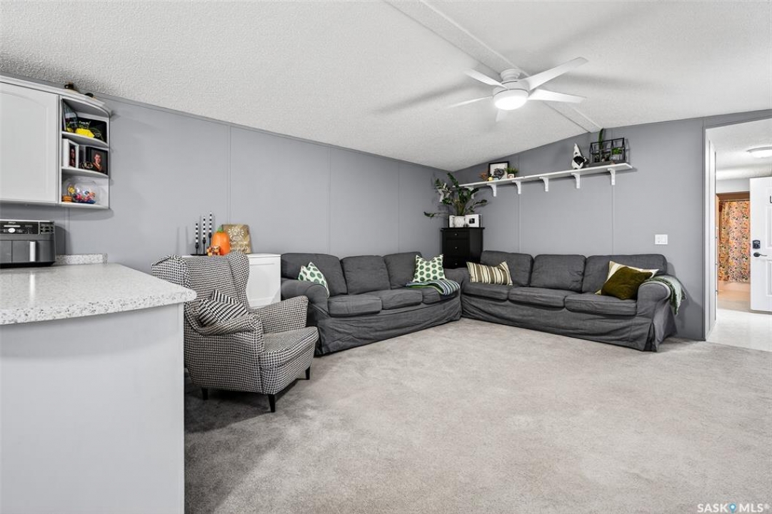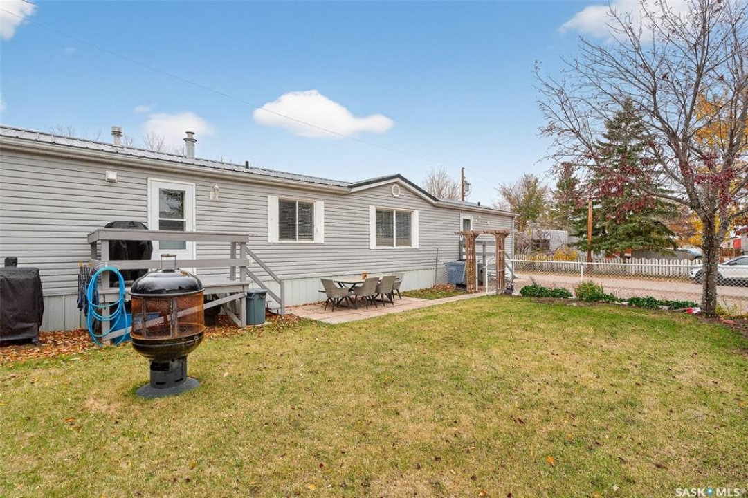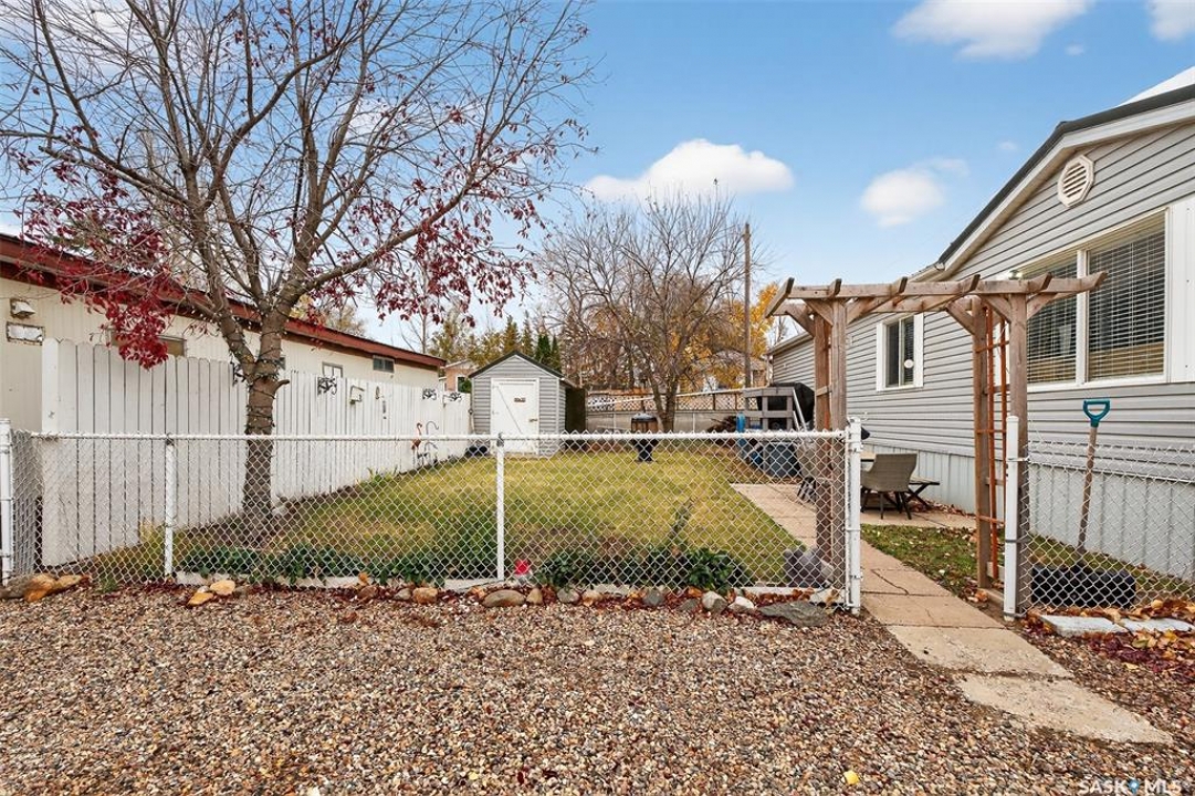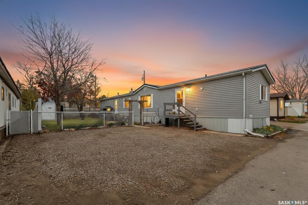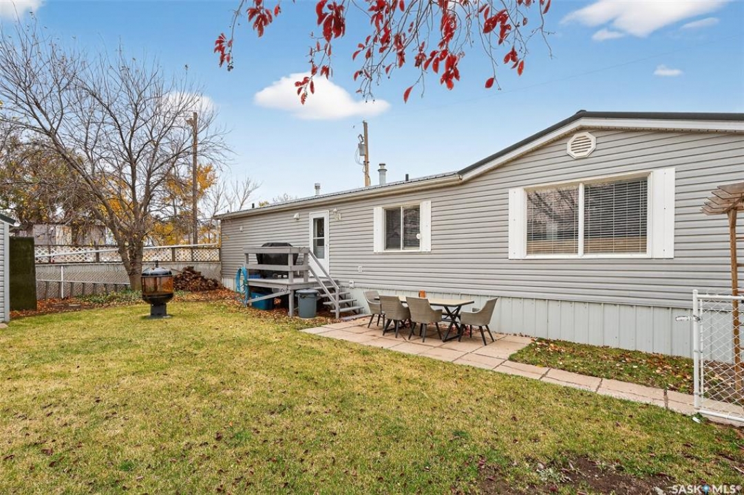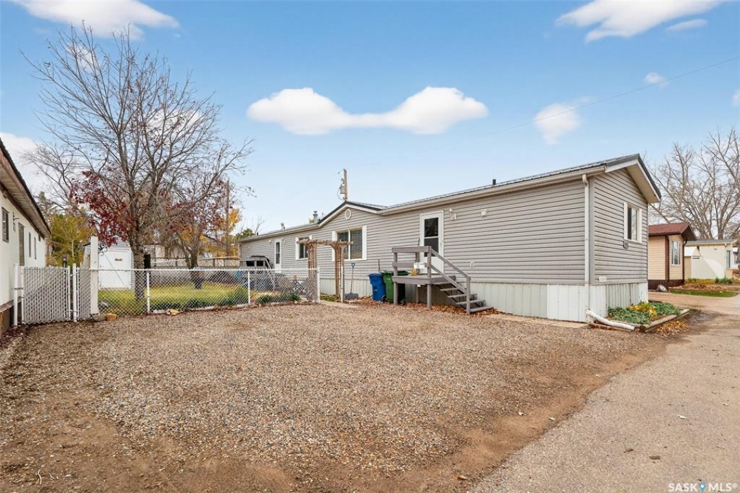 WARM & COZY! BRIGHT & SPACIOUS! This 2003 home features a great layout welcoming you with a functional entry. Upon entering, to the right you will find 2 Bedrooms & a full Bath nicely separated from the open concept Living Area. The Kitchen has ample storage & counter space with a large peninsula (perfect for baking or setting out treats for entertaining!), built-in Dishwasher & walk-in Pantry! The Laundry is conveniently located in the back entry (access to rear deck with natural gas BBQ hook up) & there is more storage. The Primary Suite is your personal retreat with a full Ensuite PLUS walk-in closet! The outdoor space is fenced & nicely sheltered with perennial plantings along the fenceline, patio & a shed for your outdoor needs. Monthly fees are $801.35 & include lot pad fees, city licencing fee, taxes, water & sewer costs, garbage & recycling plus park maintenance & snow removal. Quick possession is possible! All that is missing is……YOU!