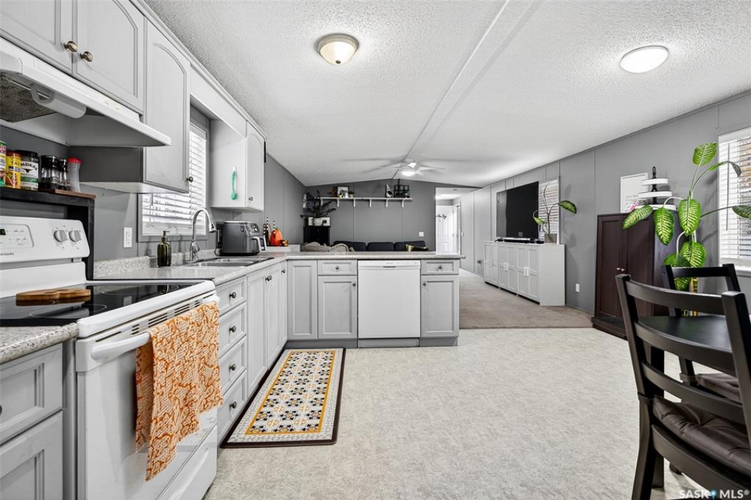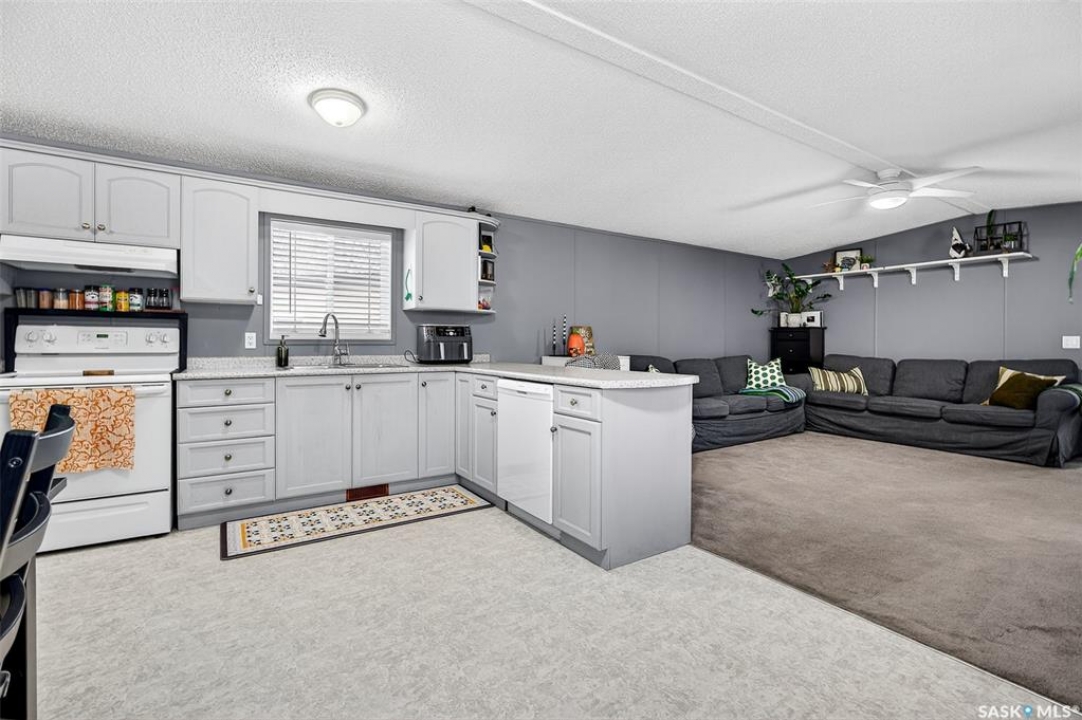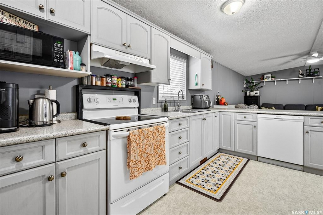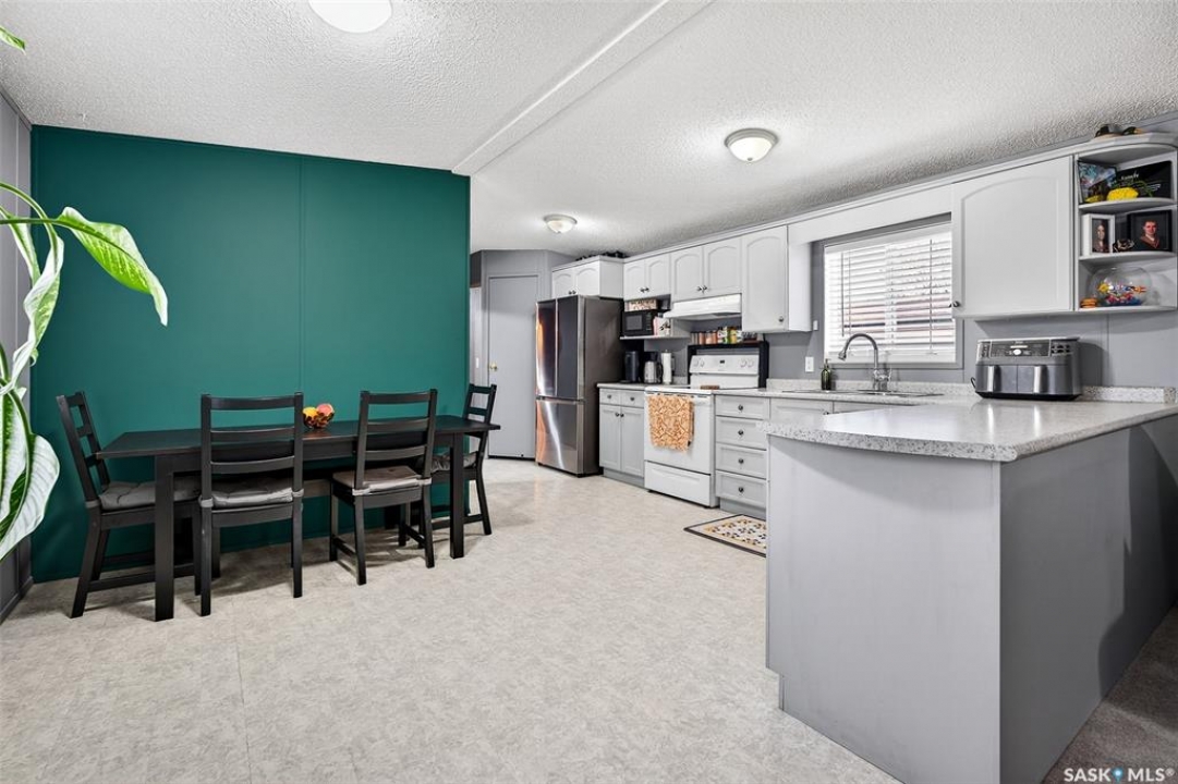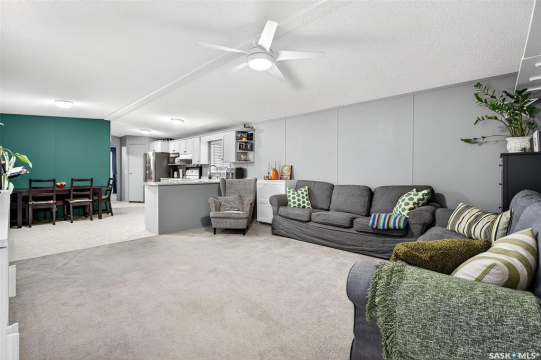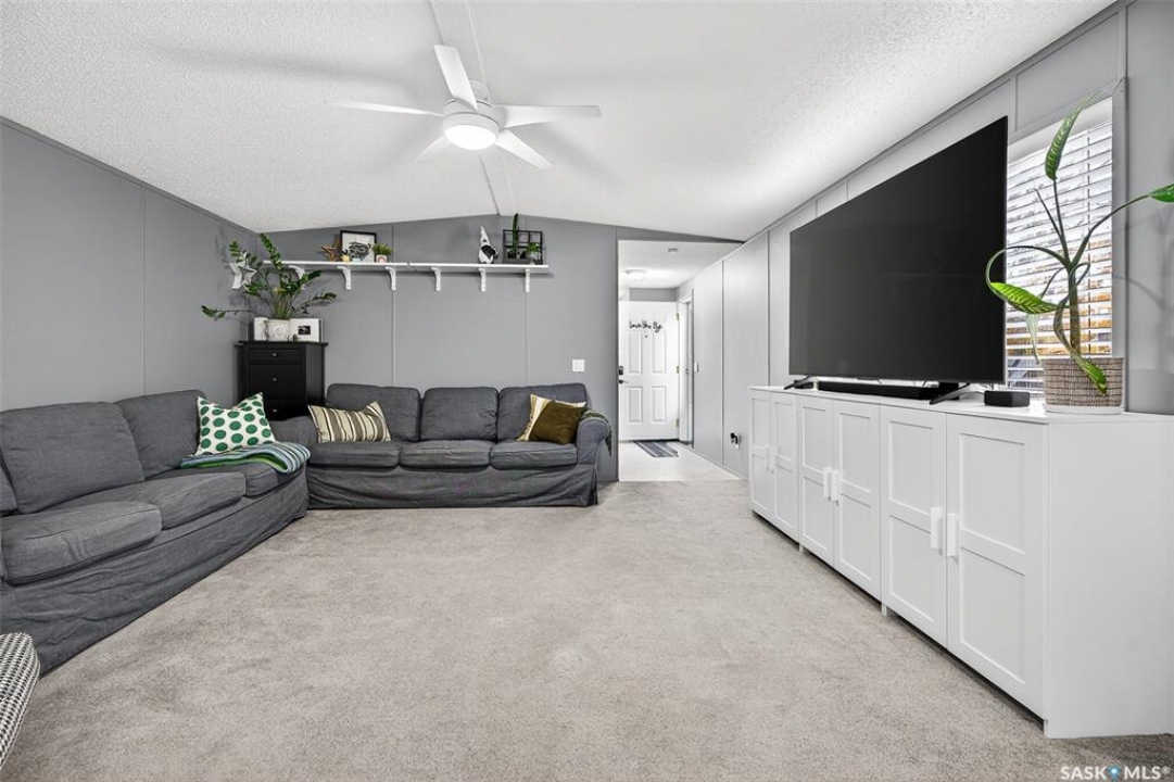WARM & COZY! BRIGHT & SPACIOUS! This 2003 home features a great layout welcoming you with a functional entry. Upon entering, to the right you will find 2 Bedrooms & a full Bath nicely separated from the open concept Living Area. The Kitchen has ample storage & counter space with a large peninsula (perfect for baking or setting out treats for entertaining!), built-in Dishwasher & walk-in Pantry! The Laundry is conveniently located in the back entry (access to rear deck with natural gas BBQ hook up) & there is more storage. The Primary Suite is your personal retreat with a full Ensuite PLUS walk-in closet! The outdoor space is fenced & nicely sheltered with perennial plantings along the fenceline, patio & a shed for your outdoor needs. Monthly fees are $801.35 & include lot pad fees, city licencing fee, taxes, water & sewer costs, garbage & recycling plus park maintenance & snow removal. Quick possession is possible! All that is missing is……YOU!