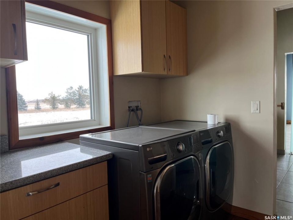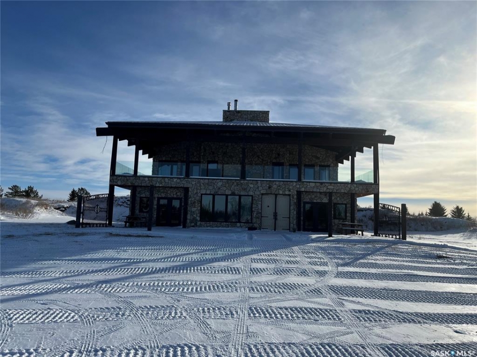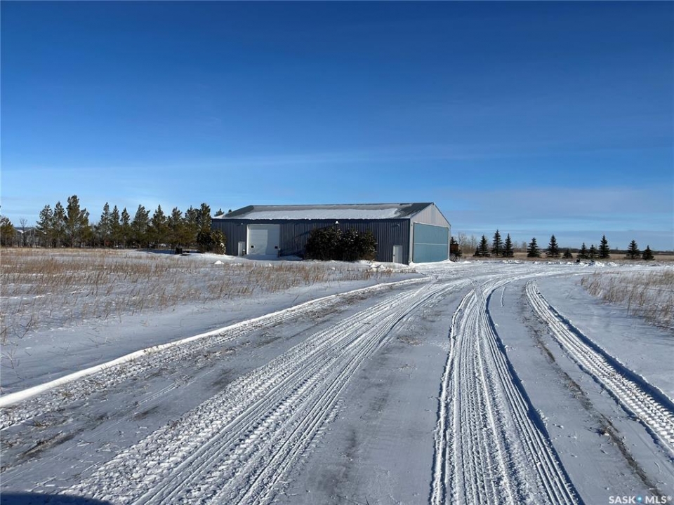 Acreage within 30-35 minutes from Regina 3 klms south of Regina Beach. High end acreage with 4000 Sq ft 2 storey home on quarter section of land, quiet and serene. Numerous features including spacious living spaces two kitchens, 4 bathrooms, fireplaces, bright open concept, indoor pool and hot tub, two laundry areas, infloor heat, heated garage with two overhead doors one on each end, considerable space, wrap around deck on 2nd level etc. Heated shop/airplane hanger 53'x36'8” cement floor, radiant heat, 46' overhead door, adjoining equipment storage 52' x 53'. Landing strip. Full quarter fenced tree sheltered property. Well built property with unique quality construction throughout.