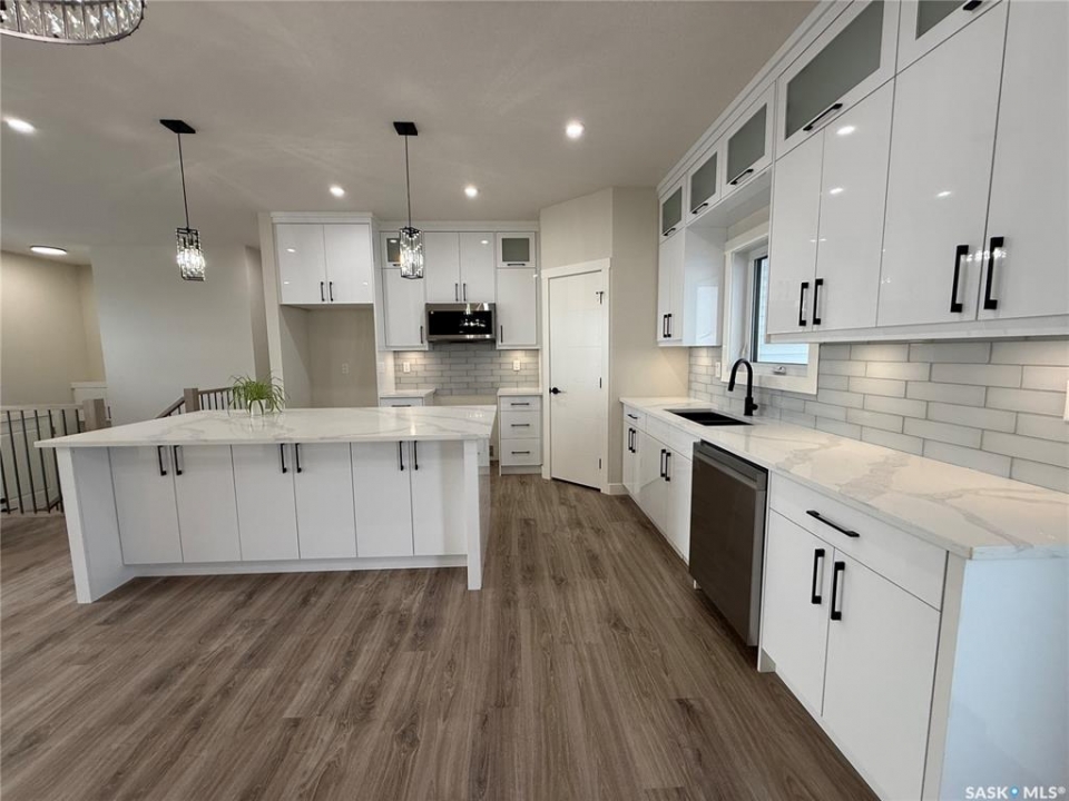 Discover the perfect blend of space and style in this brand new 1,420 sq. ft. bi-level home built by Taj Homes. Designed with functionality and modern living in mind, this home offers generous room sizes, high-end finishes, and the rare opportunity to customize select colors and finishes to make it truly your own. Situated on a partially fenced lot with no rear neighbours, this home features a 25' x 26' attached, insulated two car garage, giving you plenty of parking and storage space. The location can't be beat—close to shopping, grocery stores, schools, parks, and walking trails. Step inside to a bright and spacious open-concept main floor filled with natural light from large south-facing windows and an electric fireplace finished with shiplap. The expansive living room flows seamlessly into a chef-inspired kitchen showcasing quartz countertops, premium ceiling height cabinetry, a walk-in pantry, and a large island—ideal for both entertaining and daily family life. The main floor laundry room is a standout feature—thoughtfully designed with side-by-side appliances, countertop and upper cabinetry for maximum convenience and organization. Retreat to the primary suite, featuring a walk-in closet and a luxurious 5-piece ensuite complete with double sinks, a tiled shower, and a soaker tub. Two additional spacious bedrooms and a stylish 4-piece main bath complete the main floor. Some notable features include a on demand water heater, energy efficient furnace, All Weather Triple Pane windows, full set of stainless steel appliances, black trims and fixtures and Progressive New Home Warranty. Currently under construction, this home comes with a guaranteed possession date so you can plan your move with confidence—no delays, no surprises. Come today and customize your new home by selecting from a range of color palettes and finishes to match your personal style. NOTE PICTURES ARE FROM PREVIOUS BUILD, FINAL COLOURS AND SPECS MAY VARY