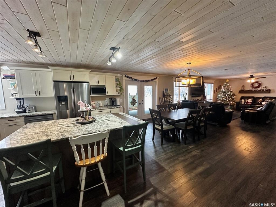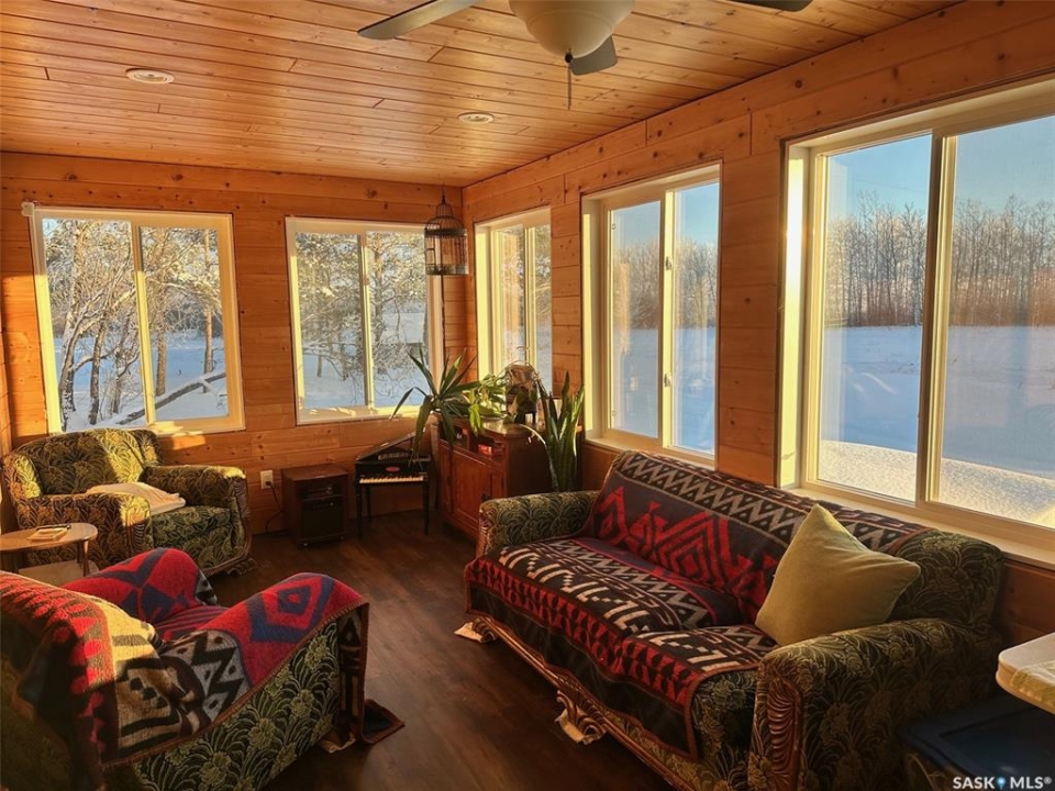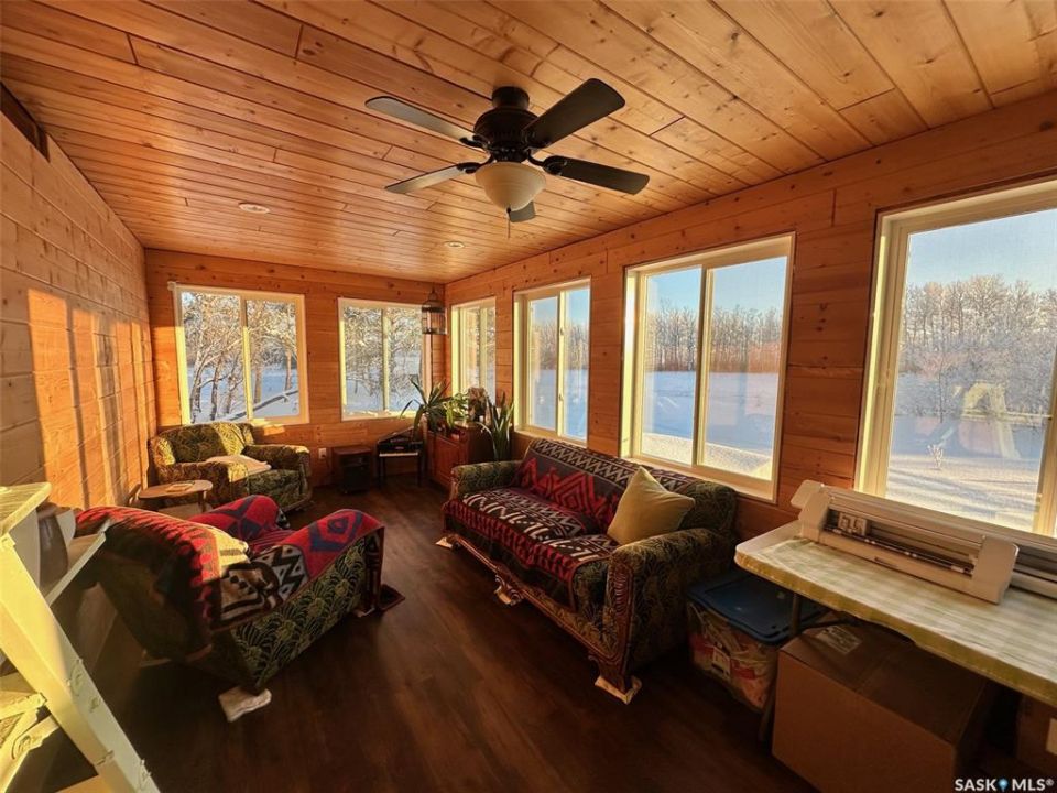 Nestled on 11.12 acres of beautifully treed land, the Zurba acreage offers a peaceful rural lifestyle paired with modern comforts. More than 200 additional trees have been planted over the past five years. A tree-lined driveway leads to a landscaped yard featuring a large garden space, a firepit tucked into the trees, a west-facing deck with a pergola, and a play structure. The property also includes a 32x32 metal shop suitable for animals or storage, along with an additional outbuilding for equipment and recreational items. Property is on a super grid so reliable year round access and on school bus route. Inside, the open-concept kitchen, dining, and living area is anchored by a quartz island with seating for four to five, complimented by stainless steel appliances and a farmhouse-style dining space that provides direct access to the deck. Each bedroom is generously sized at over 200 sq ft (standard is 100 sq ft) and each includes a walk-in closet, while the principal suite features a walk-through closet and a 3-piece ensuite with a tiled, doorless walk-in shower. The spacious mudroom provides over 140 sq ft of organized storage. Additional living spaces include a sunroom with panoramic views, cozy seating areas filled with natural light.Main bathroom offers a double vanity and modern fixtures. Practical features such as a whole-home water system with a 250-ft deep well, propane forced-air heating. Ideal for those seeking privacy, space, and the opportunity to enjoy hobby farming or a quiet country lifestyle, the Zurba acreage combines thoughtful updates, generous room sizes, and a beautiful natural setting—ready to welcome its next owners.