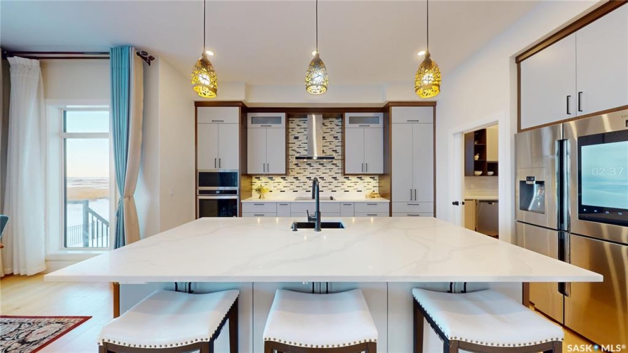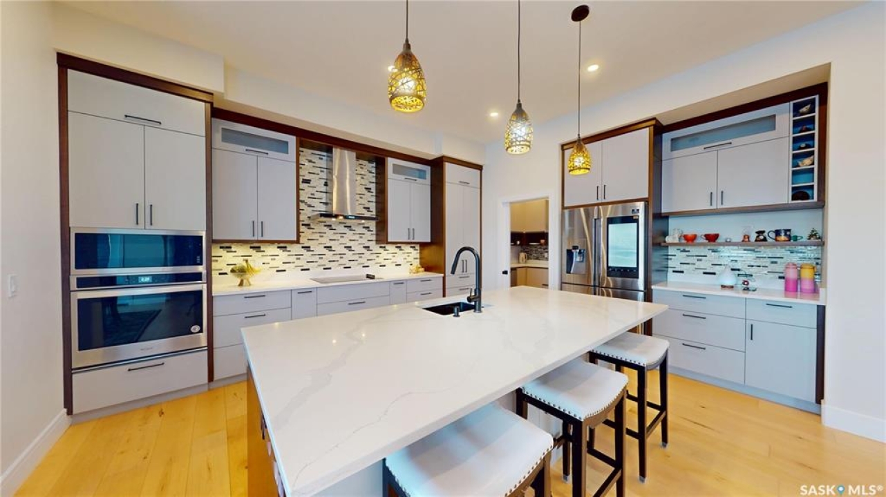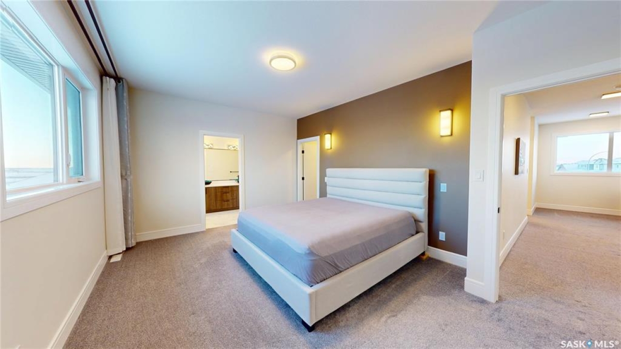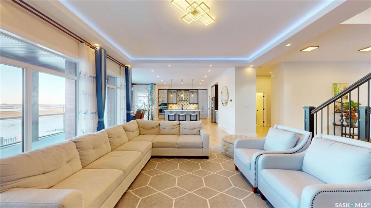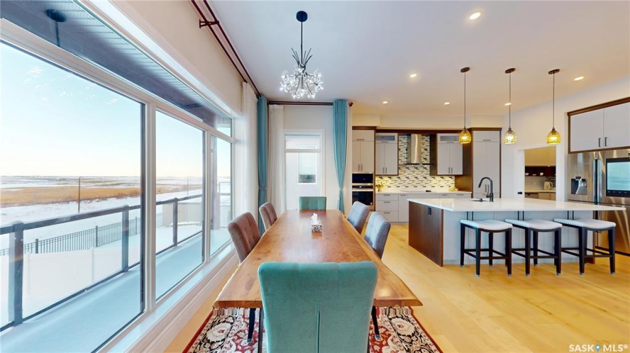 Discover your dream lifestyle in this magnificent 2-storey walkout backing the northeast swale, where luxury meets functionality and breathtaking panoramic views of wide open fields abound. Please view the Matterport 3D virtual tour in the listing. With over 4400 sq ft of thoughtfully designed living space, this home offers an array of amenities to elevate your daily experience. The heart of the home features a stunning open-concept kitchen, dining, and living room, perfect for both intimate gatherings and grand entertaining under 10-foot ceilings. The modern kitchen boasts high-end appliances, custom cabinetry, and a large island with eating ledge, while prep and cleanup are a breeze in the adjacent spicy kitchen with a gas range and 2nd fridge. A massive covered deck is just off the dining area, offering additional views and a staircase to the ground. An attractive front entry is next to the den, and direct access from the heated, finished garage leads to a space with built-in storage and shelving for coats and more. Ascend to the upper floor from an impressive stained wood staircase to find 4 generously sized bedrooms, including the primary with a walk-in closet and luxurious 5-pc ensuite with soaker tub, double sinks, and separate shower. The 2nd floor also has a large laundry, 2 office spaces, a 2nd ensuite, and 9-foot ceilings. Five impeccably designed bathrooms throughout the home offer comfort and convenience at every level. An abundance of large windows flood the spaces with natural light, while plush carpeting and warm engineered hardwood floors create a welcoming ambience. The 9-foot basement is professionally finished with a bedroom, an open concept games room and family room with mirrored walls, and garden door access to the backyard with a patio and beautiful scenery. Other notable features include a tray ceiling, built-in wall unit, 3-zone ventilation, gorgeous curb appeal with maintenance-free stucco & stone exterior, and much more. Call now to view!