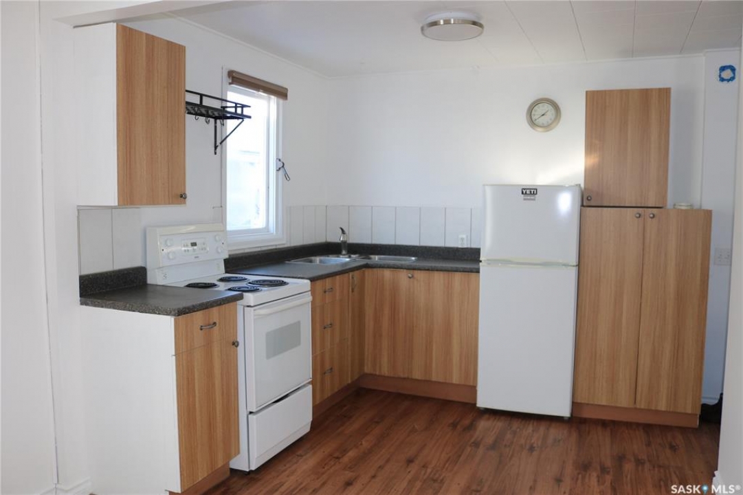 Cute and affordable! An ideal rental property or place to call your own. Own it for less than you'd pay for rent! Located in the great community of Rocanville with just a short commute to the Nutrien mine or Moosomin. Updates include shingles on the house (2024) and garage (2025), fence, and landscaping to build up the yard. The detached garage is 16 x 22. A good sized porch gives room for a freezer, your coats, and has a door to access the backyard. Functional bathroom is right next to the bedroom. Bright kitchen with unique corner sink and nice cabinetry is open to the living room. The sunroom is at the front entrance and is bright and cheery with lots of windows. Laundry and utility is in the basement. Contact your agent to view this great property!