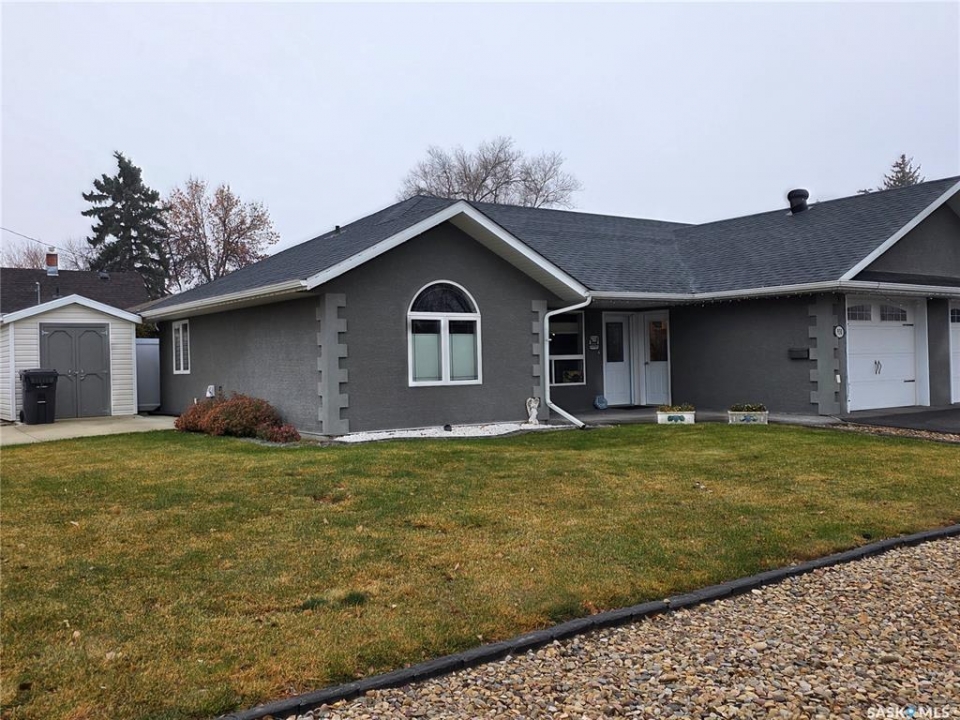 Perfectly suited for a busy professional or a senior couple looking to simplify without sacrificing quality, this 2012-built half duplex offers 972 sq. ft. of smart design, comfort, and everyday ease rather than excess space you will not use. The open concept kitchen features rich alder cabinetry, an island, and generous pantry space. It flows naturally into the dining area and a bright living room with vaulted ceilings, all finished in hardwood that continues into the secondary bedroom with a built-in Murphy bed and the primary bedroom, also vaulted for a roomier feel. A four-piece main bath is complemented by a three-piece en suite with a large sit-in shower, a smart feature for those who are not able to step into a tub. The long 12.5 x 23 attached garage offers impressive functionality with a 220-volt plug and central vac canister, ideal for hobbyists, electric vehicle owners, or anyone who appreciates a clean space. Central air, a high-efficiency furnace, a water softener, and a 2025 on-demand water heater deliver year-round comfort and efficiency. Outside, underground sprinklers, planter boxes, and two sheds strike a balance between outdoor enjoyment and practicality. Book a showing and see how well this home fits a lifestyle built around convenience, comfort, and thoughtful details.