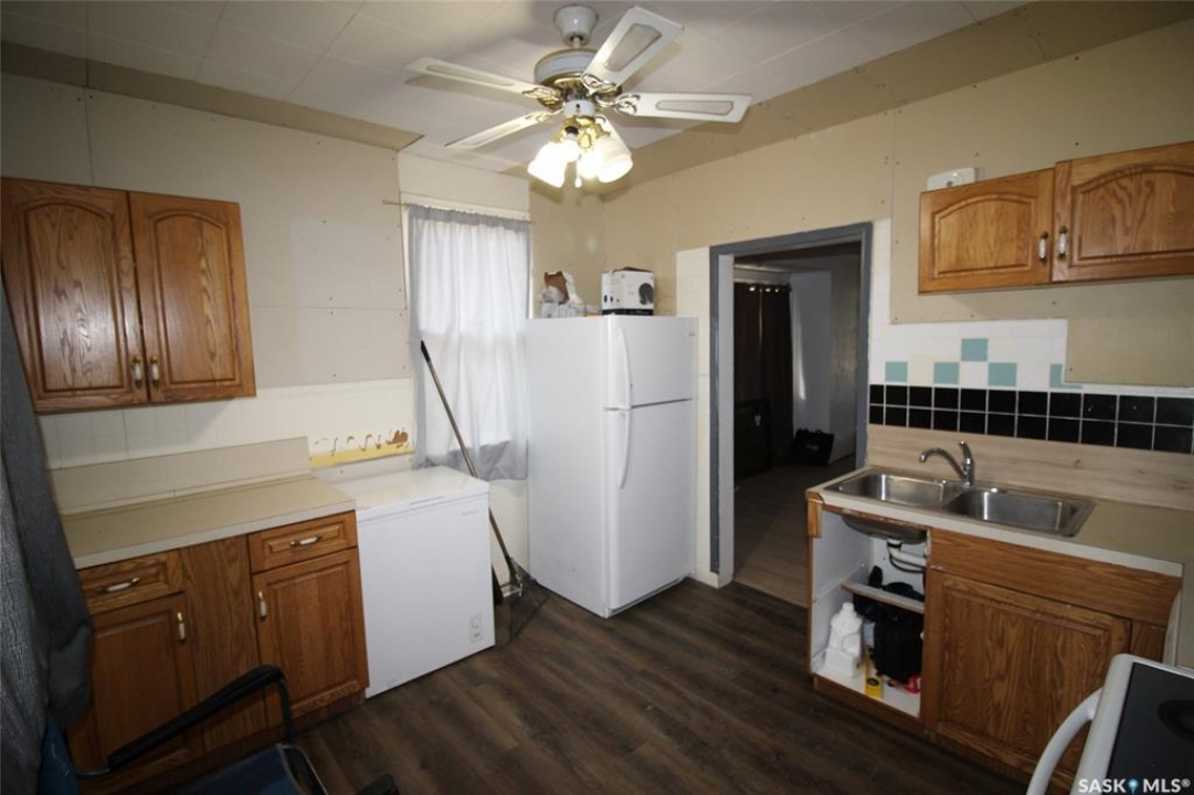 Fantastic location right across the street from the Shaunavon Public School, this family home is ready for you. The seller has added so much value to this property and is ready to let it go. The seller updated the furnace with an EE Natural Gas Unit and has upgraded all the flooring in the home to a modern laminate. The home's main floor is a classic style with 9' ceilings, large living/dining room and the kitchen tucked at the back of the home. Two bedrooms on the main are roomy and the main floor bath has a brand new tub. The second floor gives all kind of options with the possibility of a self contained suite or two bedrooms, full second bath and cozy den space. The basement is clean and dry with the laundry and a 2 pc bath plumbed in and a separate room framed out. The back yard features a one space parking pad, and a garden shed.