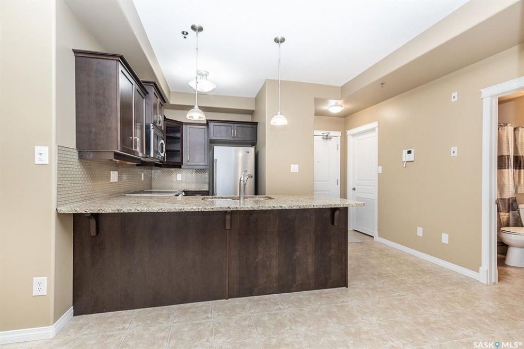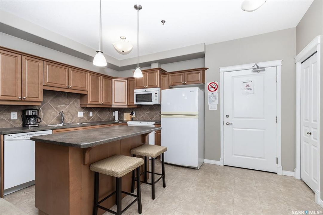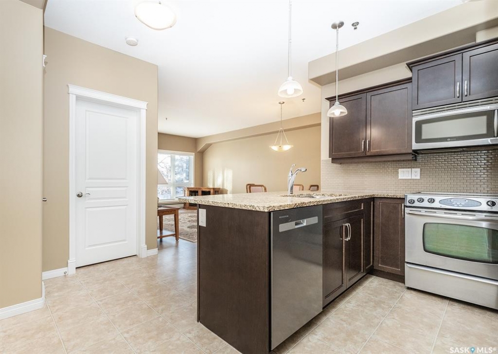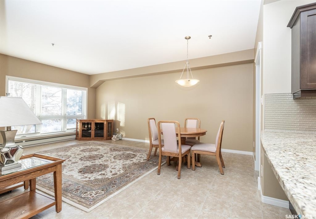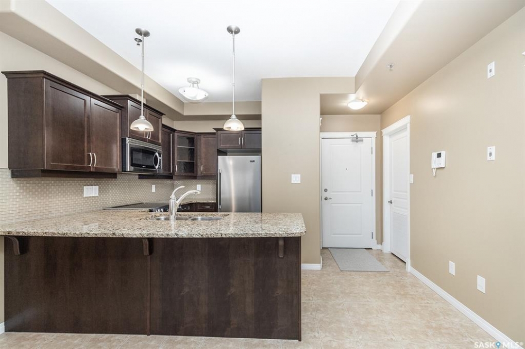 This beautifully maintained condo with 1 bedroom plus den and 4 piece bath is located in the highly desirable Wildwood neighbourhood—just steps from the golf course, parks, walking trails, shopping, and everyday amenities. This spacious condo on the upper–main floor has an inviting open-concept with a well-designed kitchen with granite counter, double undermount sink, great cupboard space and stainless steel appliances. The kitchen flows nicely into the dining area and living room giving you a perfect space for entertaining and perfectly cozy relaxation. Enjoy the beautifully landscaped grounds from the East facing balcony - an enjoyable space for morning coffee or a quiet evening. The bedroom has a double closet and large window overlooking the grounds. A den and in-suite laundry with shelving, central air conditioning, 9-foot ceilings, and two parking stalls—one heated underground stall with storage and one surface stall is the complete package. Residents have access to a guest suite, fitness room, and an amenities lounge for gatherings or events. The guest suite has a full kitchen, living room with sofa bed, balcony overlooking green space, private bedroom, and 4 piece bath. Everything from dishes to pots/pans, bedding, linens, etc. are included for your family and friends comfort. The building is quiet, well cared for and home to a welcoming community. Call your favourite Saskatoon (YXE) Realtor � for more information or to view.