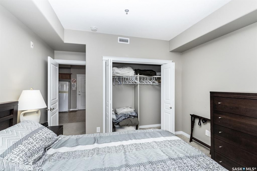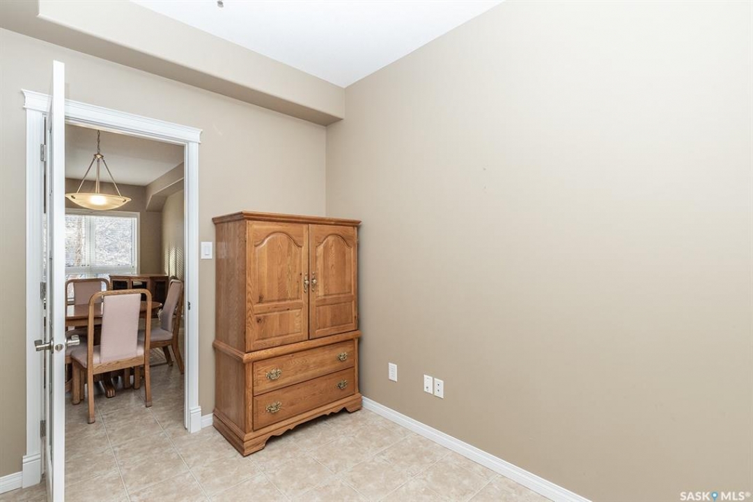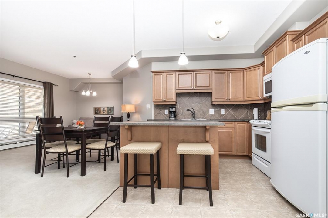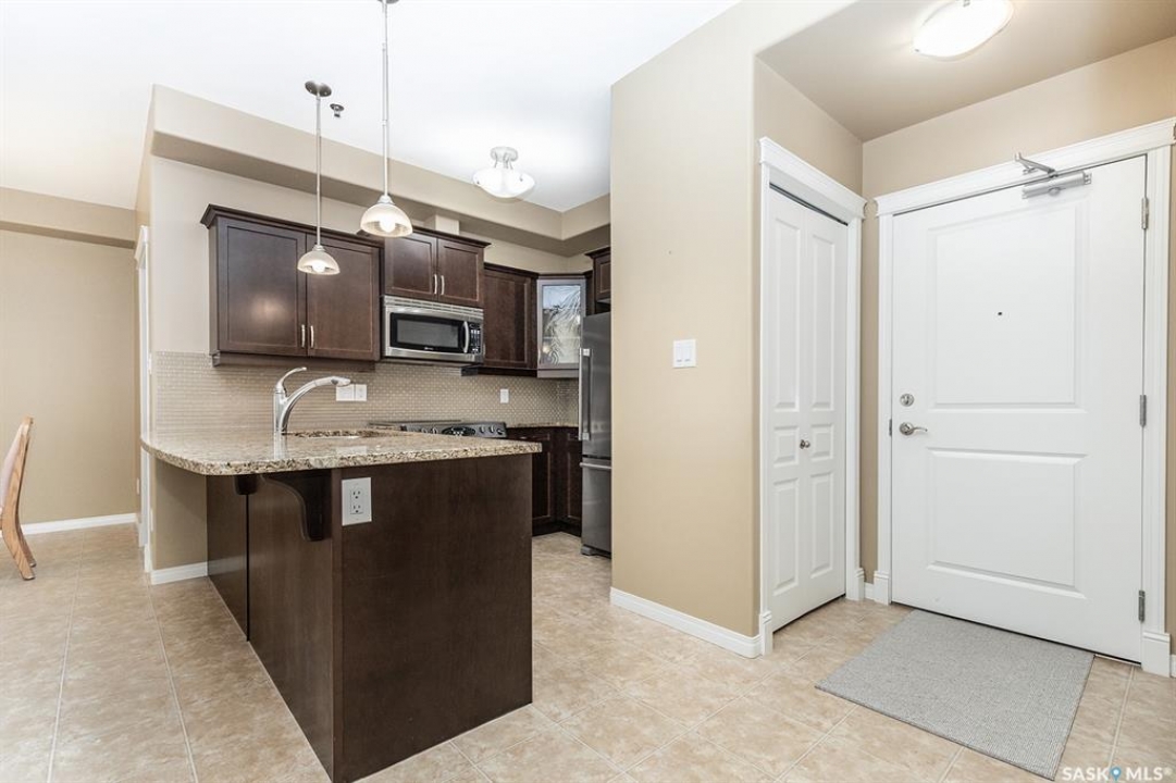 This beautifully maintained condo with 1 bedroom plus den and 4 piece bath is located in the highly desirable Wildwood neighbourhood—just steps from the golf course, parks, walking trails, shopping, and everyday amenities. This spacious condo on the upper–main floor has an inviting open-concept with a well-designed kitchen with granite counter, double undermount sink, great cupboard space and stainless steel appliances. The kitchen flows nicely into the dining area and living room giving you a perfect space for entertaining and perfectly cozy relaxation. Enjoy the beautifully landscaped grounds from the East facing balcony - an enjoyable space for morning coffee or a quiet evening. The bedroom has a double closet and large window overlooking the grounds. A den and in-suite laundry with shelving, central air conditioning, 9-foot ceilings, and two parking stalls—one heated underground stall with storage and one surface stall is the complete package. Residents have access to a guest suite, fitness room, and an amenities lounge for gatherings or events. The guest suite has a full kitchen, living room with sofa bed, balcony overlooking green space, private bedroom, and 4 piece bath. Everything from dishes to pots/pans, bedding, linens, etc. are included for your family and friends comfort. The building is quiet, well cared for and home to a welcoming community. Call your favourite Saskatoon (YXE) Realtor � for more information or to view.