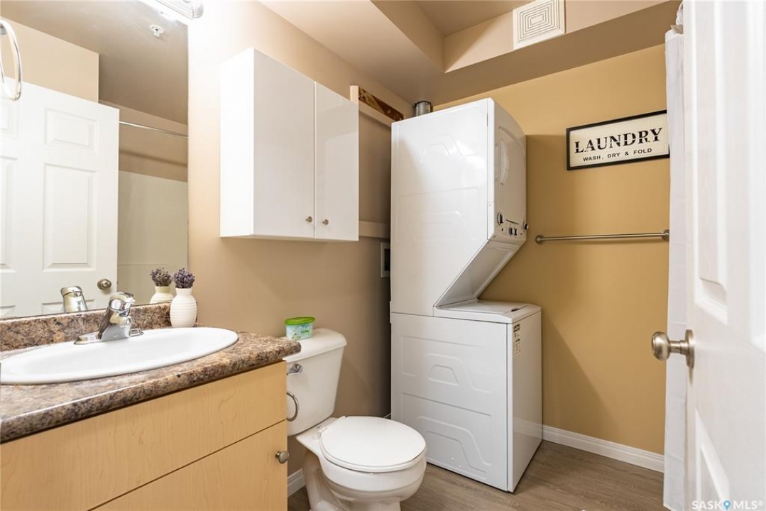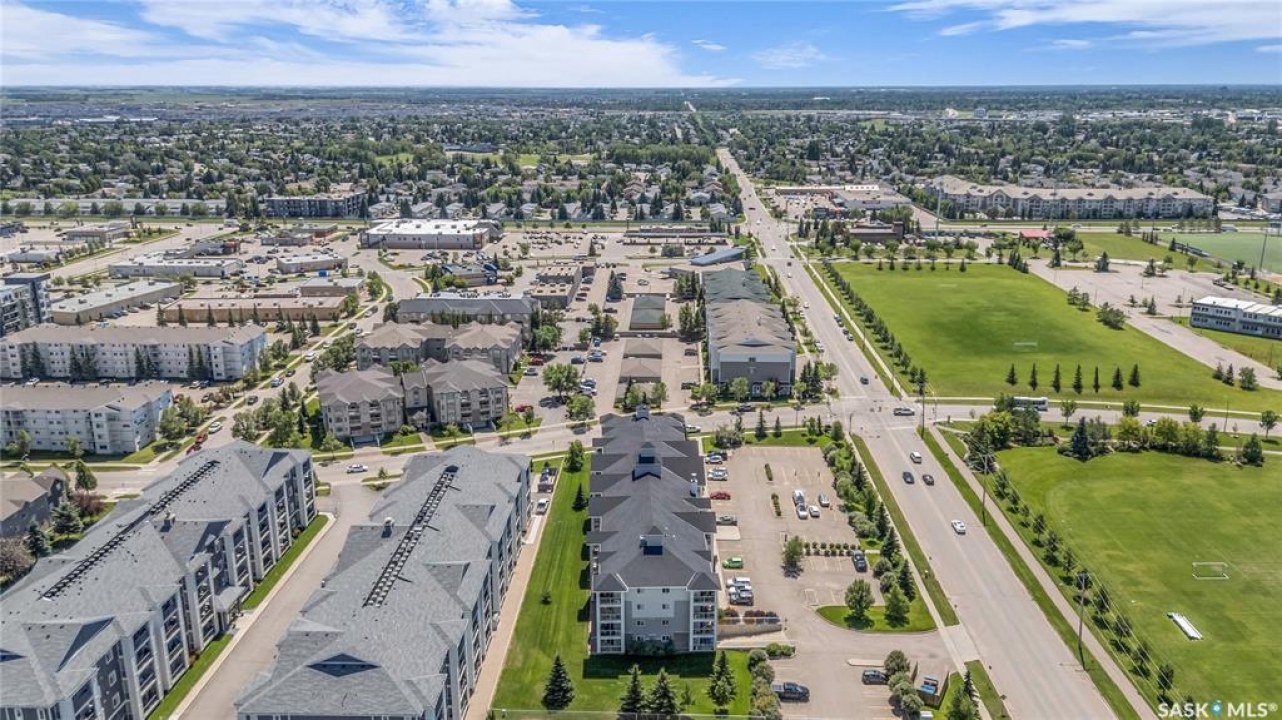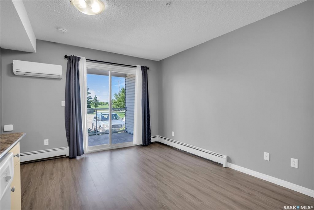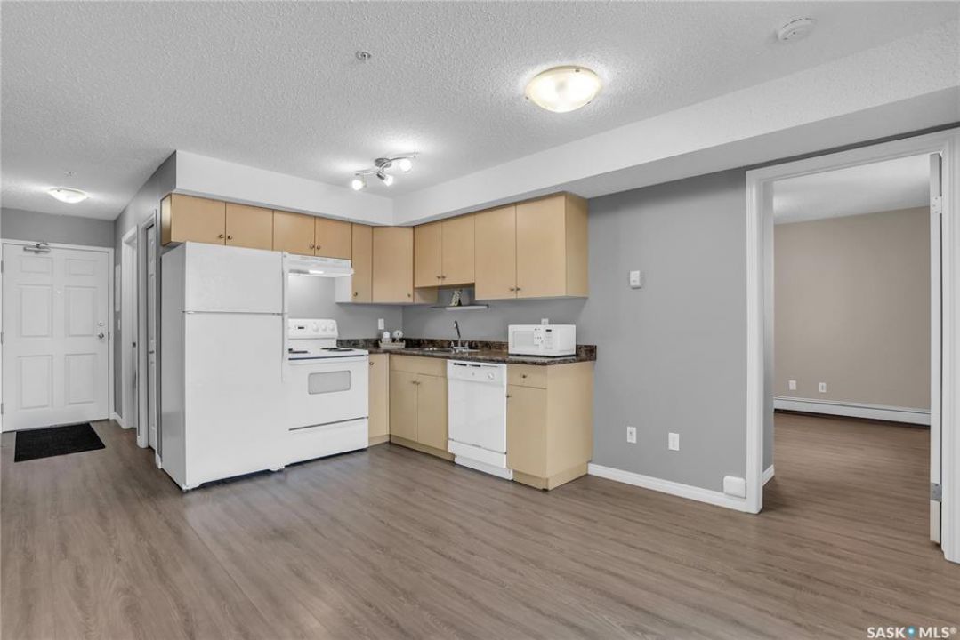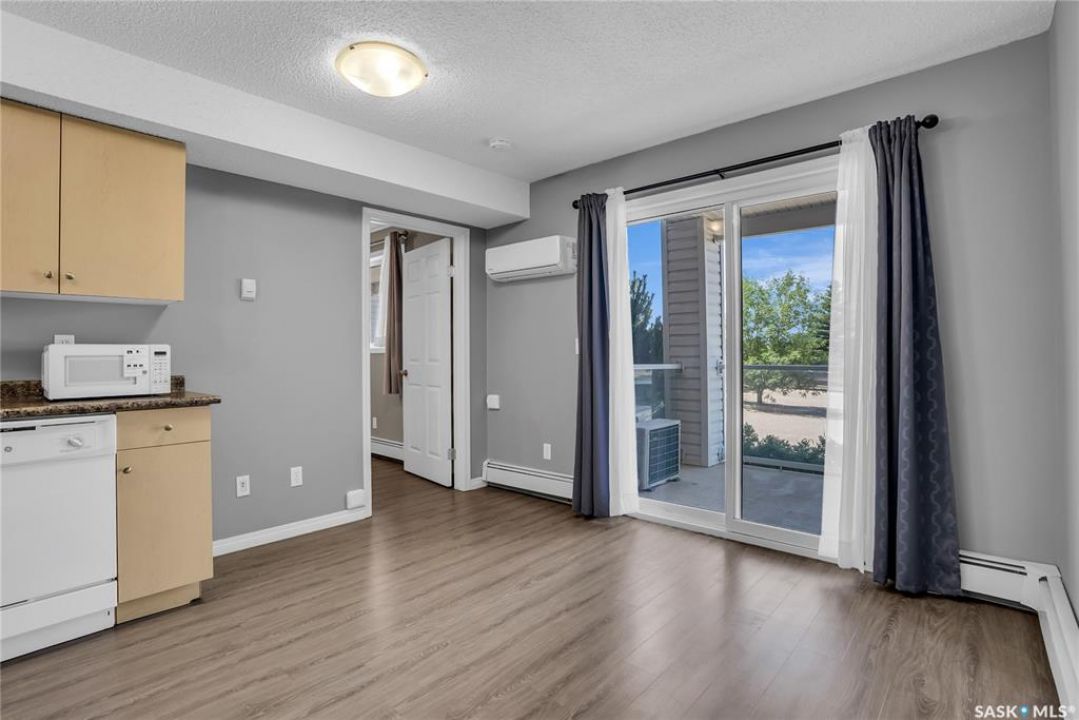 Awesome location with this very affordable 1 -bedroom apartment style condo located in the University Heights area of Saskatoon & situated across the street from a park! There is quick access to all amenites as well as the University – perfect for students going to school. This well cared for unit is on the main floor great for anyone that does not like stairs. It features an open concept living room to kitchen/dining area, vinyl plank flooring, in-suite laundry, a spacious bedroom & a nice-sized private balcony with a view of the park across the street. Parking is out front with easy access to the front door. 1 electrified surface parking stall is included as well as visitor parking. There is an exercise area, wheelchair accessibility & this very affordable home comes complete with all appliances, washer/dryer as well as a wall air conditioning unit. Don't wait! Call today to view.