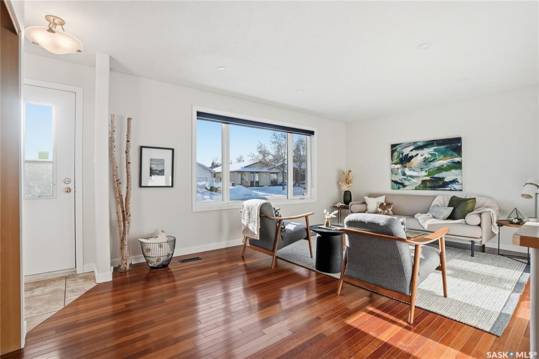 Welcome to this 1,023 sq. ft. bungalow located in the desirable community of Dundonald. Upon entry, you're greeted by warm cherry hardwood floors that flow through the spacious living room, highlighted by a large south-facing front window that fills the space with natural light. The living room opens seamlessly into the dining area and custom kitchen, featuring stainless steel appliances (all included) and impressive tile work. French doors off the dining room lead to a large covered deck, overlooking a beautifully landscaped yard complete with a new fence—perfect for relaxing or entertaining. The main floor offers three bedrooms and two renovated bathrooms. Downstairs, you'll find a large family room with cozy carpet and warm paint colors, along with two additional bedrooms, a third bathroom, and a spacious utility/laundry room. To complete the home, enjoy the convenience of a double heated garage and electrified shed out back. Great family location, just a block away from the park, elementary school, outdoor rink and convenient store. Call today for your private viewing.