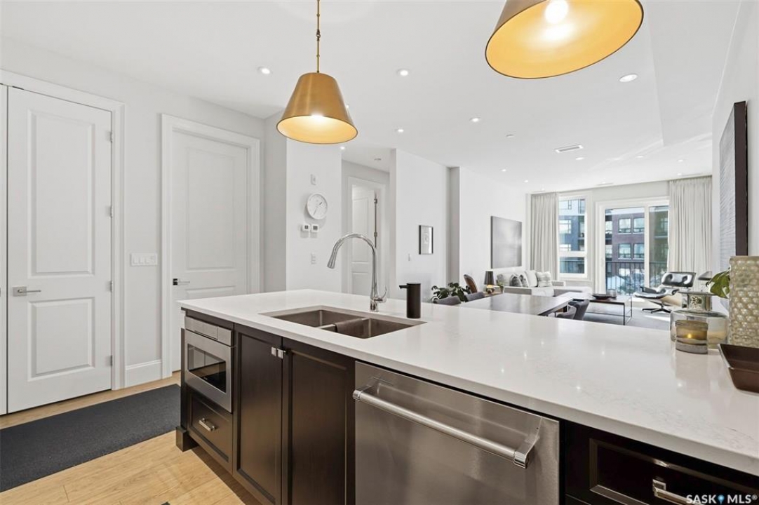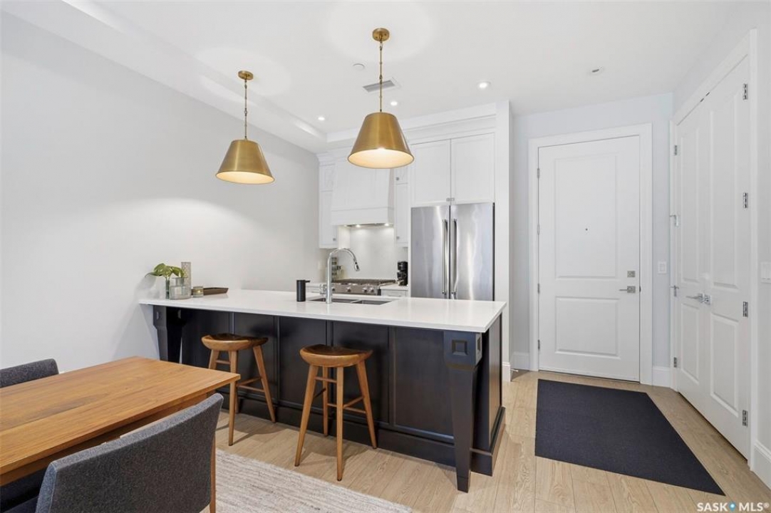 Luxury 2 bedroom, 2 bath condo in exclusive Willows neighbourhood! This beautiful unit features high ceilings, bright and open floor plan, and quality materials throughout. Enjoy cooking and entertaining in the kitchen complete with quartz countertops, stainless appliances and peninsula with seating. The living and dining room provide ample space for family and friends, with access to the spacious balcony with NG BBQ hookup. The large primary suite features a walk-in closet and 3pc ensuite, while the secondary bedroom has convenient access to the main 4pc bath. A well-designed laundry room with built-ins completes the unit. Enjoy 1 underground parking stall with storage. This is a great opportunity for anyone looking for a low maintenance home without sacrificing style and quality! Call your favourite realtor to book your personal showing!