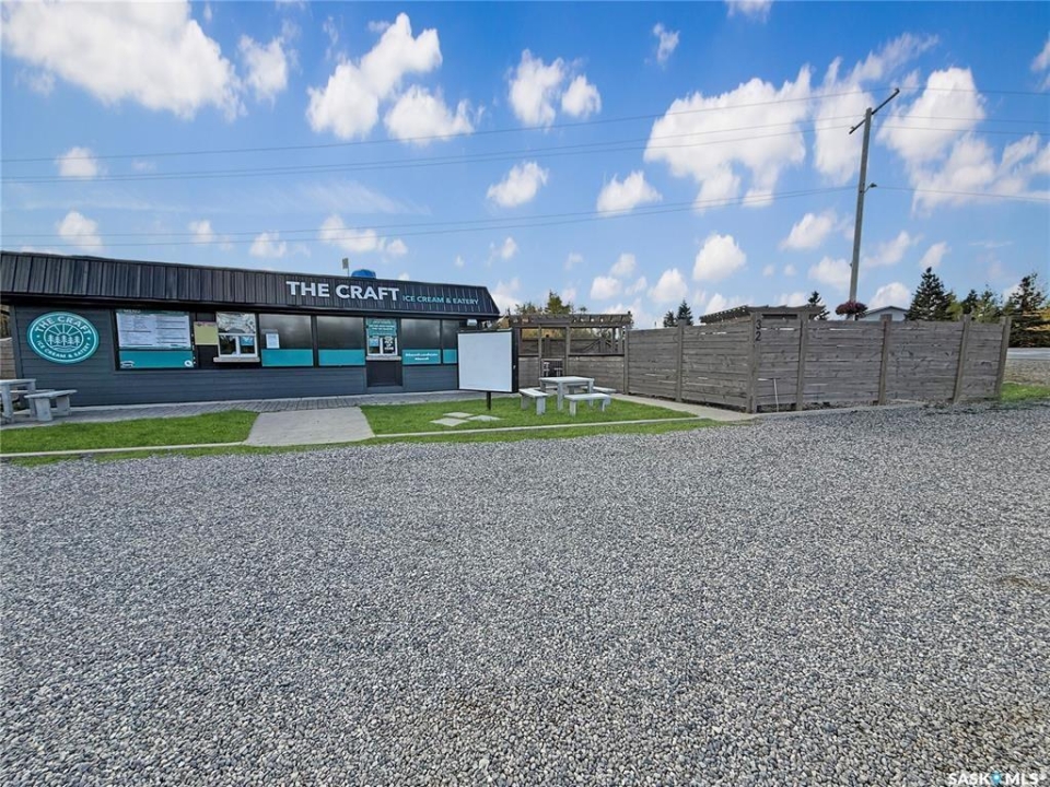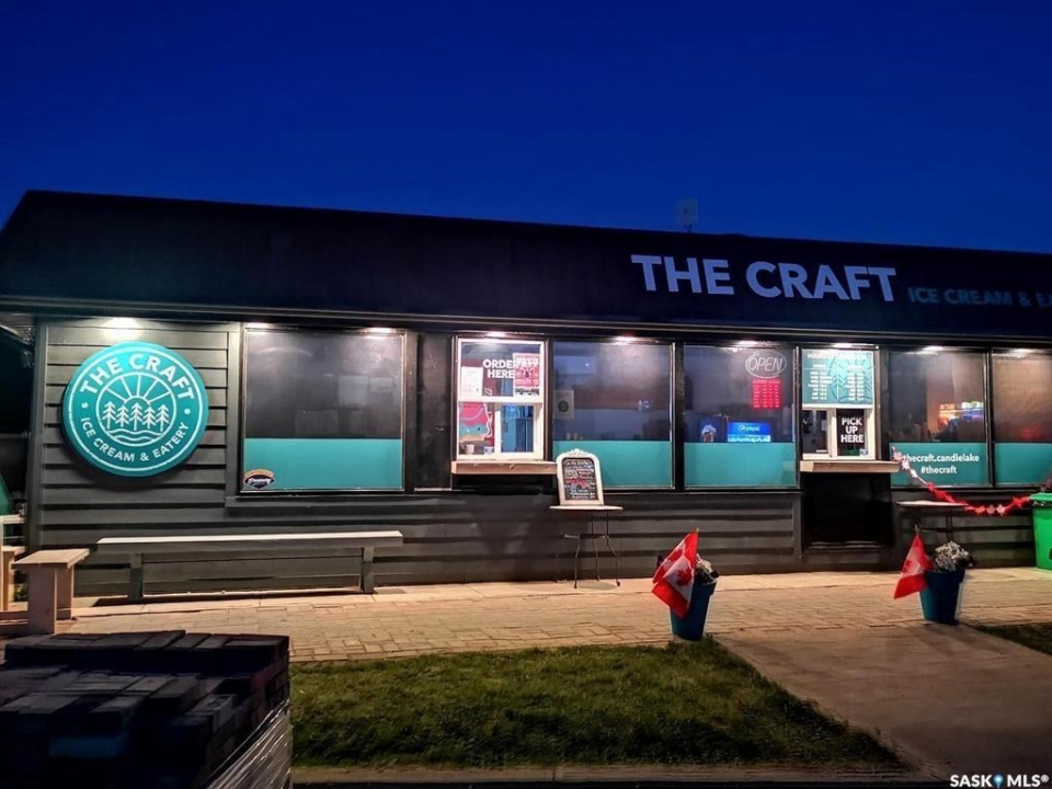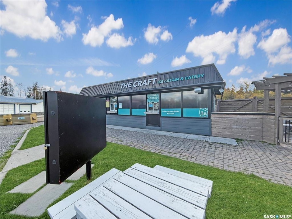 Thriving Candle Lake Favourite! Turn-key, updated, high-traffic seasonal business with that inviting southern-style outdoor eatery vibe - serving up artisan craft ice cream and a full comfort-food menu everyone loves. Perfectly located in the heart of Candle Lake, just steps from Waskateena Beach and surrounded by busy trailer parks and cabins in a sought-after Main Street location. The .28-acre lot (116' frontage) offers incredible visibility and room to grow. The 526 sq. ft. building features an order/pick-up window, fully equipped kitchen, prep area, Taylor ice cream machine, fryers, and modern commercial equipment. Includes staff bathroom, storage room, and powered storage shed. Completely renovated top-to-bottom, truly turn-key and ready for the next owner. Updates include Hardie board/metal siding, concrete work, patio seating, premium signage, powered menu board, upgraded lighting, and exterior sound system. Additional features: LG commercial A/C, water tanks, and Square POS for smooth, modern operations. A rare opportunity to own a beloved local landmark with proven success and exceptional potential to expand and thrive in beautiful Candle Lake!