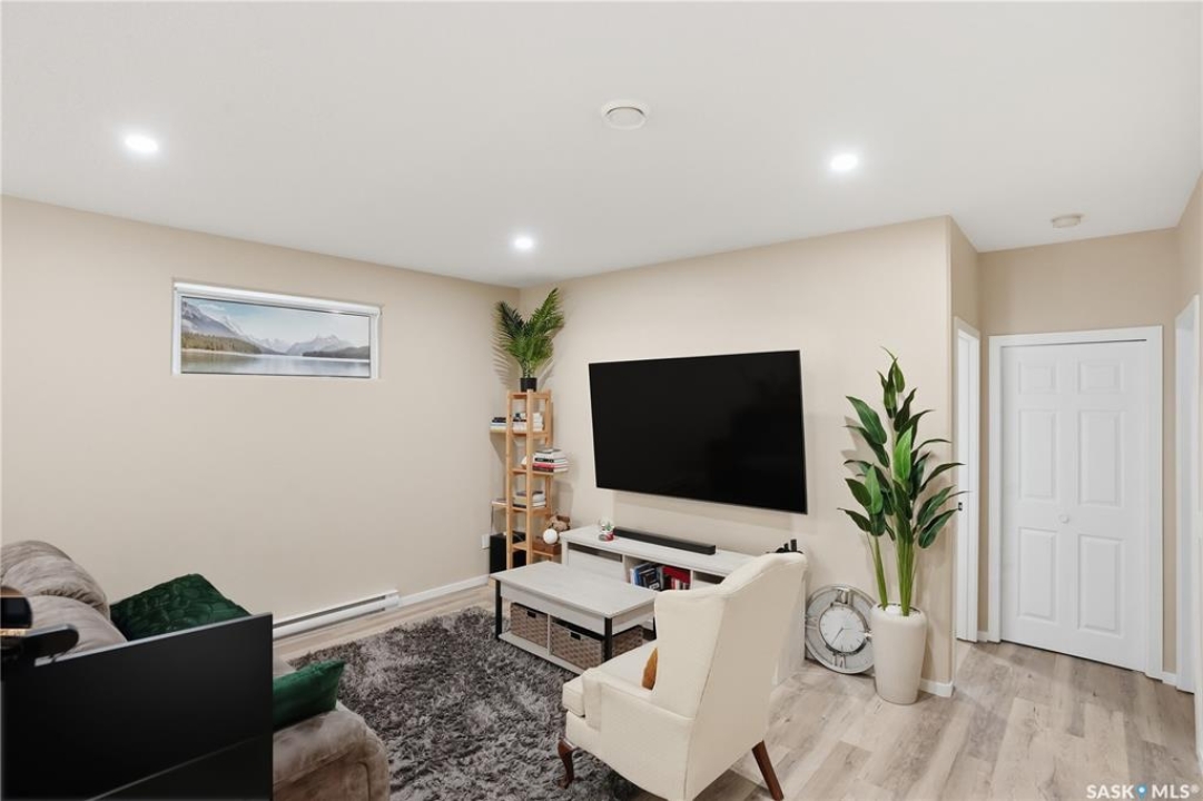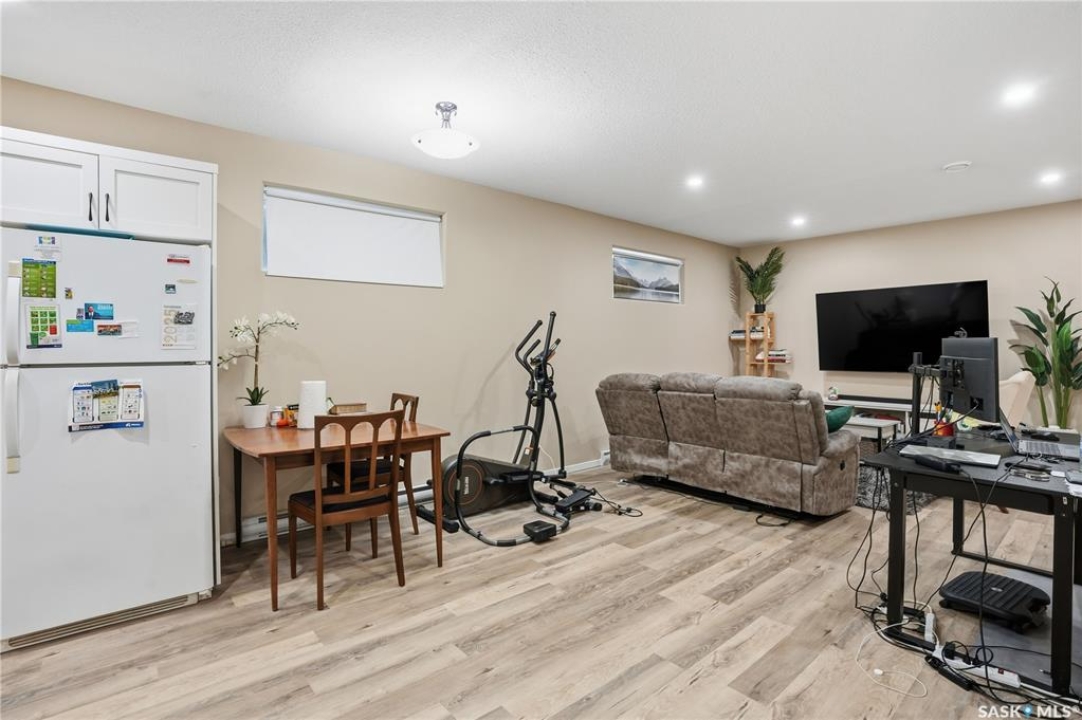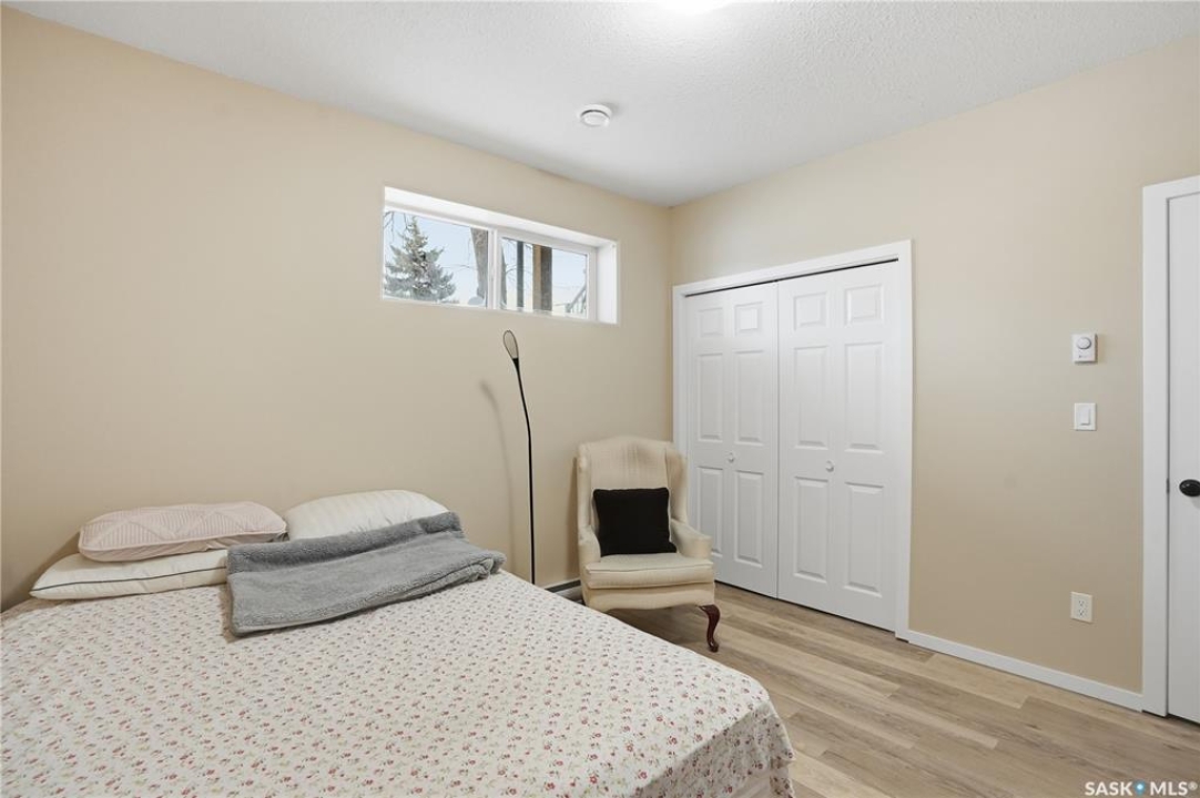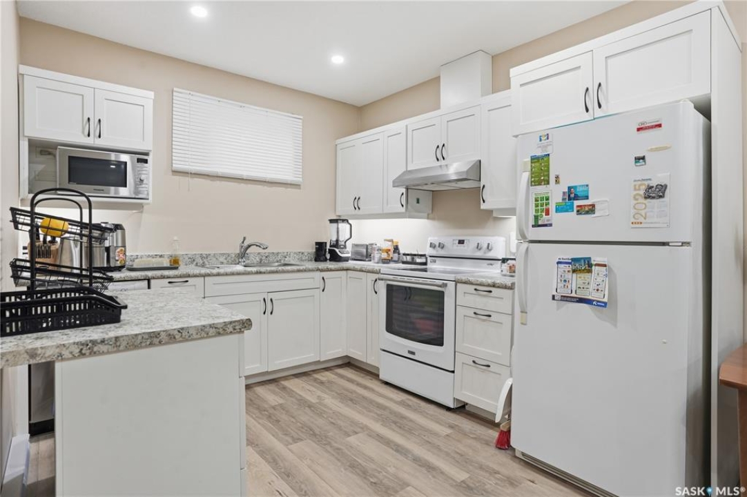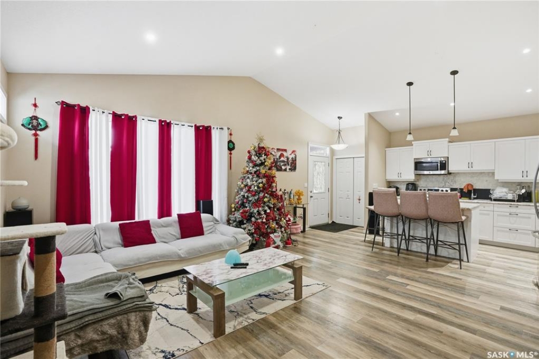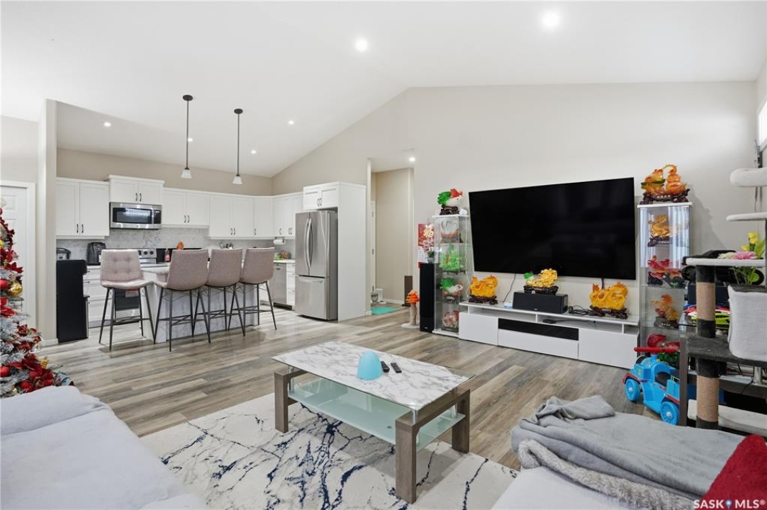 Prime investment opportunity in Eastview! Built by INS Homes in 2019, this modern bungalow offers the perfect setup to live in one suite and rent out the other. The main floor features 1,242 sq ft of bright, open-concept living with vaulted ceilings, recessed lighting, and large windows that flood the space with natural light. The contemporary kitchen is finished with white cabinetry, a large eat-in island, upgraded patterned backsplash, under-cabinet lighting, and stainless steel appliances. A main-floor laundry room adds convenience, while the primary bedroom includes a walk-in closet and three-piece ensuite. Two additional bedrooms and a full bathroom complete this level, which is heated by a natural gas forced-air furnace. A private side entrance leads to the fully developed basement suite, offering a spacious layout with a bright kitchen, dining, and living area. The basement kitchen includes white cabinetry, matching appliances, stainless dishwasher, hood fan, and pantry. The suite features two bedrooms, one with a walk-in closet, a full bathroom, separate laundry, and a utility room. The yard is partially fenced with ample rear parking and back lane access. Located on a quiet Eastview street, this home is close to parks, green spaces, and the Eastview Community Centre.