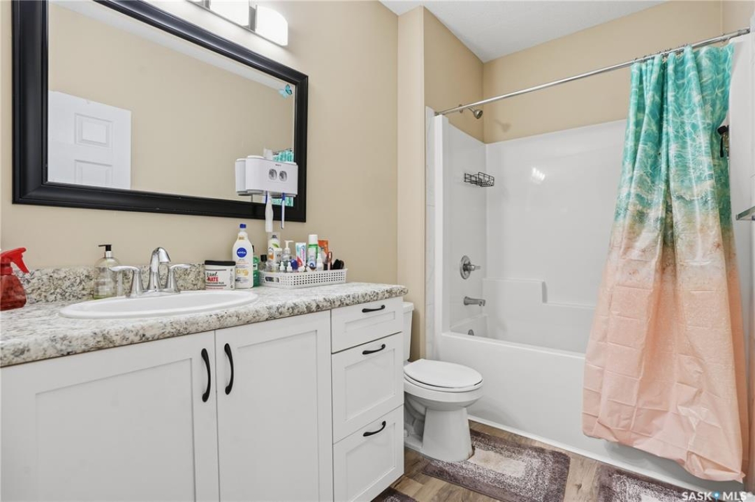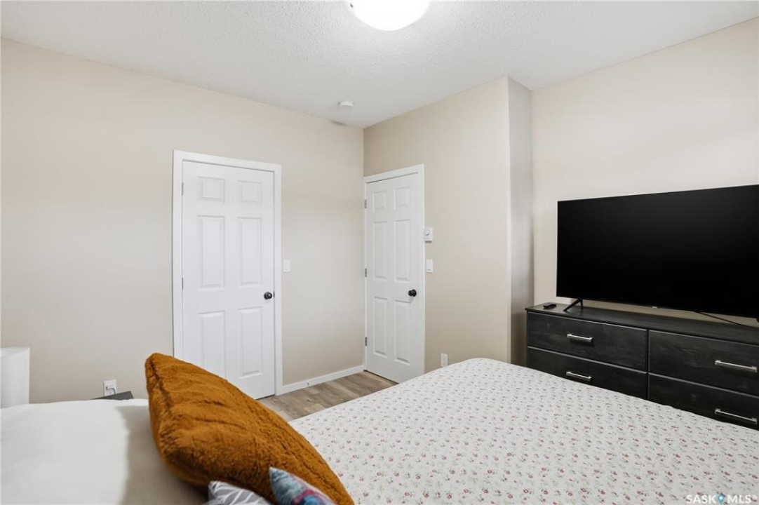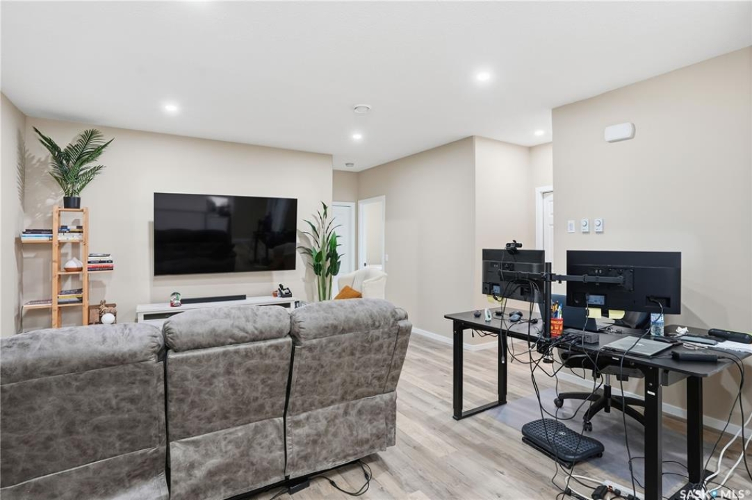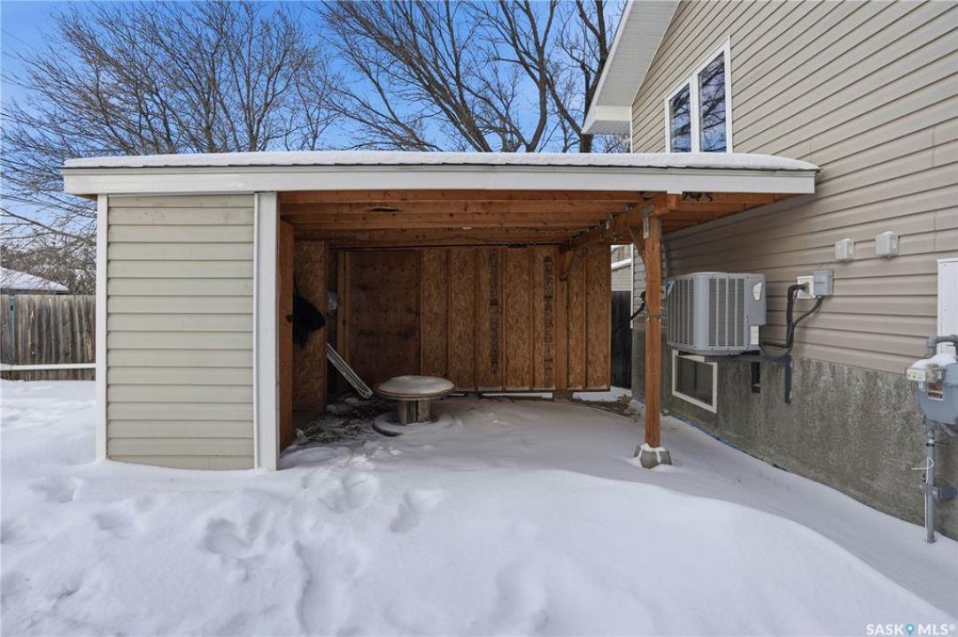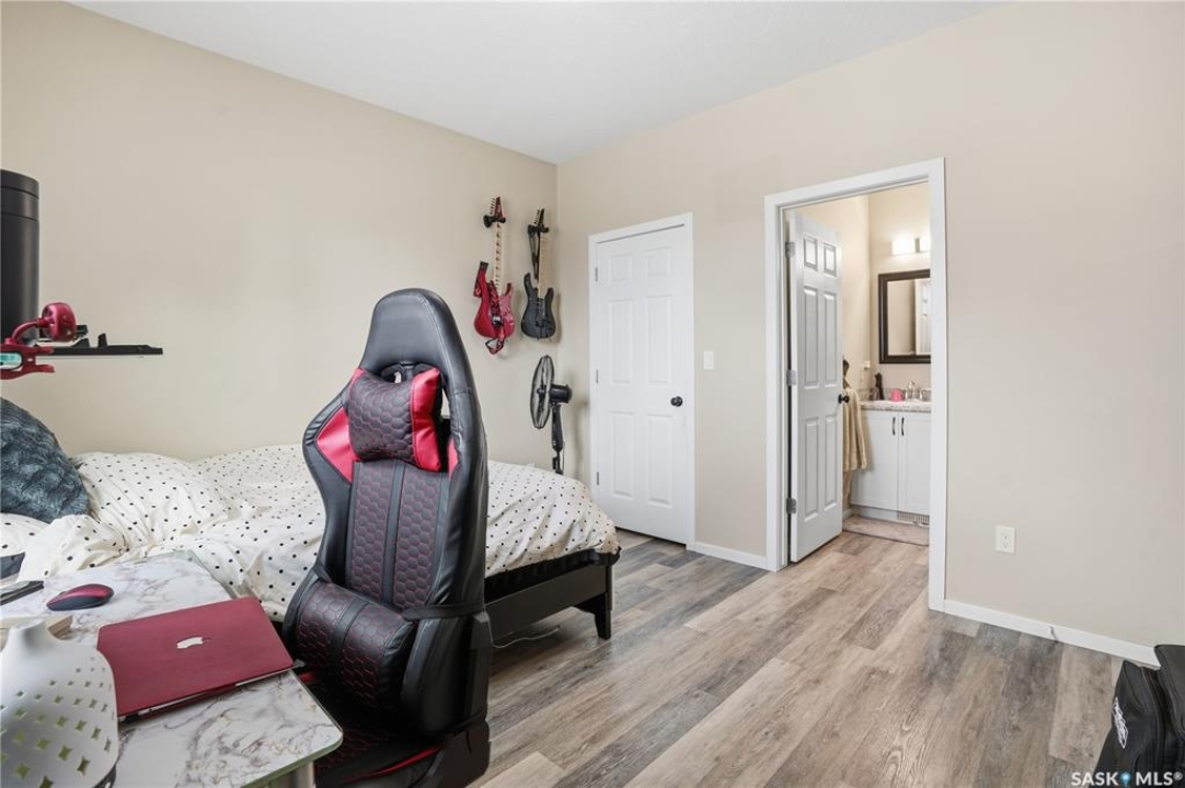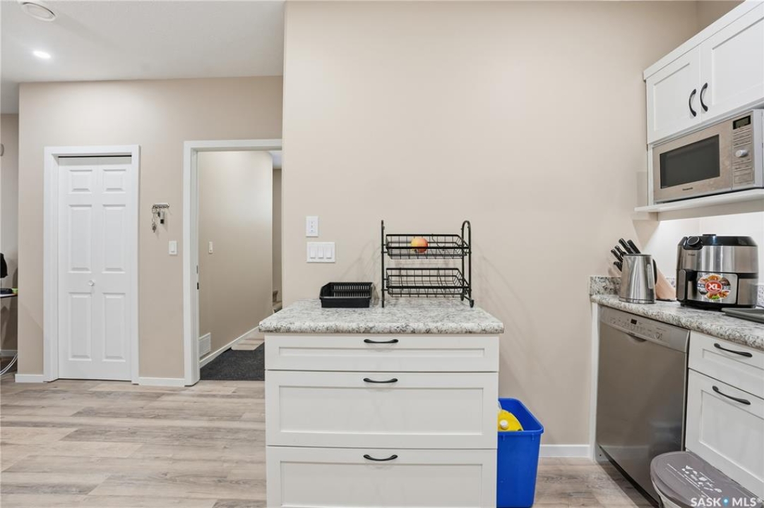 Prime investment opportunity in Eastview! Built by INS Homes in 2019, this modern bungalow offers the perfect setup to live in one suite and rent out the other. The main floor features 1,242 sq ft of bright, open-concept living with vaulted ceilings, recessed lighting, and large windows that flood the space with natural light. The contemporary kitchen is finished with white cabinetry, a large eat-in island, upgraded patterned backsplash, under-cabinet lighting, and stainless steel appliances. A main-floor laundry room adds convenience, while the primary bedroom includes a walk-in closet and three-piece ensuite. Two additional bedrooms and a full bathroom complete this level, which is heated by a natural gas forced-air furnace. A private side entrance leads to the fully developed basement suite, offering a spacious layout with a bright kitchen, dining, and living area. The basement kitchen includes white cabinetry, matching appliances, stainless dishwasher, hood fan, and pantry. The suite features two bedrooms, one with a walk-in closet, a full bathroom, separate laundry, and a utility room. The yard is partially fenced with ample rear parking and back lane access. Located on a quiet Eastview street, this home is close to parks, green spaces, and the Eastview Community Centre.