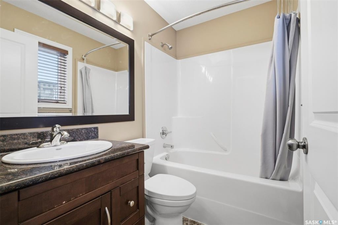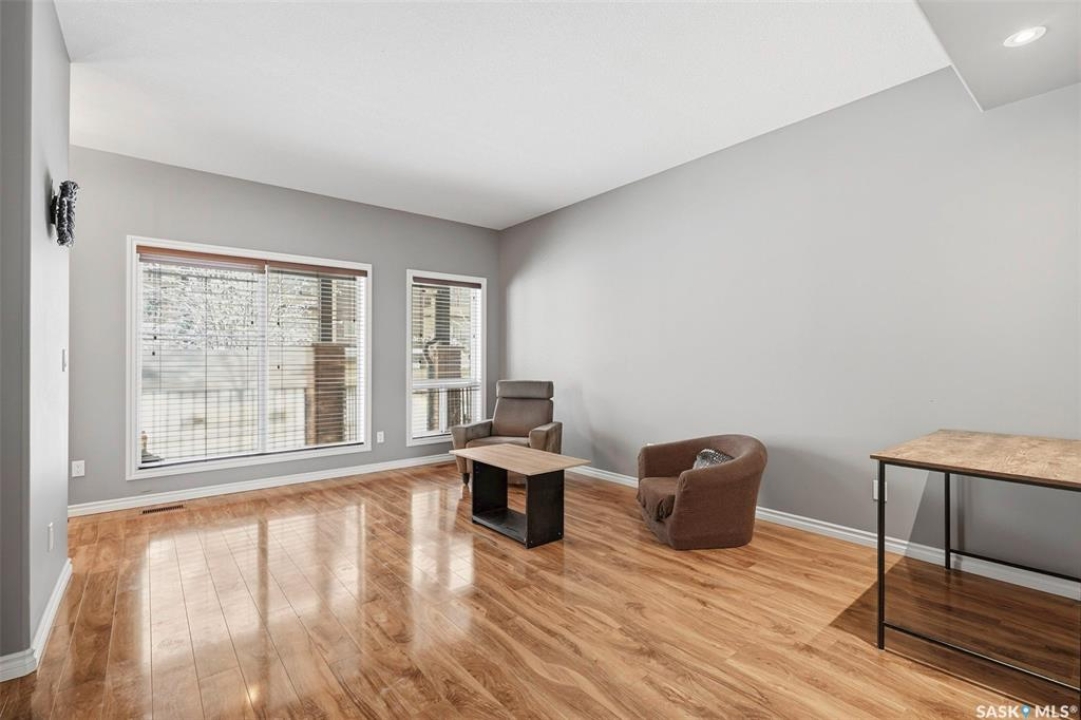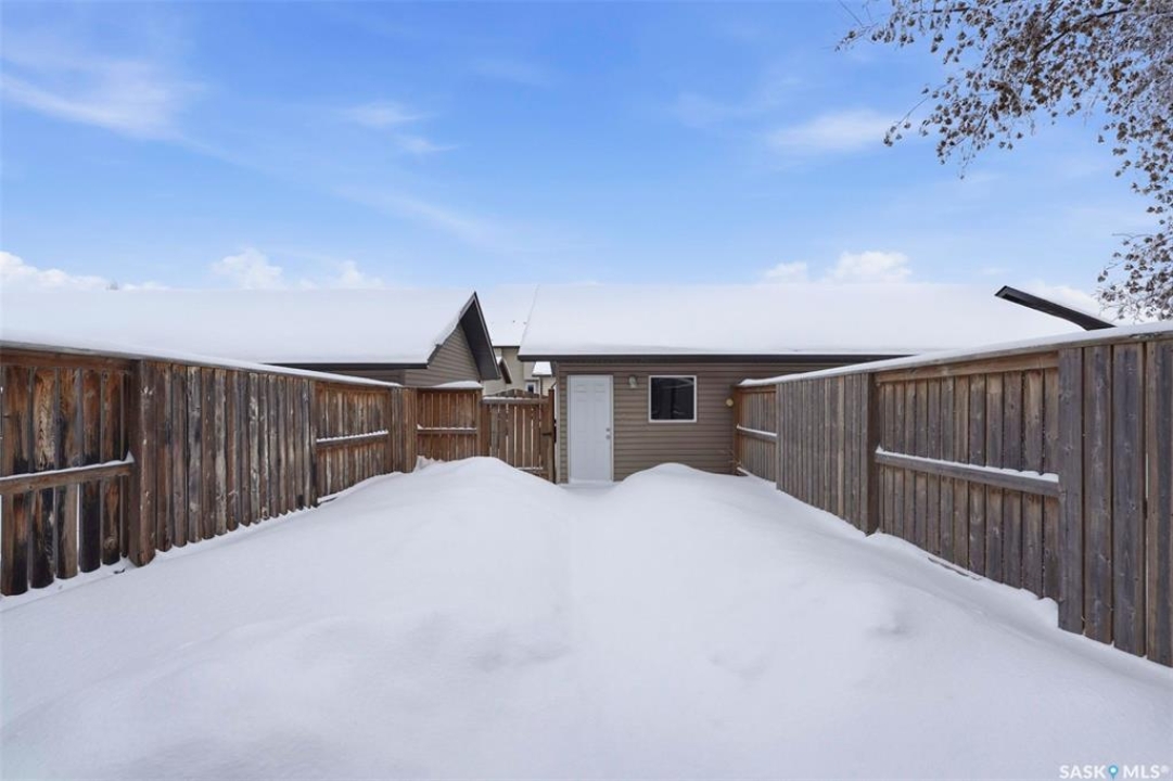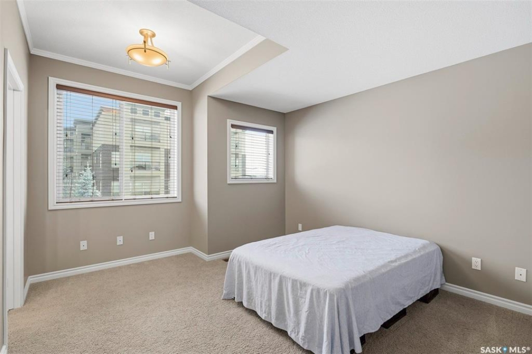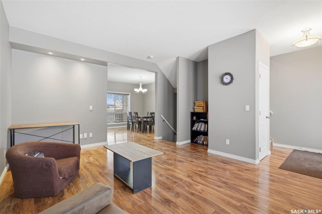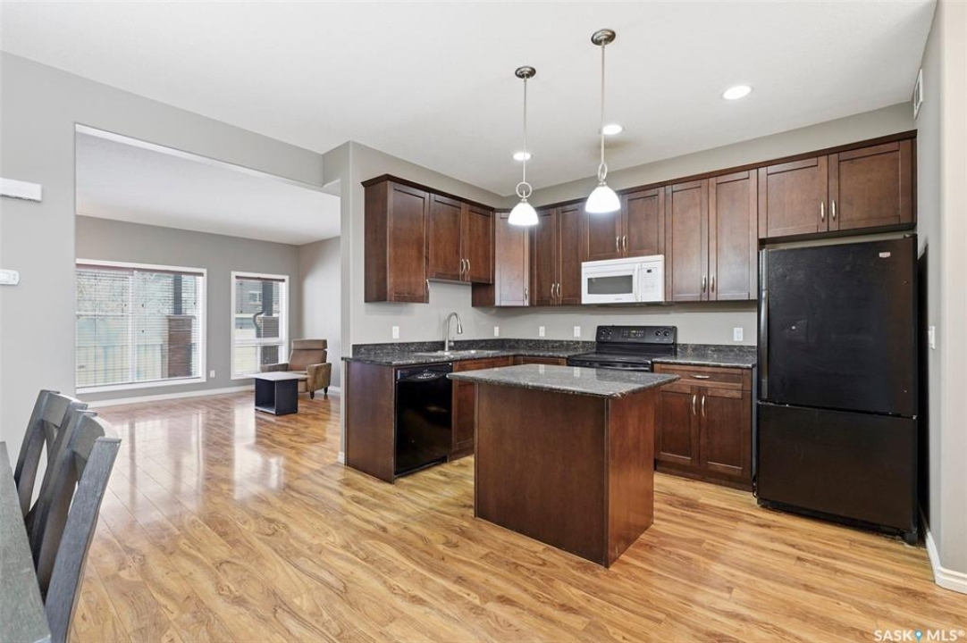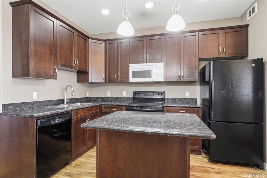 Welcome to 110 Willowgrove Crescent # 402—a beautifully crafted 3-bedroom, 3-bath townhouse built by Riverbend Developments, offering the perfect blend of quality and luxury. Ideally located just one block from Willowgrove Square and two elementary schools, with close proximity to St. Joseph and Centennial high schools, University Heights shopping, and all essential amenities. The home features an attractive exterior with stone and vinyl siding, a charming front veranda, and a private fenced backyard with a spacious covered deck. Inside, you'll find 9-foot ceilings and oversized windows that fill the main floor with natural light. The open-concept living, kitchen, and dining areas showcase deluxe laminate flooring, maple cabinetry with soft-close doors, granite countertops, a large island with seating, and a generous walk-in pantry. Upstairs offers three well-appointed bedrooms and two bathrooms, including a primary suite with granite countertops and a private ensuite. The basement is open for further development. Additional highlights include central AC, detached garage, and a rear single-car driveway. This home shows well—schedule your private showing today!