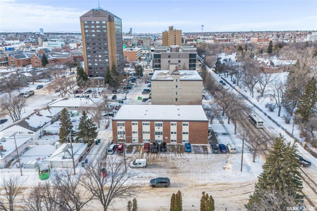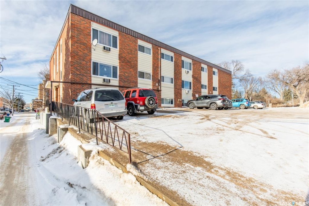 Looking to expand your investment portfolio? This strong 18-suite apartment building offering immediate, stabilized cash flow in a high-demand central Moose Jaw location is available for purchase. Property has 17/18 suites currently rented with a proven tenant base, including 6 long-term tenants with residency spanning approx 6 to 16 years, supporting predictable income & reduced turnover. The building features a desirable suite mix of 6 two-bedroom units, 11 one-bedroom units, &1 bachelor suite, appealing to a broad rental demographic. Most suites have been updated over time with improvements including flooring, paint, & bathroom vanities. All suites are equipped with newer intercom systems, solid core fir entry doors, & include fridge, stove, & hood fan. Separate electrical metering allows for efficient expense control & improved net operating income. Key capital upgrades & mechanical features include natural gas boiler with baseboard heating in all suites, 81-litre hot water heater, & all windows have been replaced. The top two floors (12 suites) are equipped with wall air conditioning, enhancing tenant retention & rental appeal. Coin-operated laundry on the lower floor provides additional income. The site includes 18 electrified parking stalls, a strong amenity in this central location. Located across from Crescent Park, steps to public transit & the Senior Activity Centre, & within walking distance to Temple Gardens Mineral Spa & Casino, restaurants, banking, retail/grocery stores, & medical clinic. This location supports consistent demand & long-term rental stability. An excellent opportunity for investors seeking a well-located, stabilized multi-family asset with long-term tenants, controlled expenses, & future rental upside in a growing rental market.