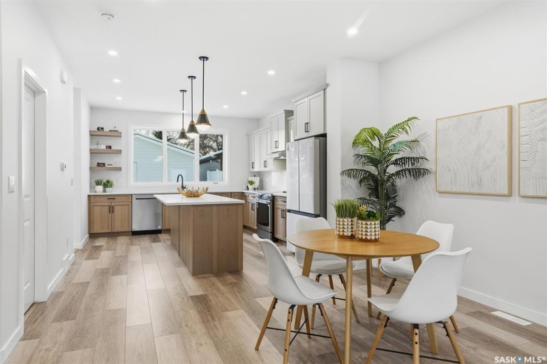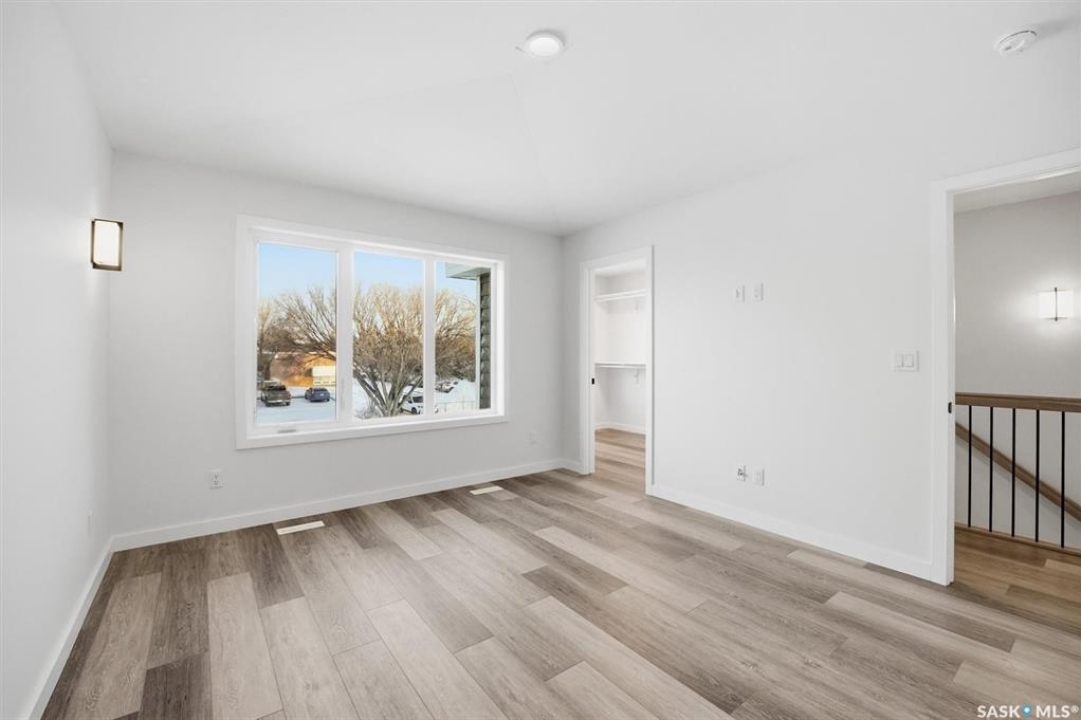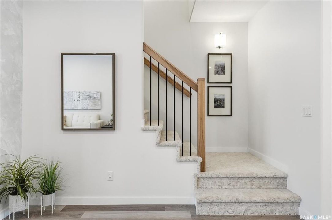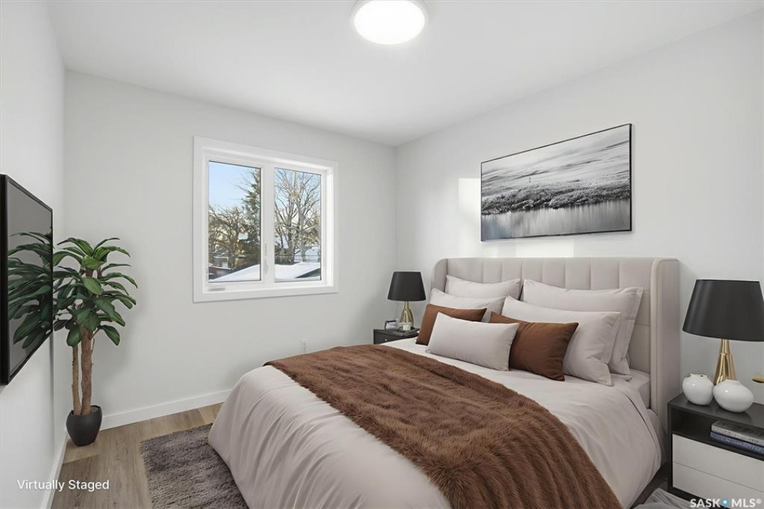 This free standing custom built 2 storey walkout home was built by Capilano Developments and is located in prime Varsity View. Given the unique opportunity of being within walking distance to the University of Saskatchewan the vision was to design a flexible plan appealing to professionals looking to be close to the hospital or University, & even students looking to get into the real estate market. The landscape of this street provided an opportunity to allow access to the basement from the front of the home, which is ideally set up for a suite, home based business, area for extended family visiting, or to use for your own enjoyment. With 1700 sqft on the 2 floors, the main level is spacious and offers a living room with feature gas fireplace with Venetian Plaster surround, dinging room, 2 tone staggered height kitchen cabinets with soft close features / tiled backsplash / garbage/recycle pullout, walk-in pantry, 2 Pc bathroom, and rear mud room with bench seating/storage. The second floor has 3 bedrooms, with the primary bedroom featuring vaulted ceilings, 5 Pc ensuite with soaker tub, walk-in tiled shower, dual sinks, and a walk-in closet. There are two more bedrooms with vaulted ceilings, 4 Pc bathroom, and walk-in laundry area with built-in cabinetry. The basement level is already set up with a secondary electrical panel, future kitchen and laundry rough-ins if a basement suite is of interest, Air B and B, Other features include: luxury waterproof laminate, quartz ctops, A/C, 20'x26' double detached garage with utility door access, majority of yard fenced, rear landscaping with underground sprinklers, front driveway for additional parking.