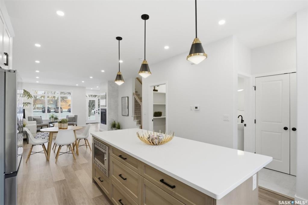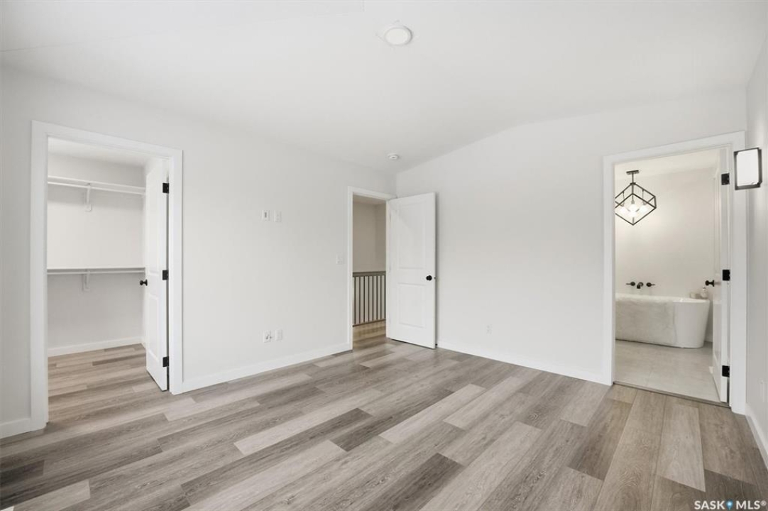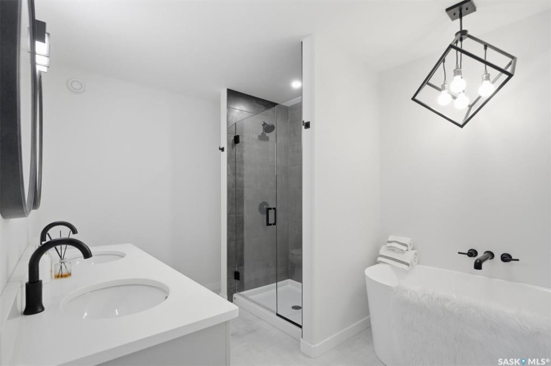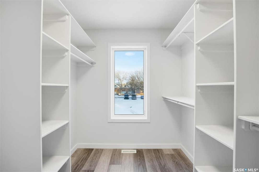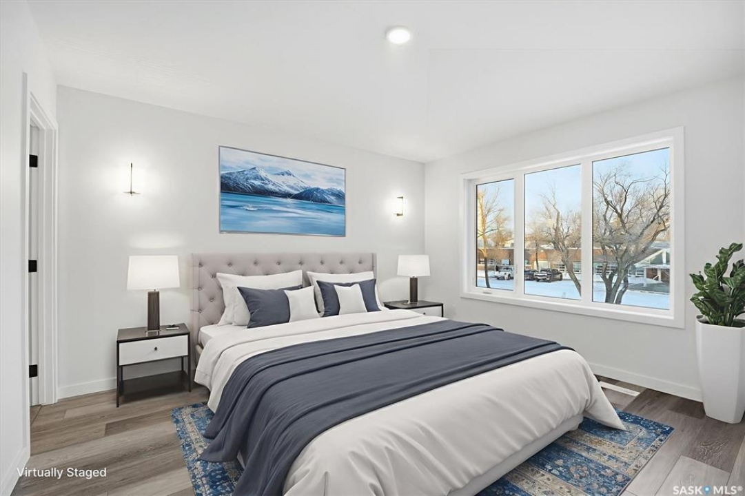 This free standing custom built 2 storey walkout home was built by Capilano Developments and is located in prime Varsity View. Given the unique opportunity of being within walking distance to the University of Saskatchewan the vision was to design a flexible plan appealing to professionals looking to be close to the hospital or University, & even students looking to get into the real estate market. The landscape of this street provided an opportunity to allow access to the basement from the front of the home, which is ideally set up for a suite, home based business, area for extended family visiting, or to use for your own enjoyment. With 1700 sqft on the 2 floors, the main level is spacious and offers a living room with feature gas fireplace with Venetian Plaster surround, dinging room, 2 tone staggered height kitchen cabinets with soft close features / tiled backsplash / garbage/recycle pullout, walk-in pantry, 2 Pc bathroom, and rear mud room with bench seating/storage. The second floor has 3 bedrooms, with the primary bedroom featuring vaulted ceilings, 5 Pc ensuite with soaker tub, walk-in tiled shower, dual sinks, and a walk-in closet. There are two more bedrooms with vaulted ceilings, 4 Pc bathroom, and walk-in laundry area with built-in cabinetry. The basement level is already set up with a secondary electrical panel, future kitchen and laundry rough-ins if a basement suite is of interest, Air B and B, Other features include: luxury waterproof laminate, quartz ctops, A/C, 20'x26' double detached garage with utility door access, majority of yard fenced, rear landscaping with underground sprinklers, front driveway for additional parking.