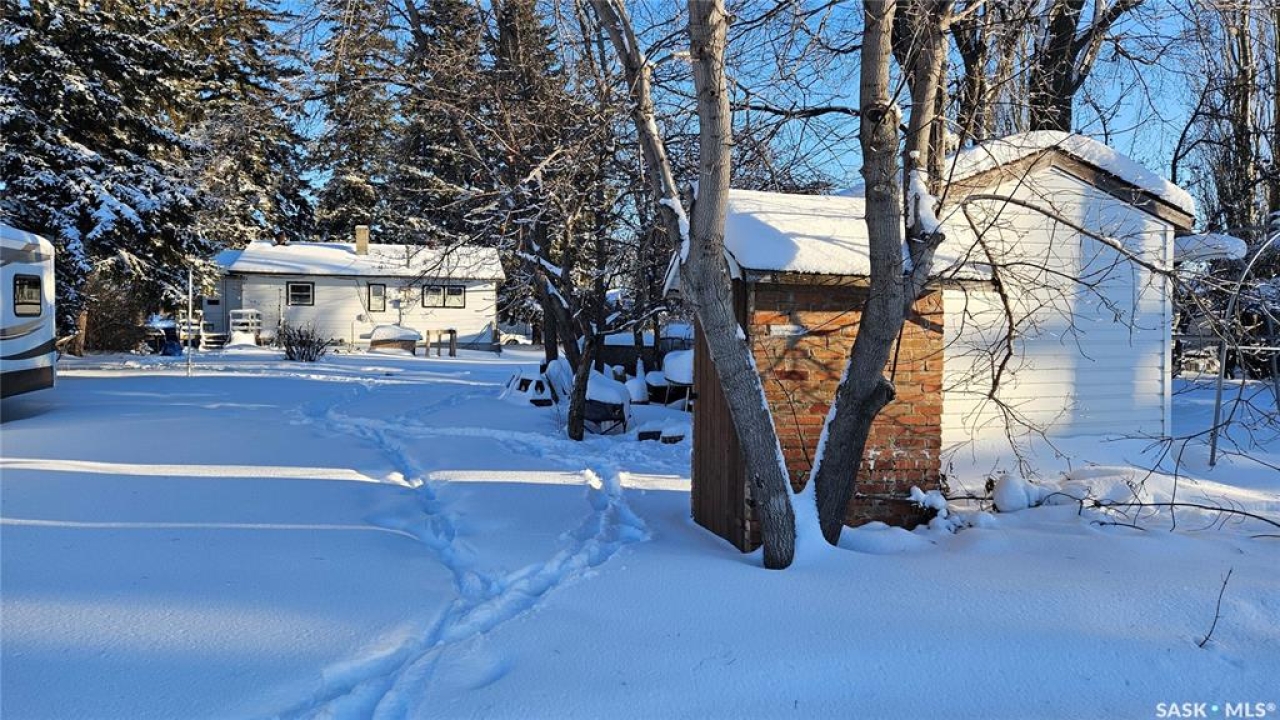 Affordable, 2-bedroom home located on a large corner lot, perfect for first-time buyers or investors looking for space and value in a small-town setting. Recent updates include a new furnace and water heater (2024), newer washer, dryer, fridge, and stove (2024), new flooring, updated baseboards, and modern LED lighting throughout. The kitchen and living room feature LED fixtures include remotes and color-changing options. Exterior window trim was freshly painted in 2025. Outside, you'll find a spacious yard with a garden area, firepit, sheds, and a dog run complete with a doghouse. A cement pad near the back alley marks the former location of a garage, offering potential for future development. With its huge yard and corner lot location, this property offers space, updates, and great outdoor amenities. Call your realtor today to view.
