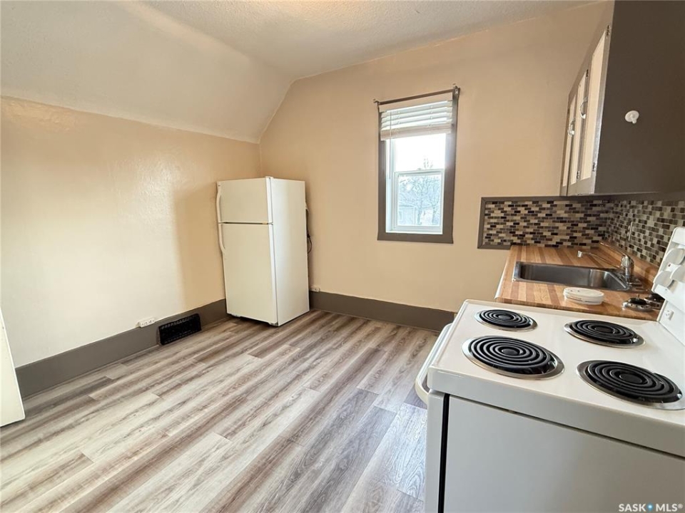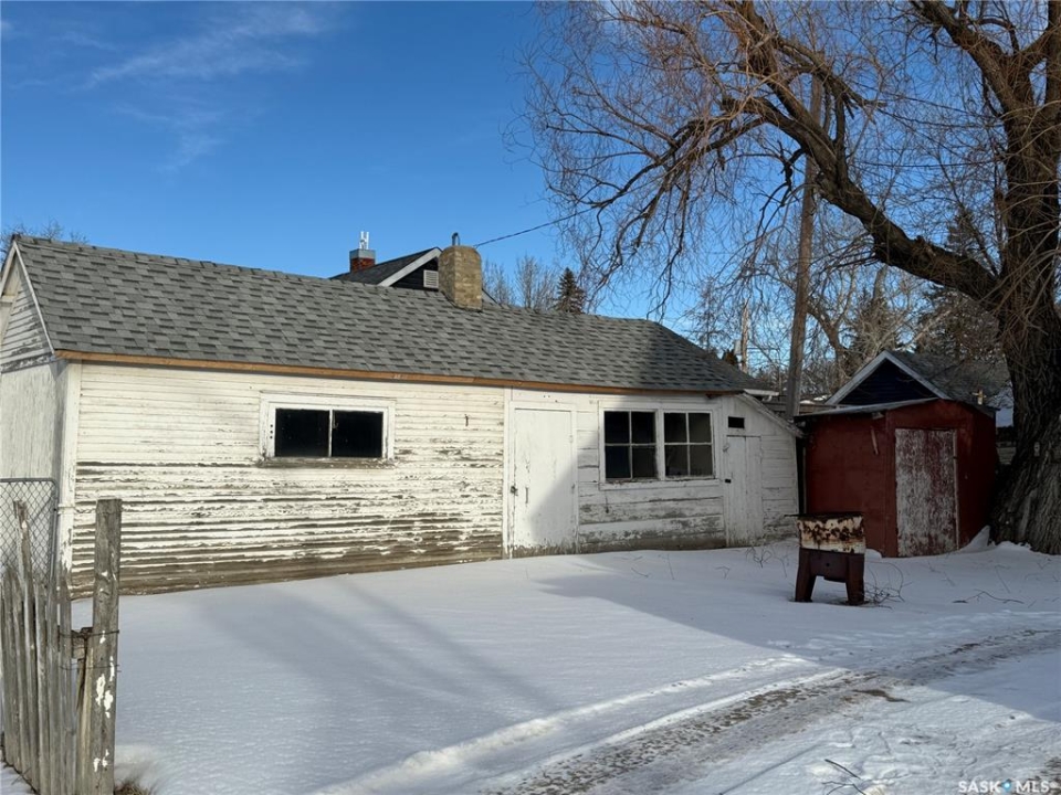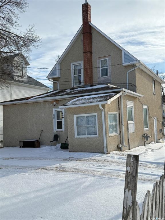 One Prairie Avenue! Conveniently located and waiting for you! Are you looking for a character home or an investment property? This one checks both boxes. This home is within walking distance of the downtown core, across from Crescent Point Place and the curling rink. Hardwood floors run throughout most of the main level of the home with original wood trim in excellent condition and you will find other unique and original treasures such as the antique metal vent covers, wooden banisters and large glass and wood foyer doors. A well-sized entry with stairway to the second level welcomes you into this home with south facing living room flooded by natural light. A spacious dining room connects the kitchen and living room perfect for large family gatherings anytime. You also have on the main floor a primary bedroom/office connected to the 4 pce bath. The kitchen is at the back of the home with ample cabinetry and access to a rear entrance with a small porch. Upstairs you will find laminate flooring throughout with a renovated bathroom that has a lovely generous tiled walk in shower. The basement level is unfinished but has ample storage room. The front entrance is enhanced by a partial wrap around veranda great for those warm summer nights. This home has seen great updates over the last 6 years including most windows, shingles on house and large storage building, the panel box and the upstairs flooring and bathroom. This property is very clean and tidy and you can start making revenue immediately. Don't sit on this one. Call for your private viewing right away!