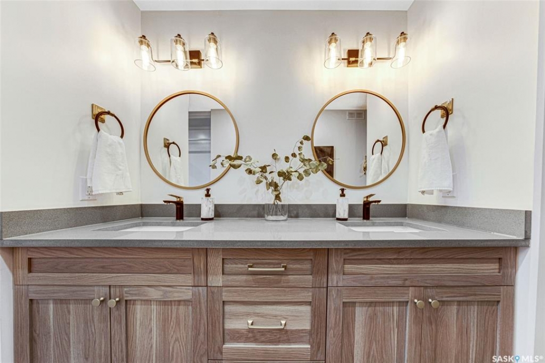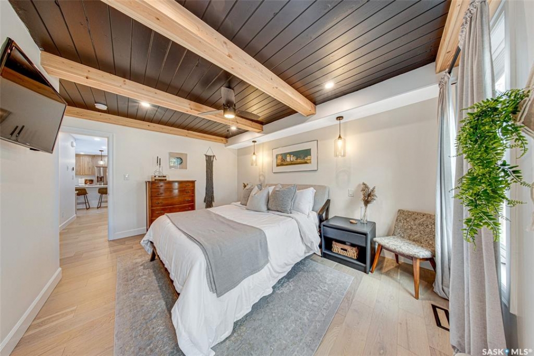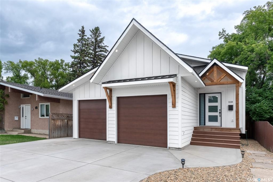 Welcome to this Holiday Park gem! This modern built 2 bed, 2 bath bungalow is sure to impress. Upon entering you are welcomed by the engineered hardwood flooring, the wood accents, the gold hardware, and the gas fireplace! The elegant kitchen will turn heads with quartz counter tops, custom cabinets, walk in butlers pantry and a wooden range hood. Master bedroom is warming with the wood work ceiling along with the eye catching tile in the ensuite. Other key notables: 2 car heated attached garage, 2 car detached garage, all appliances, heated ensuite floors, and there is a separate entry for a future possible suite (panel already installed) Located across from Gordie Howe Park, you can take advantage of the greenspace, the ball diamonds, the hockey rinks, the football fields, as well as being close to all amenities!! Don't miss out on this one!!
