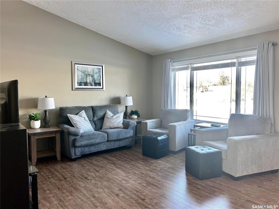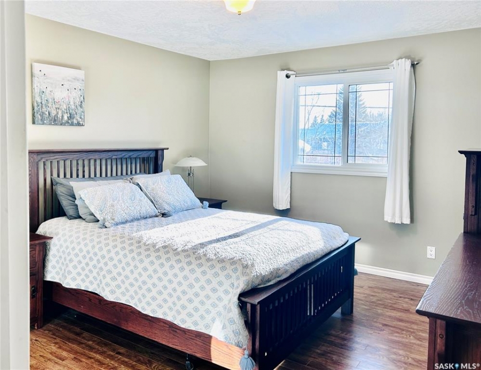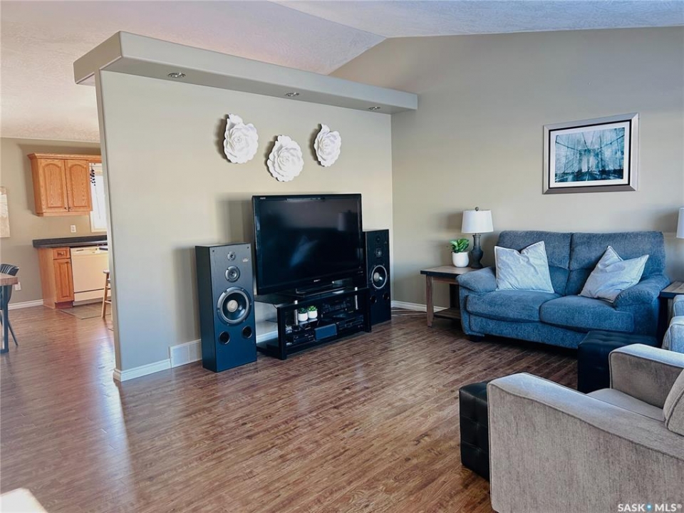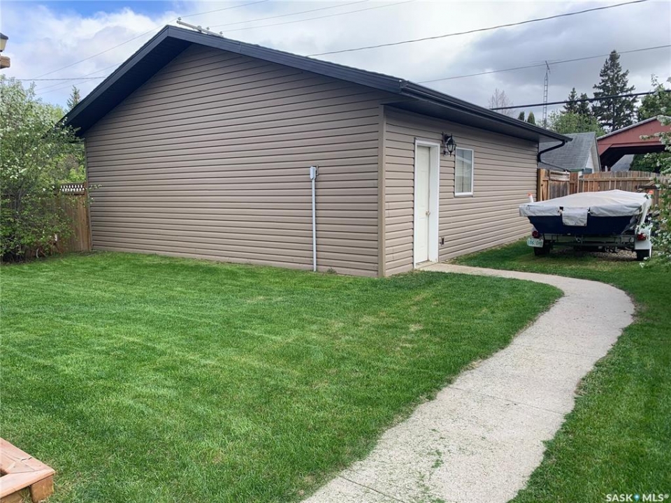 Welcome to this beautiful, meticulously kept 1,200 sq. ft. bungalow offering 4 bedrooms and 2.5 bathrooms in an unbeatable location. Just steps from the elementary school, within walking distance to downtown amenities, and only three blocks from the recreation centre, this home is ideal for families and active lifestyles. The open-concept kitchen, dining, and living area features vaulted ceilings, creating a bright and spacious atmosphere perfect for everyday living and entertaining. Outside, enjoy a mature, fully fenced yard complete with a cozy firepit area for outdoor gatherings. A 26' x 28' heated garage provides ample space for vehicles, storage, and projects. This exceptional property offers comfort, convenience, and pride of ownership throughout.