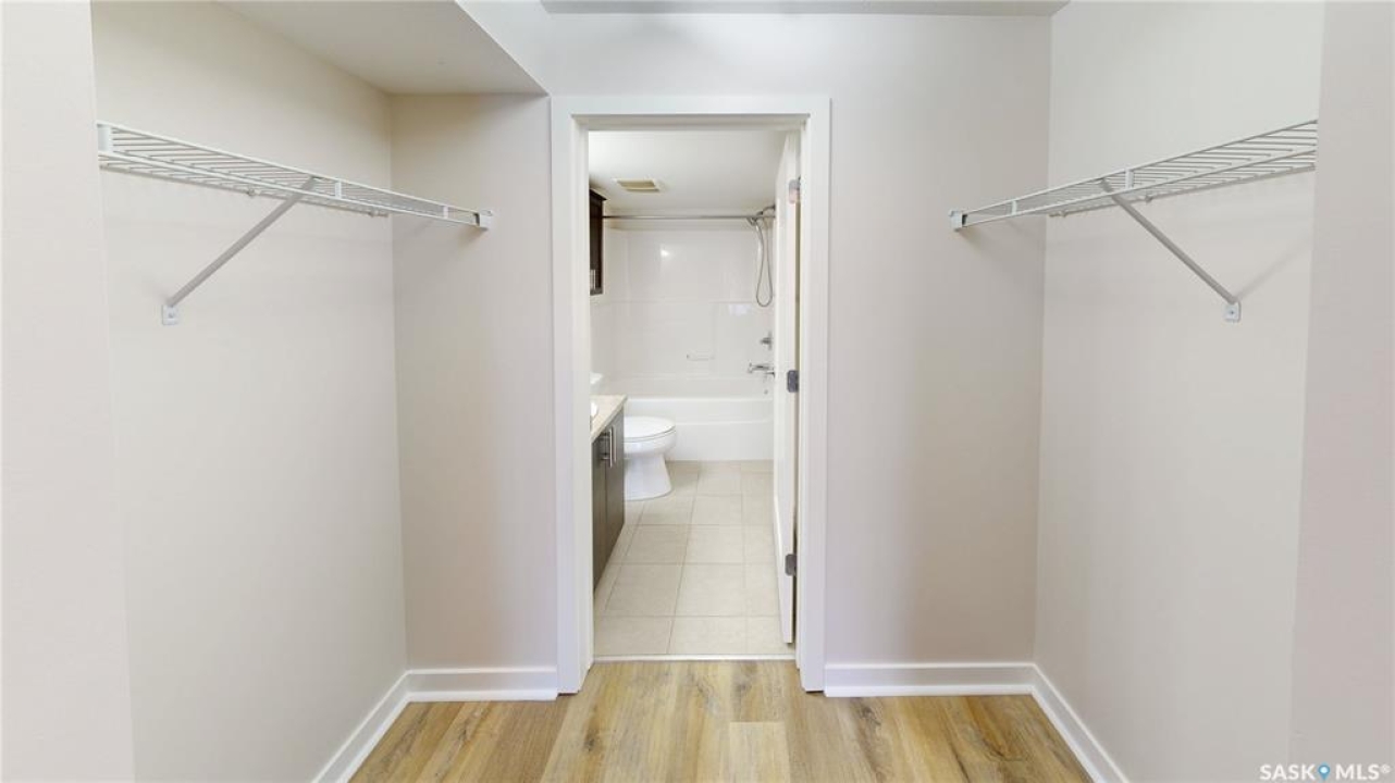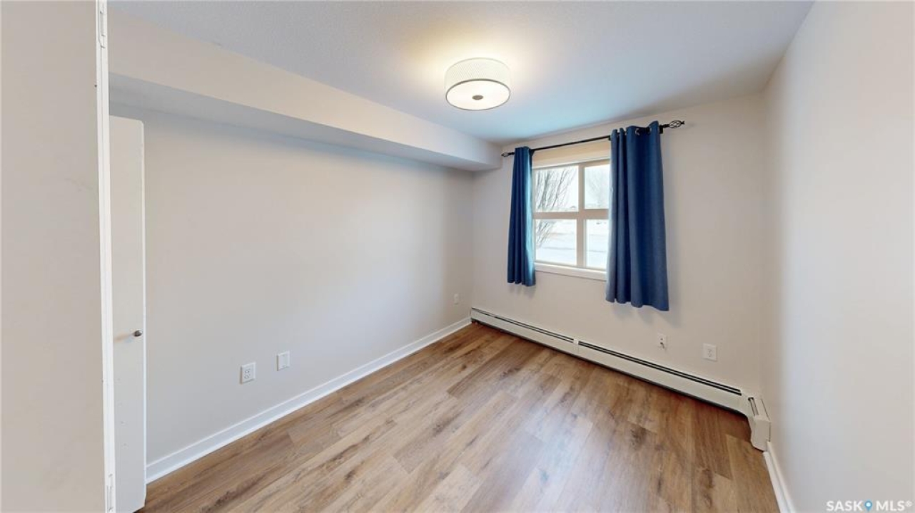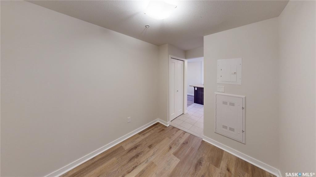 Welcome to unit 2115 at 5500 Mitchinson Way located in the highly convenient neighborhood of Harbour Landing where shopping, restaurants, parks, and everyday amenities are all just minutes from your door. This 2015 built, 812 square foot, 2 bedroom 2 bathroom plus a den apartment style condo is on the main level of the building making it wheelchair accessible. You enter the suite into the foyer with a coat closet. The kitchen features tile flooring and includes the stainless steel fridge, stove, microwave hood fan and dishwasher. The living room has a bright north facing window and access to your private patio. There is ample street parking here as well making this another great entrance to your home. All of the vinyl plank flooring in this suite is brand new! The primary bedroom has closet space and a 4 piece ensuite bathroom. The second bedroom is next followed by the main 4 piece bathroom. Finishing off the unit is a den that makes a wonderful office or storage space and your in-suite laundry with included washer and dryer is tucked neatly behind a door just outside the den! The condo fees are $519 a month and include common insurance, sewer, common area maintenance, exterior building maintenance, snow removal, lawn care, water, garbage, heat and reserve fund. You also have two personal parking spaces. One outside in the parking lot and one underground!
