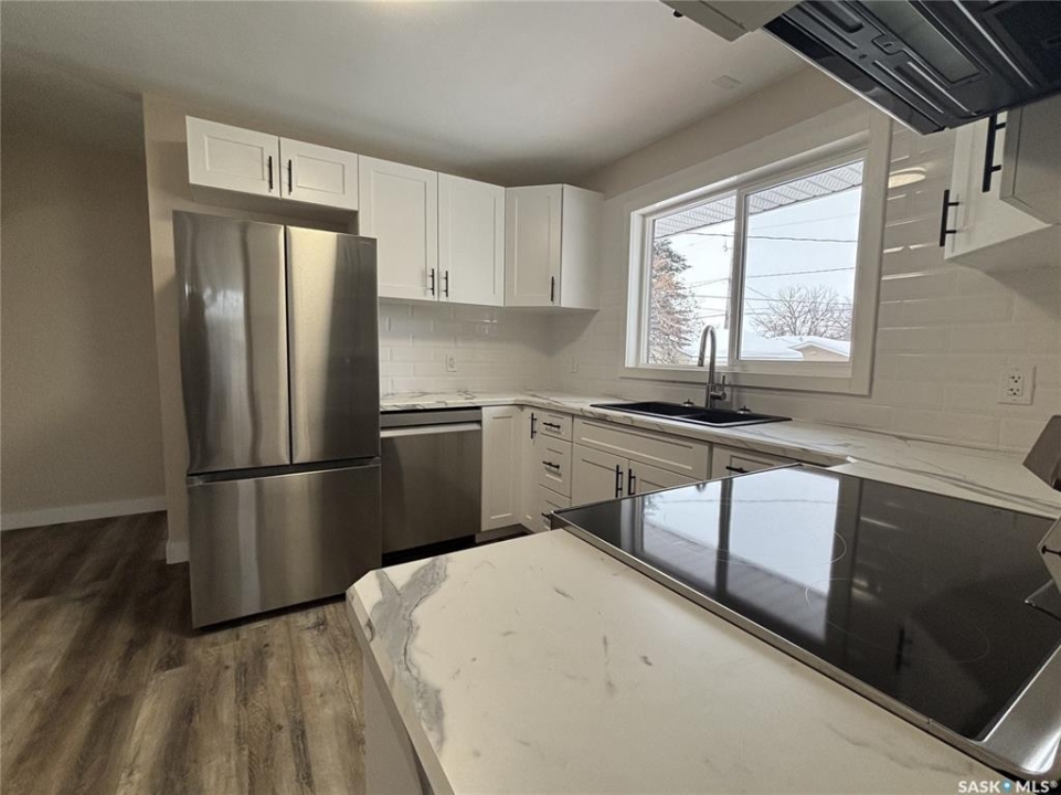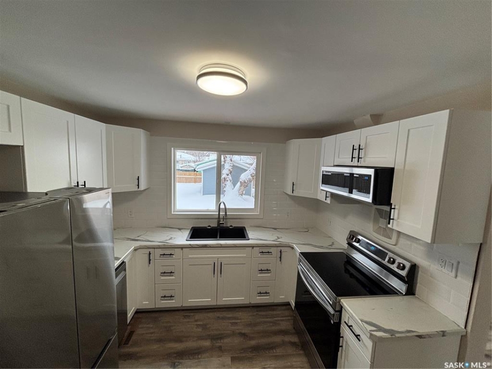 As close to new as possible without the new price tag! This family friendly home, in a great neighborhood close to two schools, is ready for you. This 5 bedroom, 2 bathroom home has just had a complete upgrade. New Windows, doors, siding, electrical(all LED lighting), plumbing, cupboards, counter top, tile backsplash, all appliances(fridge has a built in icemaker), flooring, bathrooms, including tiled tub surround, paint, h/e furnace, h/e water heater, central air, even the outside venting fan for the stove! The attic even has upgraded insulation for efficiency. The fully insulated and boarded oversized single garage has a brand new insulated overhead door with new power opener. The fully fenced yard has mostly brand new treated lumber fence with a large 2 piece gate beside the garage to store your boat or rv or extra vehicle. The only thing this home needs is your family. Call you agent today to arrange your viewing!