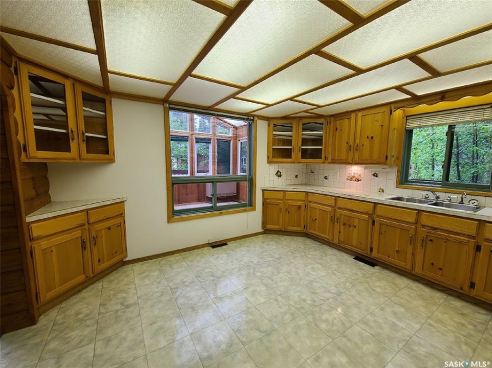 Opportunity awaits! Here is a perfect property for a large group, a couple of families, or possibly an opportunity for some type of business venture on Powm Beach at Turtle Lake. There has been a large price reduction to this property. The cabin was built in 1987 where you step into a large 4 season sunroom, then into the living room complete with a gorgeous wood burning stove. Then into a large kitchen complete with a retro sunshine ceiling. The main floor also has 1 large bedroom, 4-piece bath and a mudroom with laundry. You enter the 2nd level via a sweet spiral staircase where you find a huge loft area and 2 more bedrooms and another bathroom. The other building on this lot is where the opportunity lies, in that it is a full heated 3+ car garage, with a 4-piece bath, then upstairs is a massive games room, also with a gorgeous wood burning stove. Another 3-piece bath with soaker tub (and provisions for a sauna; although the steam unit has been removed), then onto another huge room with a loft in it where the possibilities of how to utilize this would be up to your imagination and whatever the municipality would allow. The lake is a short stroll down a public walk, which first crosses a beautiful grassed in area, then onto a sandy public beach.