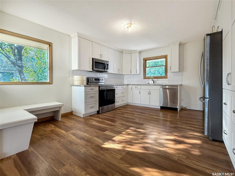 Public Remarks: Nestled on the esteemed North Hill Drive, this property stands out in a highly coveted location. Homes here rarely enter the market, making this a unique opportunity to secure a residence that can be personalized to your liking. The property, with its southern exposure, benefits from abundant natural light throughout. Upon entry, you'll find a generously sized front living room. Adjacent to this space is a renovated kitchen, featuring sleek white cabinetry, stainless steel appliances, and a built-in dinette area. This flexible space can accommodate a dining table or be adapted to suit your dining preferences. The main level includes two large bedrooms and a spacious four-piece bathroom. Descend the stairs to discover a versatile area that can serve as an additional living space or a secondary income suite. At the base of the stairs, you'll find a utility area with shared laundry facilities, a three-piece bathroom, storage room, and a full kitchen equipped with a fridge, stove, and eating area. The lower level also features a sizeable living room with three large windows and a bedroom with two additional windows. The home is heated by a high-efficiency, forced air natural gas furnace, complemented by some baseboard heaters. It boasts two separate electric panels, facilitating independent electrical billing for the main home and potential tenant. Additional features include an air exchanger, power-vented water heater, and large windows on both levels. Outside, the property offers a single-car garage, back deck, and a large, mature backyard with ample green space, fire pit, pond and trees, all fully fenced with a spacious driveway. Enjoy the convenience of being directly across from a desirable park, skating rink, walking paths, and the river, as well as within walking distance to local schools serving kindergarten through grade 12. Call today for more infotmation!