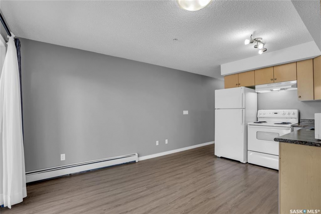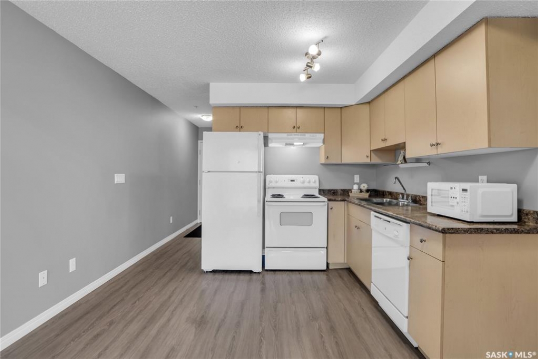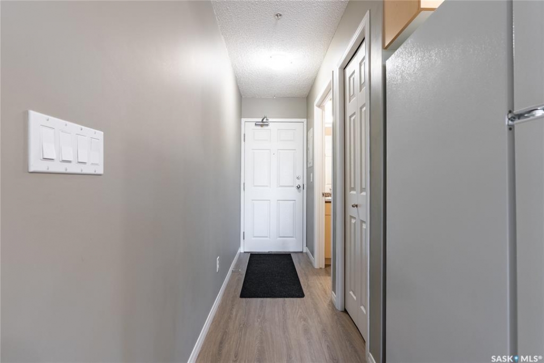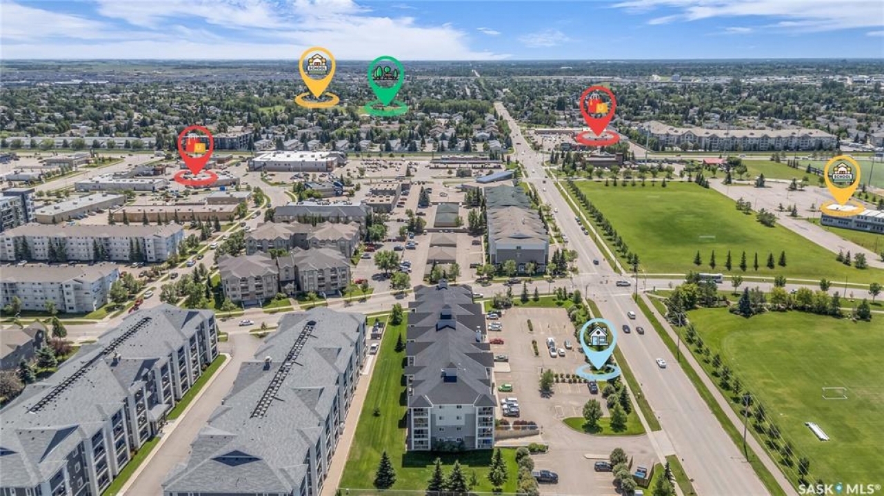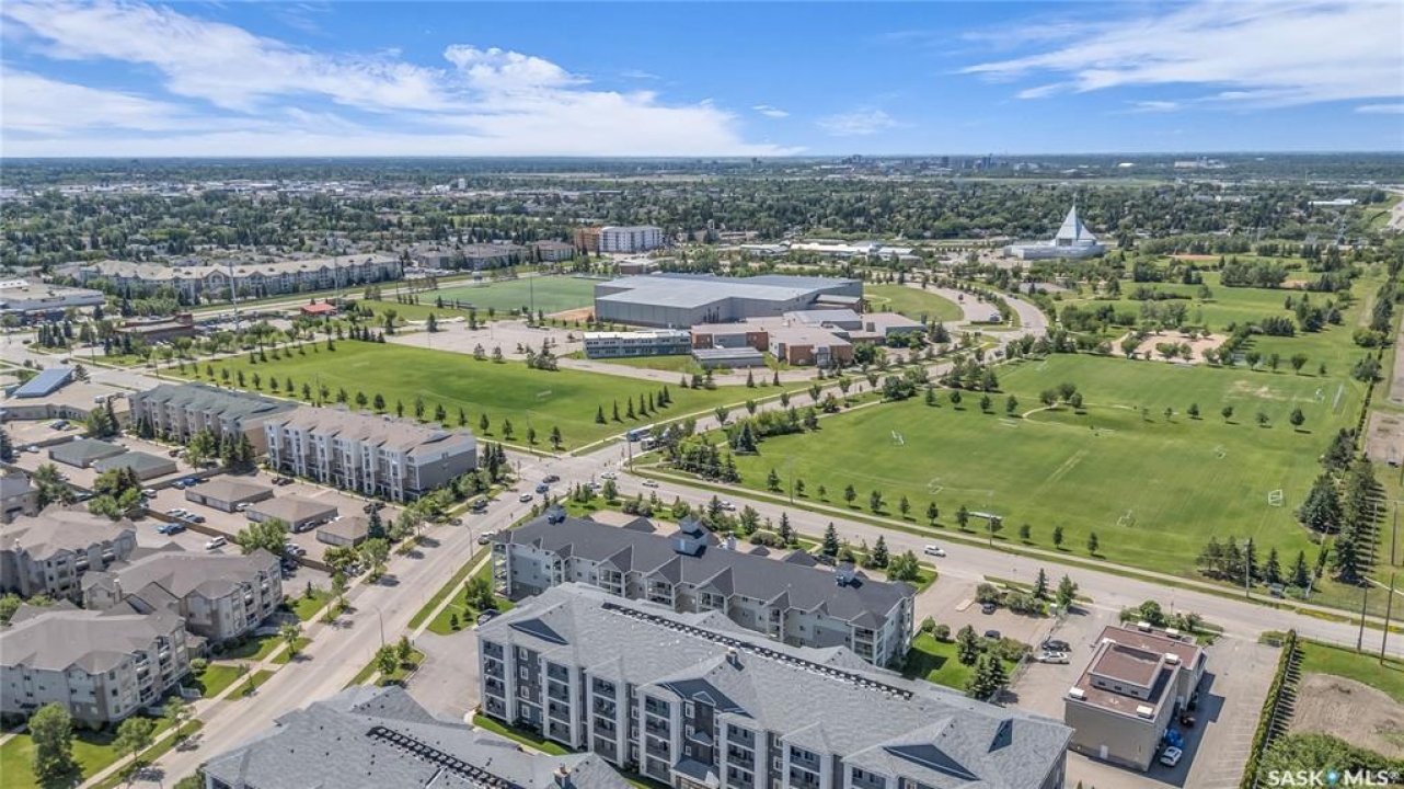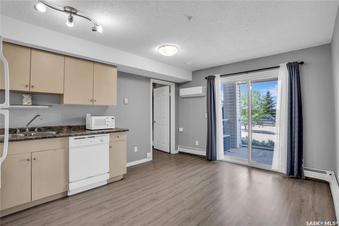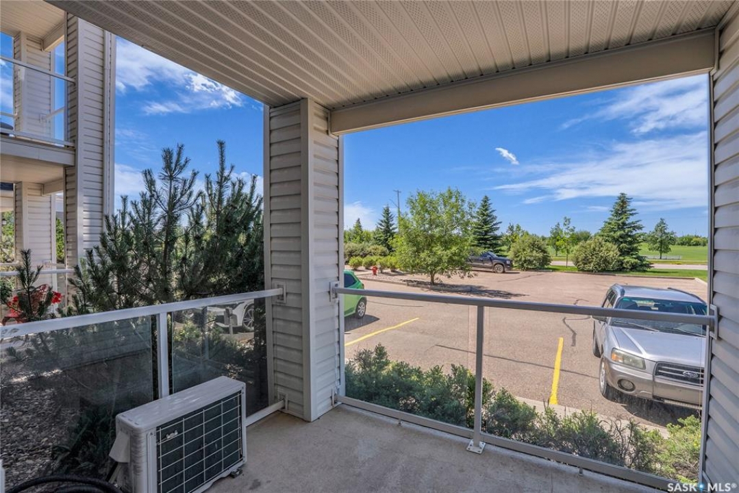 Awesome location with this very affordable 1 -bedroom apartment style condo located in the University Heights area of Saskatoon & situated across the street from a park! There is quick access to all amenites as well as the University – perfect for students going to school. This well cared for unit is on the main floor great for anyone that does not like stairs. It features an open concept living room to kitchen/dining area, vinyl plank flooring, in-suite laundry, a spacious bedroom & a nice-sized private balcony with a view of the park across the street. Parking is out front with easy access to the front door. 1 electrified surface parking stall is included as well as visitor parking. There is an exercise area, wheelchair accessibility & this very affordable home comes complete with all appliances, washer/dryer as well as a wall air conditioning unit. Don't wait! Call today to view.