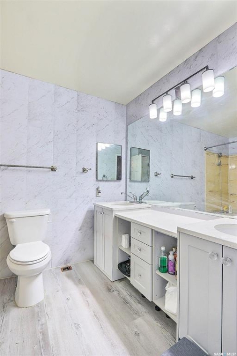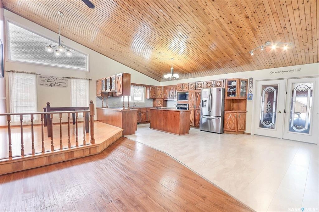 Welcome to this 4 bedroom, 3 bathroom detached bi-level home located in the desirable Carlton Park neighbourhood. Offering 1,808 sq ft of living space, this home was built in 1983 and features a fully finished basement, making it ideal for families and entertaining. The main level boasts a bright and spacious formal living room with a wood-burning fireplace and large windows that fill the home with natural light. The massive kitchen and dining area showcase a vaulted pine ceiling, open layout, and patio doors leading to a sun-filled space.The primary bedroom includes double closets, a 3-piece ensuite, and direct access to the sunroom that includes a sauna, hot tub, and walk in shower. The fully finished basement offers a huge recreation room and wet bar creating the perfect space to relax or host guests. The property features a fenced yard, two car garage, and is situated in a mature neighbourhood close to parks. A great opportunity to own a spacious home in a family friendly location.