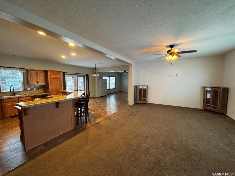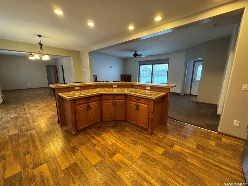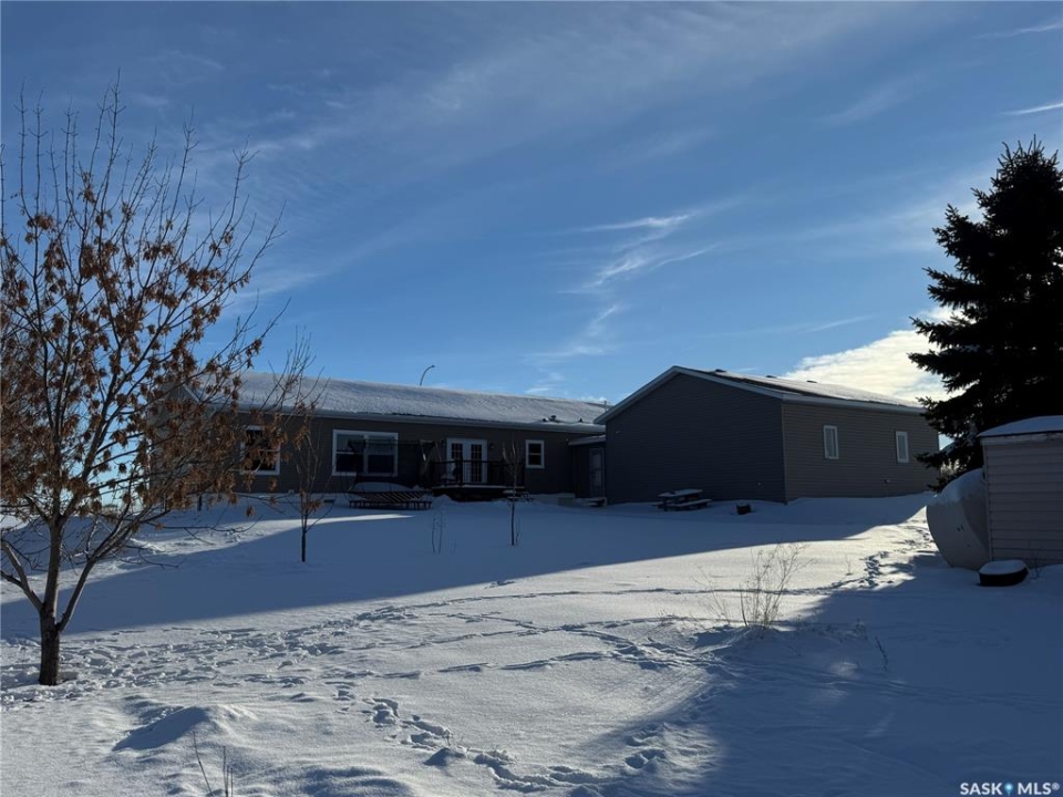 Spacious 2,100 sq. ft. bungalow located on the edge of Imperial, offering peaceful countryside views and stunning prairie skies. This well-designed home features four generous bedrooms and two full bathrooms, including a primary suite with a 4-piece ensuite and soaker jet tub. The open-concept layout includes a bright living room with a cozy electric fireplace, plus an additional family room—ideal for entertaining or extra living space. The impressive kitchen boasts stainless steel appliances, including a double built-in oven, abundant cabinetry and counter space, two pantry cabinets, a large island with breakfast bar, and a spacious dining area with garden doors leading to the deck. A huge mudroom and laundry area provide direct access to the oversized 30' x 30' double garage. Additional highlights include central air conditioning, air exchanger, ample parking with space for an RV, garden area, and more. A must-see property—book your showing today!