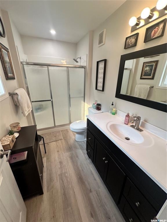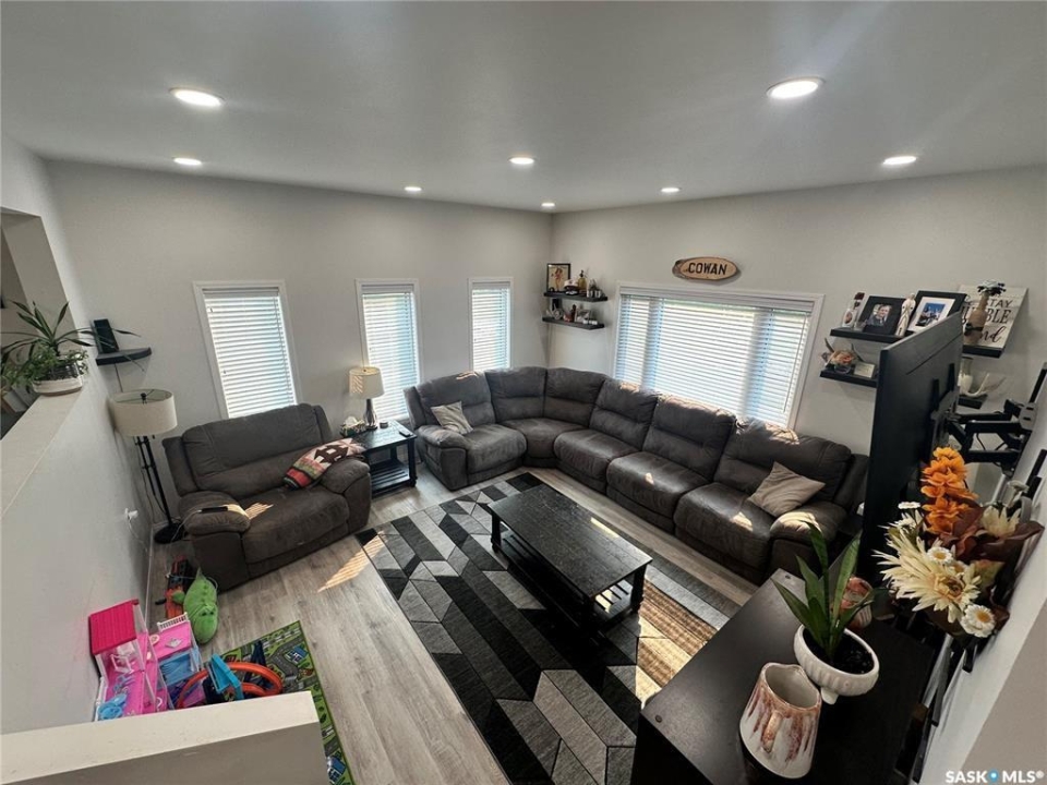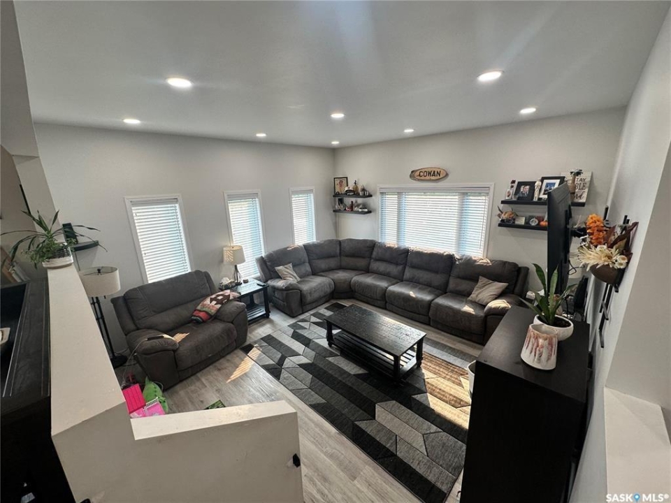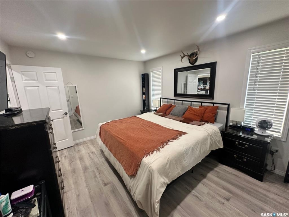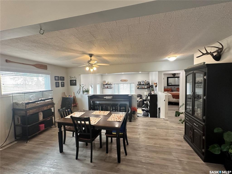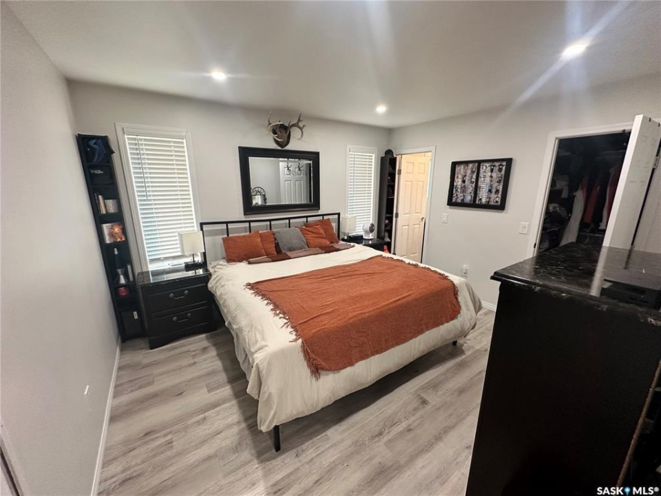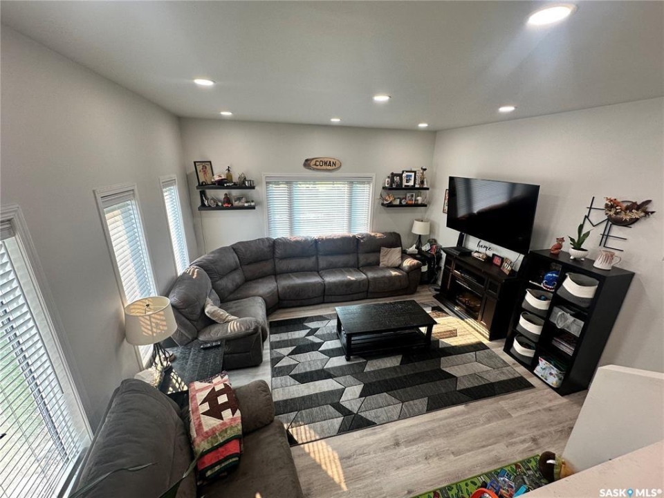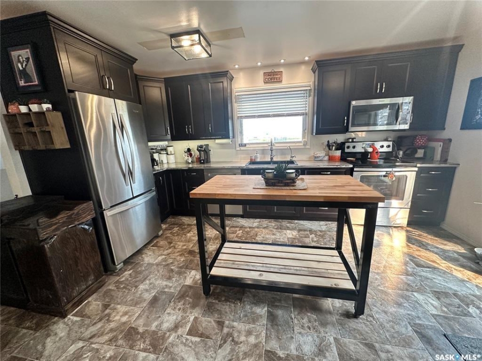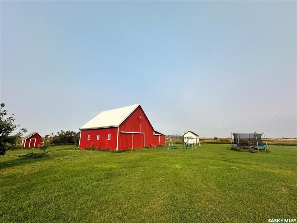 Welcome to this beautifully maintained acreage offering the perfect blend of space, comfort, and convenience. Situated on 3 acres, this 1,600 sq. ft. home features a 640 sq. ft. addition completed in 2020, providing plenty of room for the whole family. The home boasts an abundance of cupboard space, a pantry, and modern appliances, making the kitchen both functional and inviting. A large dining room overlooks the sunken living room, where expansive windows flood the space with natural light. The spacious primary bedroom is conveniently located off the entrance hallway and offers a walk-in closet and a private 3-piece ensuite. Off the kitchen, you'll find a laundry room, two generous-sized bedrooms, and a 4-piece bathroom. The fully developed basement includes an additional bedroom, a 3-piece bathroom, a cozy family room, and a large utility room housing the water tanks. Outside, enjoy a wrap-around deck perfect for relaxing or entertaining, along with a barn, two detached garages, and expansive green space. This property is a fantastic opportunity for those seeking extra outdoor space while still enjoying easy highway access and commuting convenience.