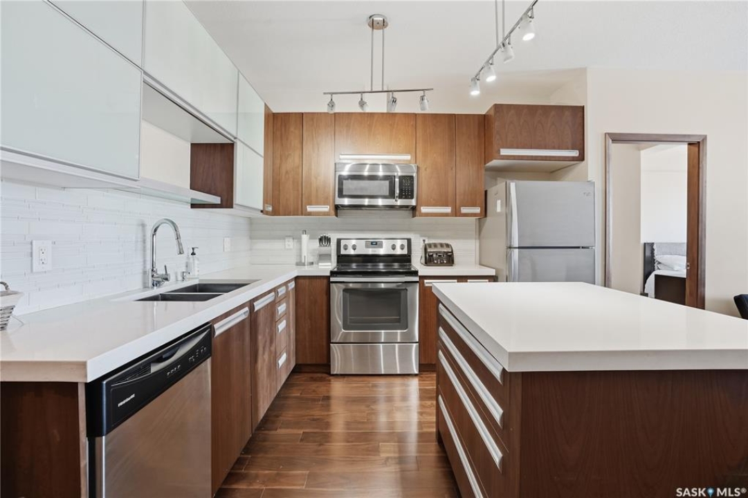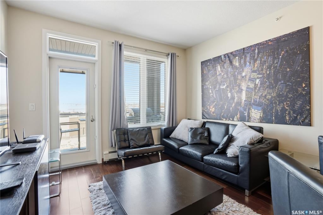 Welcome to Unit 414 at 2101 Heseltine Road, a well-designed condo in Regina's east end that balances comfort, style, and convenience. This bright unit offers two bedrooms and two bathrooms, with a functional layout that works for everyday living. The open-concept kitchen and dining area flow into a comfortable living room, with large windows and a balcony that looks out over the water — a great spot to unwind at the end of the day. The kitchen features stainless steel appliances and plenty of workspace, and in-suite laundry adds to the overall convenience. The building offers a solid list of amenities, including an indoor pool, gym, amenities and party rooms, along with one underground and one above-ground parking stall. A great option for anyone looking for a low-maintenance lifestyle