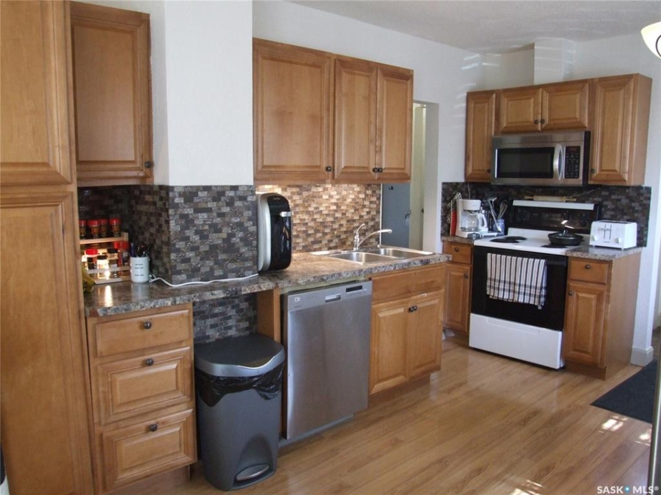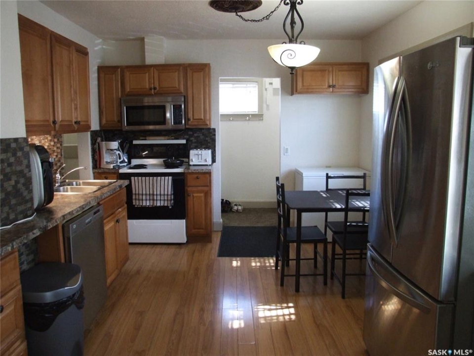 This Bungalow is located in Leader, SK. It has the perfect location for those who love to walk, just a block from the main downtown area of Leader and across the street from the park and swimming pool. Nothing is very far from this home. The open concept living and kitchen area is bright and has large south facing windows. The masterbedroom is huge, has a walk in closet and the 4pc bathroom is just off the bedroom. There is a second bedroom in this home and a welcoming front porch that could be you favorite spot to have a coffee and watch the day go by. The deck at the back of the house is the perfect place to spend your summer days enjoying the yard and grilling your favorite meal. There is plenty of room in the yard to plant a large vegetable garden. This small but mighty home has had lots of updates and could be just what you are looking for. All measurements are approximate and all information is supplied by SAMA and the Owner which can be verified by interested parties. Don't let this one slip away.