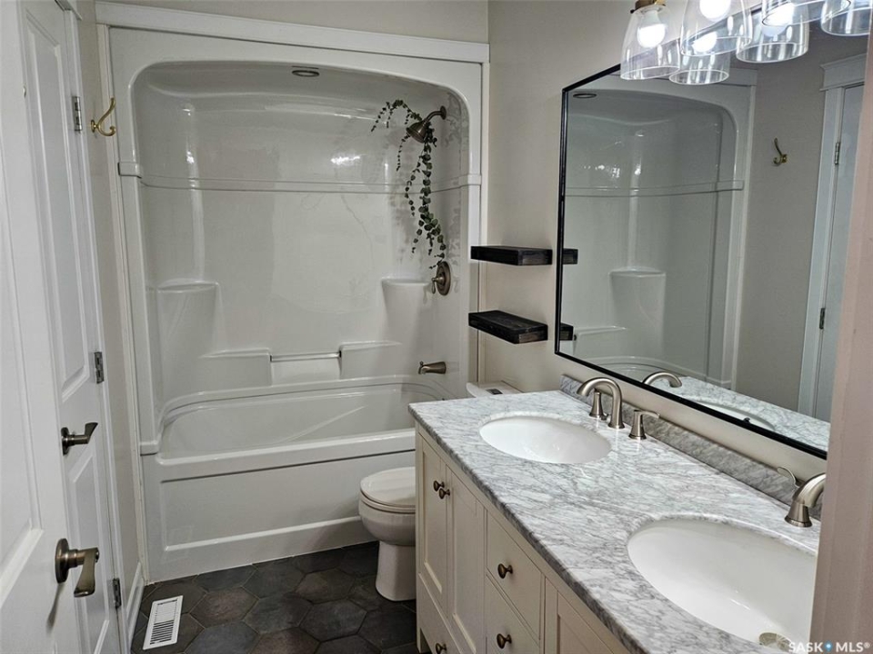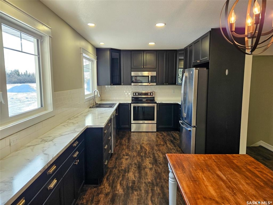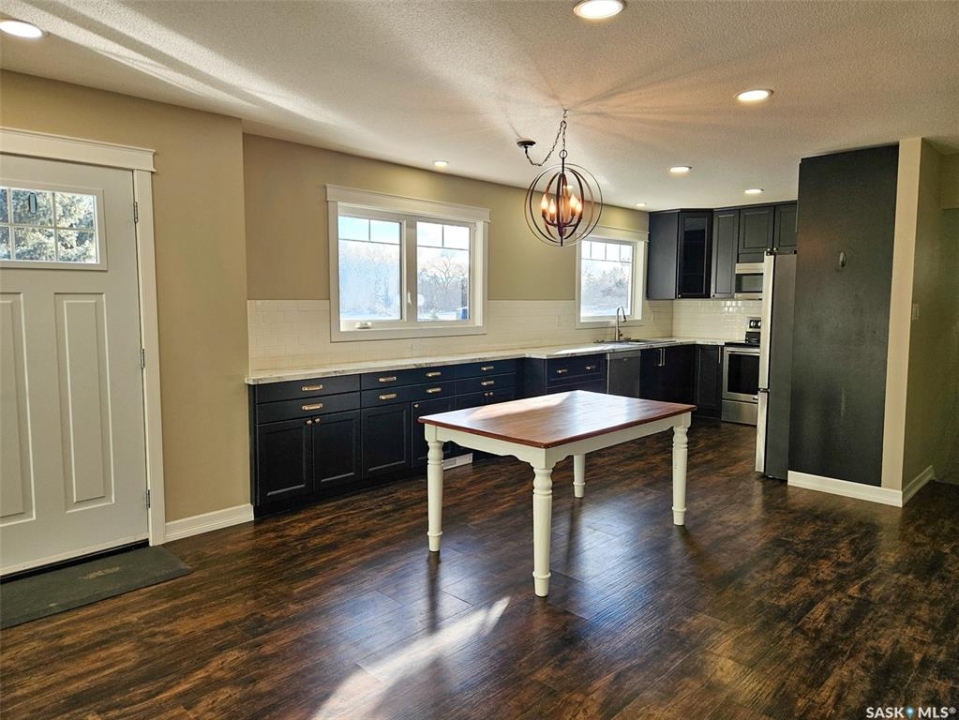 Discover the perfect blend of modern comfort and rural serenity with this exceptional 4.6-acre property located in the quiet community of Blumenort, just a short 20-minute drive from Swift Current. The heart of this home is a beautifully fully renovated main floor, where large windows flood the living spaces with natural light, complemented by the stylish kitchen and high-end appliances. The functional layout includes three spacious bedrooms upstairs and an additional bedroom on the lower level, serviced by two full 4-piece bathrooms—one on each floor. Throughout the home, you will find an abundance of storage solutions, ensuring a place for everything in a clutter-free environment. The exterior of the property is a dream for hobbyists and those seeking privacy. Vehicle storage is plentiful with both a double attached garage and a double detached garage. For those with larger projects or equipment, the massive 40 x 60 Quonset provides unmatched workspace and storage potential. The 4.6-acre lot is framed by a mature shelter belt, creating a private oasis that feels miles away from the world. Outdoor enthusiasts and gardeners will especially appreciate the reliable well, which provides high-quality drinkable water and a plentiful supply to maintain a flourishing garden and lawn all season long. Location is key for families, and this acreage offers the ideal balance of country life and convenience. Children can enjoy the benefit of bus service directly to Wymark School, making the daily routine simple and stress-free. Whether you are looking for a place to grow your family, run a home-based business, or simply enjoy the peace of the Saskatchewan prairies, this Blumenort gem is ready to welcome you home.