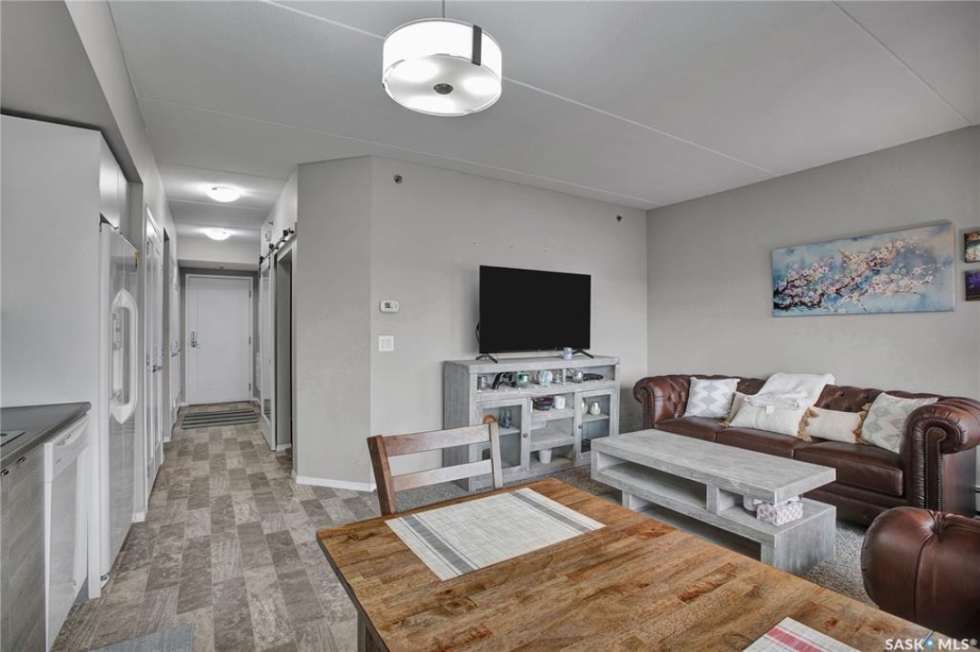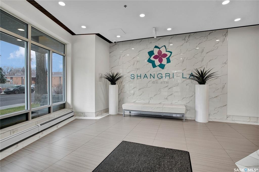 All furniture is available!! The Shangri-La on 4th Ave welcomes you to the City Park life style, and all the amenities that go with it. This very functional and elegant open design, with lots of natural light and clean contemporary finishes, welcomes you with bright finishes and lots of light. In the kitchen there is an upgraded subway tile back splash, all white appliances, and a garburator. The spacious bathroom has beautiful cedar accents and lots of storage. The building also boasts of a penthouse amenities room, exercise area and rooftop balcony with barbecue and an amazing view. Just a few steps from City Hospital and the scenic trails along the river, this condo offers the best of urban living with easy access to nature. The downtown shops and restaurants will be calling you, as they are within walking distance along with handy access to city transit, U of S, and RUH. Have your agent set up a showing as this condo won't last long.