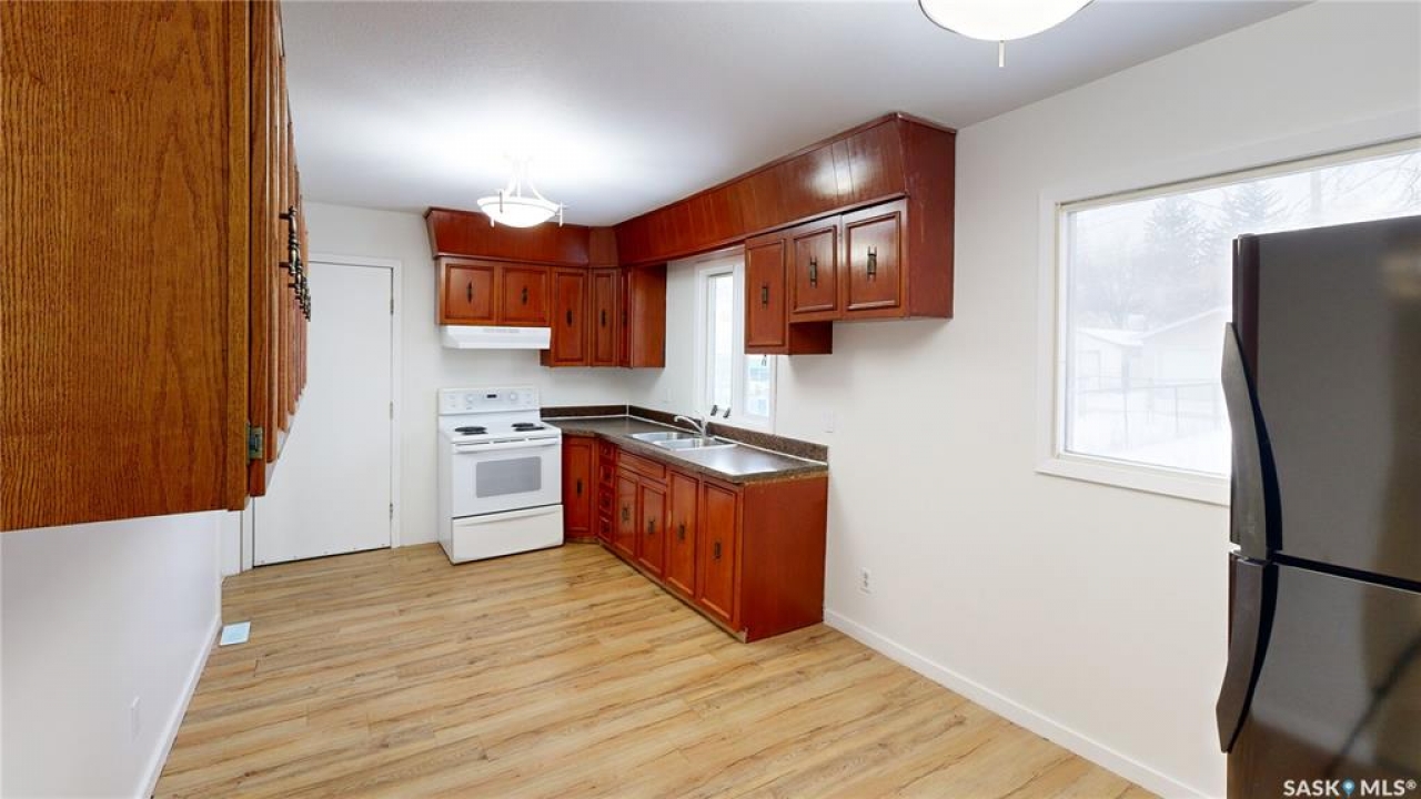 Welcome to 2130 Atkinson Street in the highly convenient Borders Annex neighborhood. This desirable location is just moments away from the General Hospital, St. Augustine and Arcola Elementary Schools, the public library, the Al Ritchie Outdoor Spray Park, and a variety of parks, shops, and essential amenities. This 1916 built, 900 square foot, 2 bedroom 1 bathroom bungalow sits on a 25 x 125 rectangular lot backing a lane. The front yard has a lawn and large trees. The brick finish on the front of the house makes it unique. The fully fenced backyard also has a lawn and trees and access to the single detached garage! You enter the home into the living room with a bright east facing window and modern vinyl plank flooring. The entire home has been freshly painted and is move in ready! The first bedroom has a spacious closet! The 4 piece bathroom is next followed by the large primary bedroom. The dine-in kitchen finished off the main floor with plenty of cupboard space, access to the back yard and the fridge and stove are included! The partial basement is where you'll find the included washer, dryer, furnace and gas water heater!