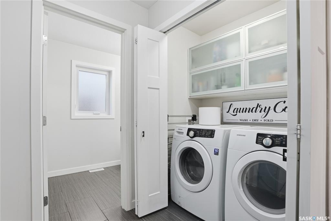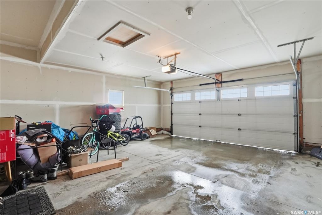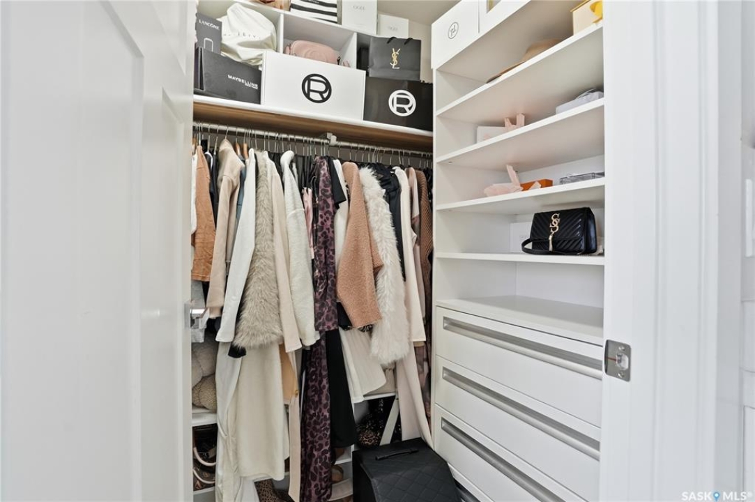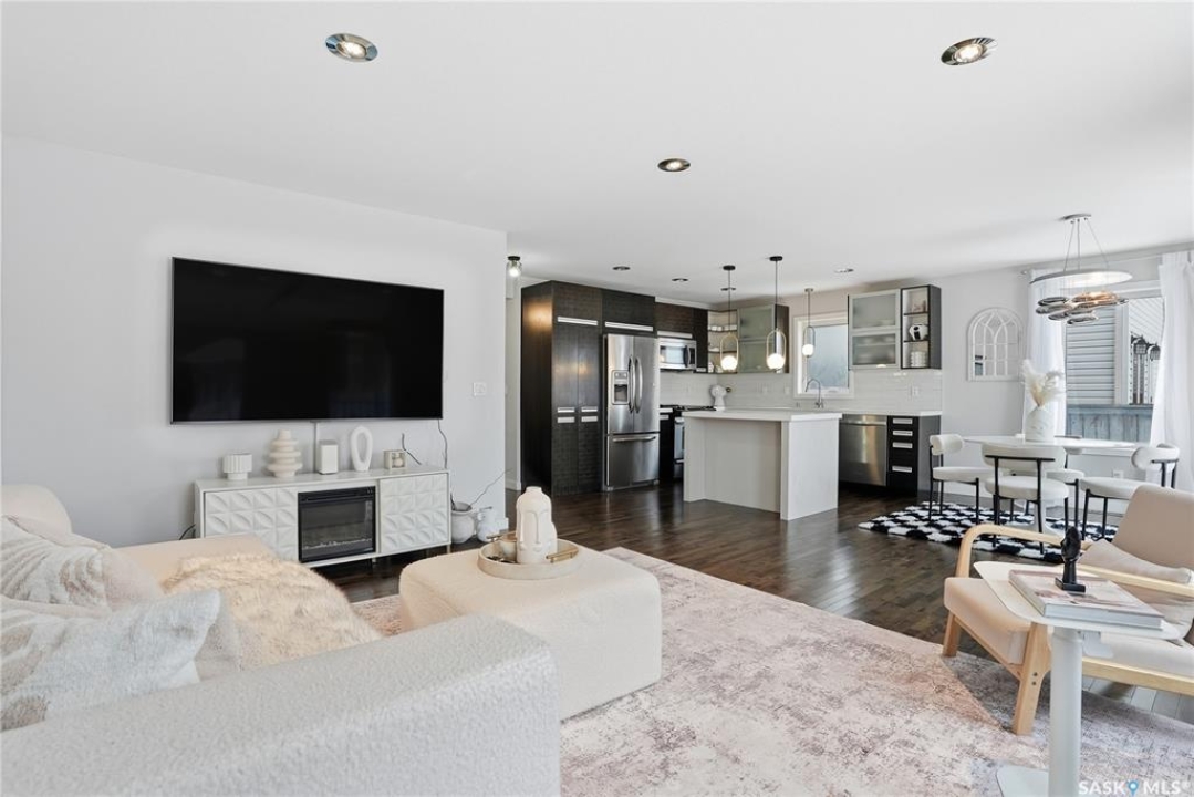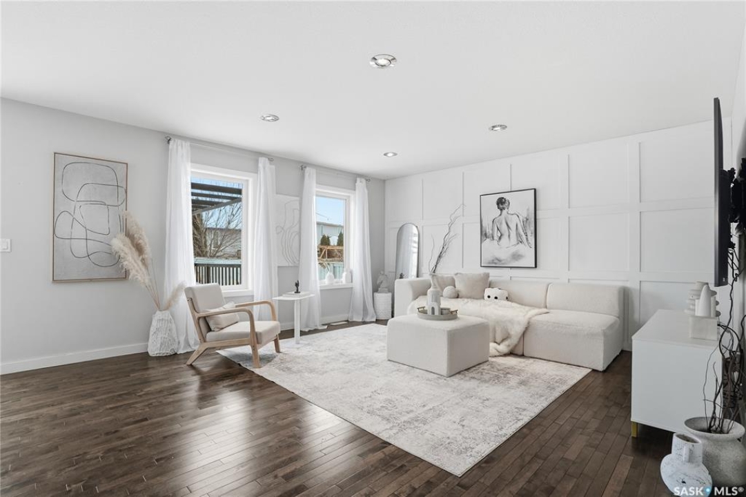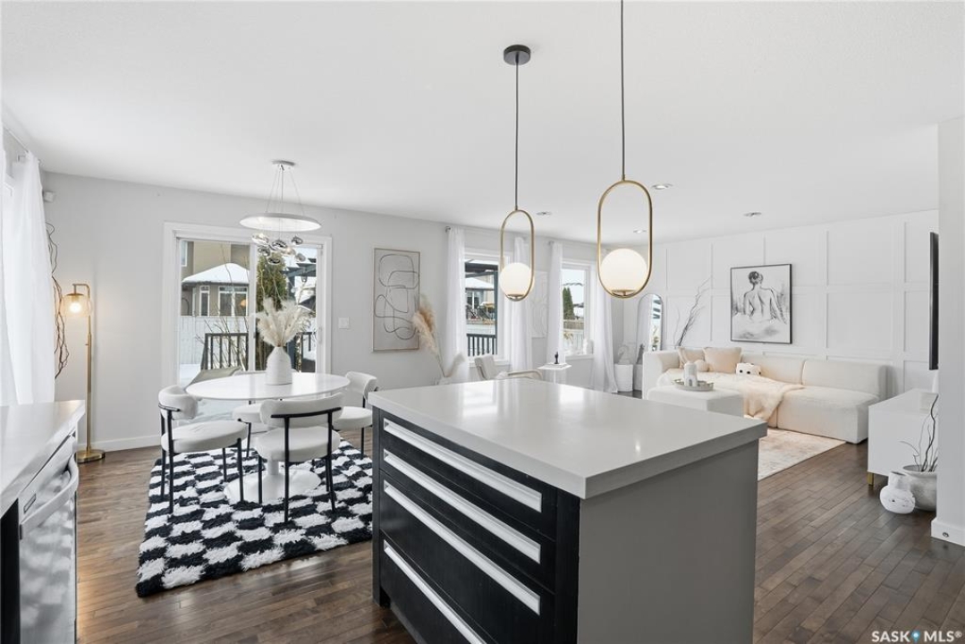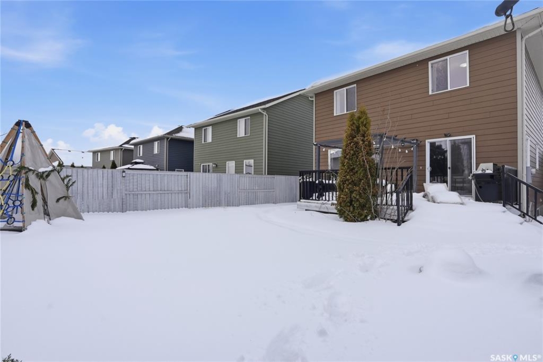 Great family home in the heart of Hampton Village with quick access to shopping, restaurants or Circle Drive to get you to the rest of the city quickly. You'll be impressed the minute you walk thru the ornate front door, greeted by gleaming hardwood floors in the front entry, there is a double wide coat closet and a wide hall that leads you to the attached garage door, the laundry closet and the 2pce bathroom with heated tile floor. The front entry hardwood flows across the main floor into the kitchen, dining room and living room. The kitchen is gorgeous with dark wood grain cabinets with a couple gull-wing glass doors, glass tile backsplash, quartz countertops and island top, stainless steel appliances and pendant lighting. The dining room is adjacent with double doors to the deck and backyard, and this level is open concept to the spacious living room with a grid paneling design feature wall all finished in contemporary white. Upstairs you find the master bedroom with cozy carpet flooring, a walkin closet that is organized with open shelving, drawers, shoe racks and hanger rods, built into the corner of this bedroom is a makeup center with more storage drawers on the bottom and glass gull-wing door cabinets above. The ensuite has a quartz vanity, ceramic tile heated floor and double wide shower with tiled walls and rain down shower head and a heated towel rack. This level also has 2 more spare bedrooms, linen closet and a 4pce bath also with quartz vanity and heated tiled floor and bathtub. The basement is unfinished but is plumbed for another bathroom, could have 2 more bedrooms, family room. The back yard is completely fenced, has a deck with aluminum rails and pergola frame, lawn, trees and shrubs. The double attached garage is insulated and boarded on the inside and the front driveway is double wide stamped and colored concrete. This house has very durable Hardy concrete board siding, Hi efficient furnace and water heater, a/c. Offers presented Jan 20/26 @5pm.