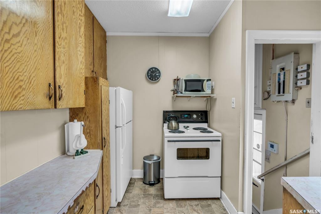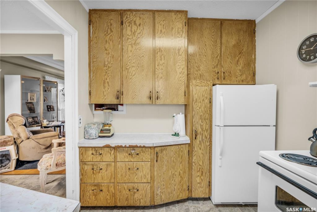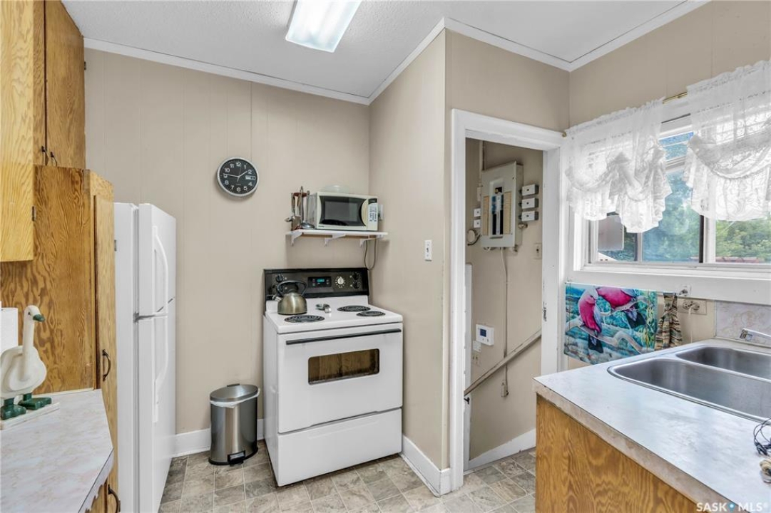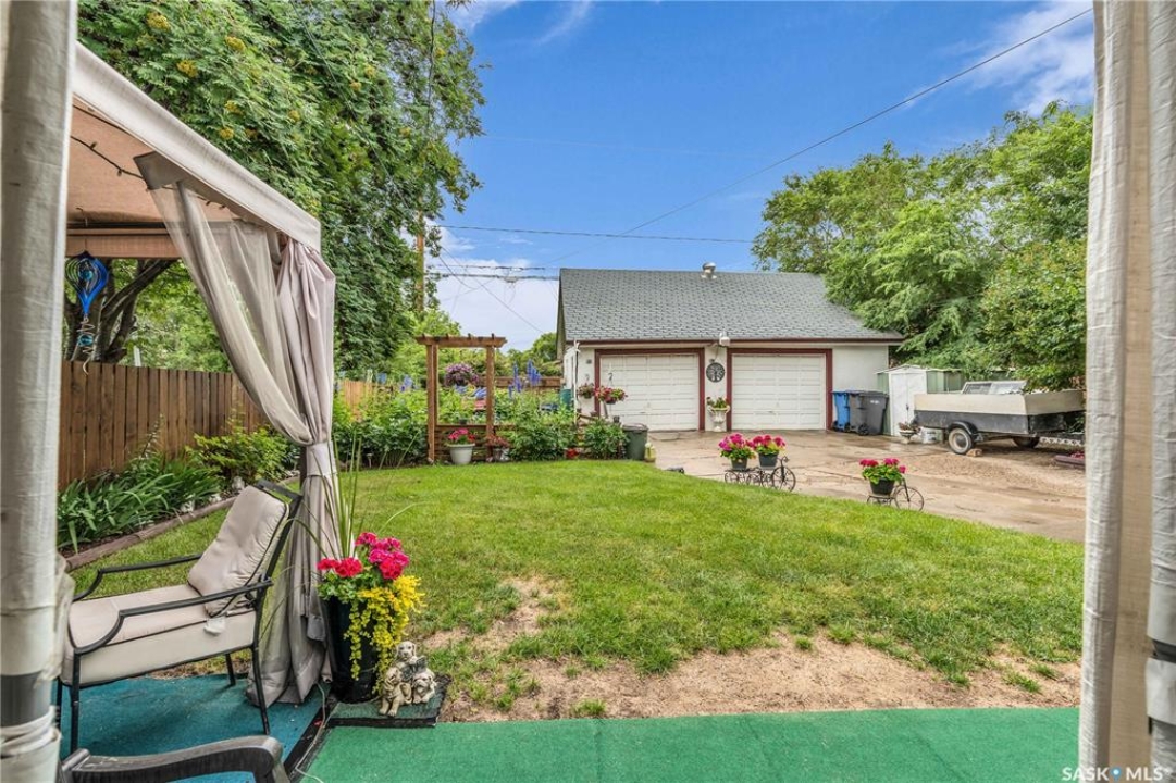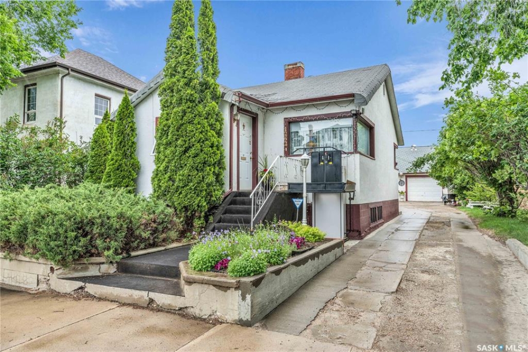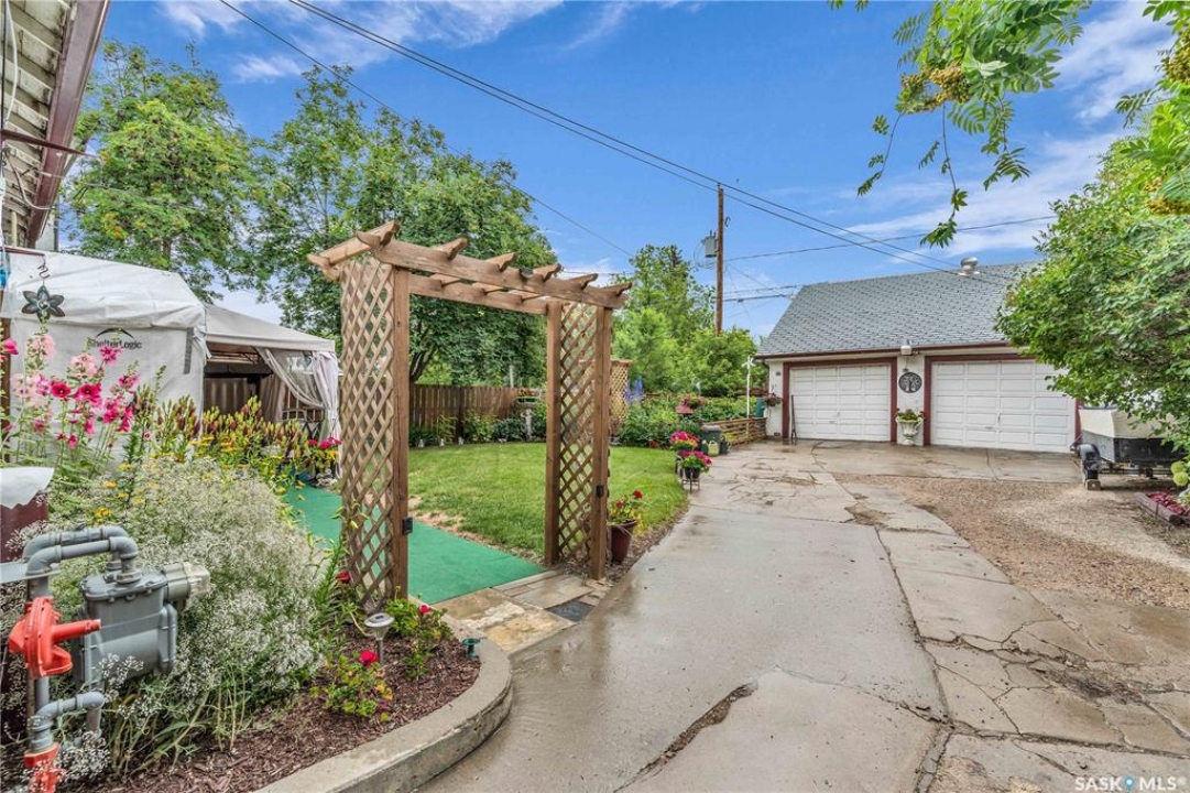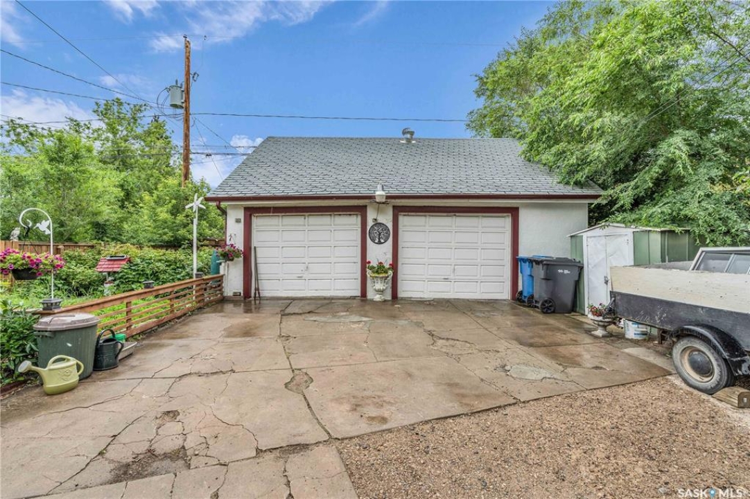Charming Character home on a quiet street! Welcome to this quaint and well-kept 808 sq. ft. home offering warmth, character, and practicality. Featuring four bedrooms and two bathrooms, this property is perfect for a small family, first-time buyers, or retirees looking to downsize without sacrificing garage or shop space. Inside, you'll find a cozy living room with plenty of natural light, a functional kitchen, and a recently renovated main bathroom complete with a modern walk-in shower. The home's layout is efficient and inviting, with thoughtful details throughout. Outside, the property truly shines. The gorgeous yard is a gardener's dream with a bounty of raspberry bushes that produce year after year. A long driveway leads to a double detached insulated garage, providing plenty of room for vehicles, storage, or workshop use. Nestled on a quiet street, this property offers the perfect blend of charm, comfort, and practicality. Whether you're starting out, settling down, or seeking a smaller space with great garage potential, this home is a must-see. Don't miss your chance to own this hidden gem!