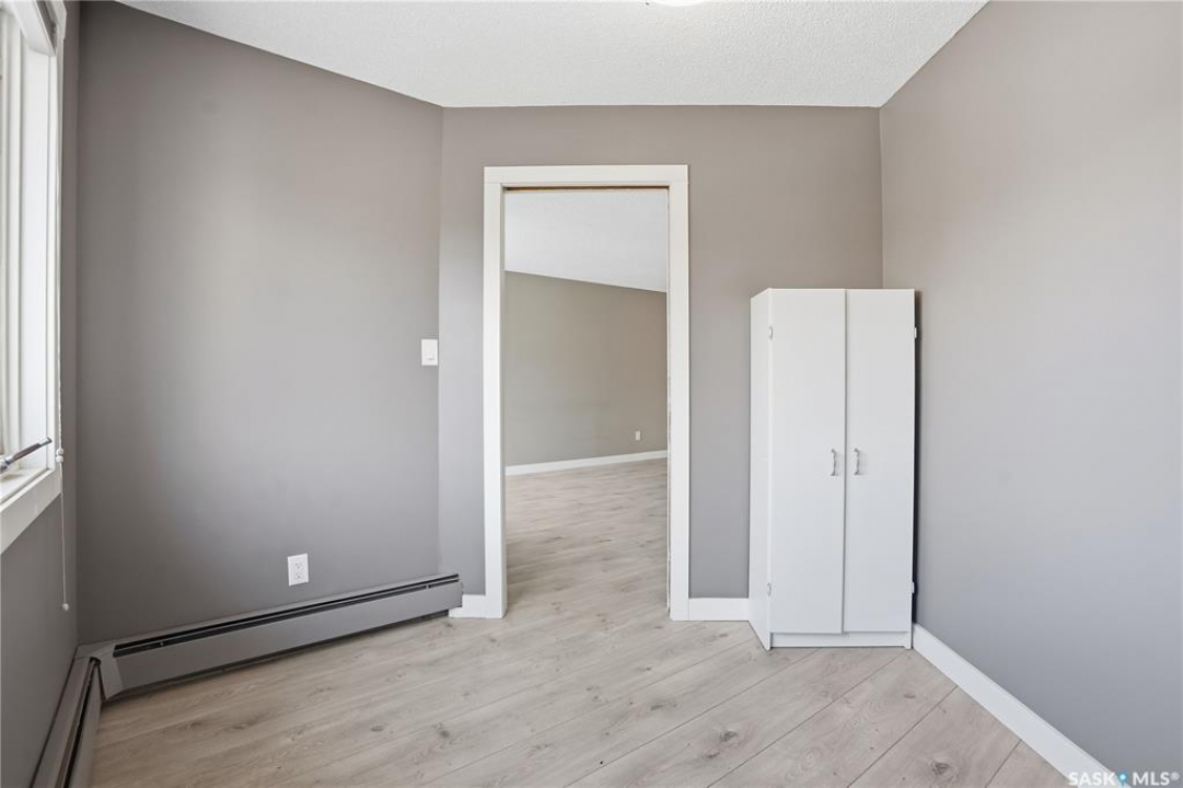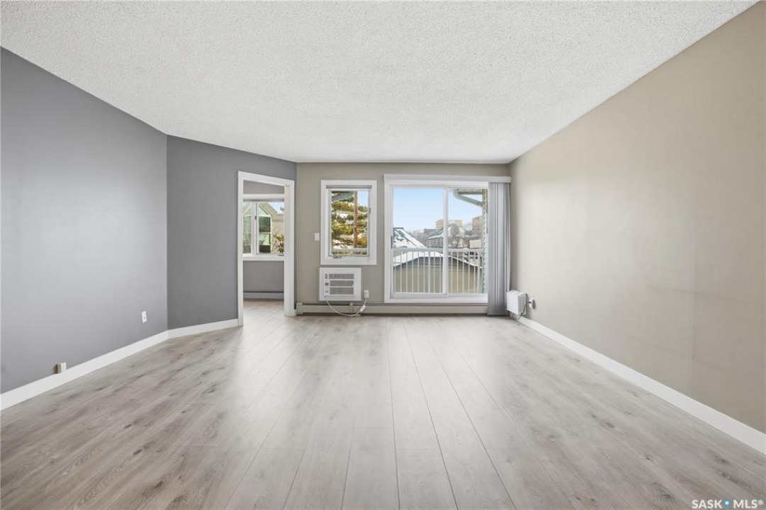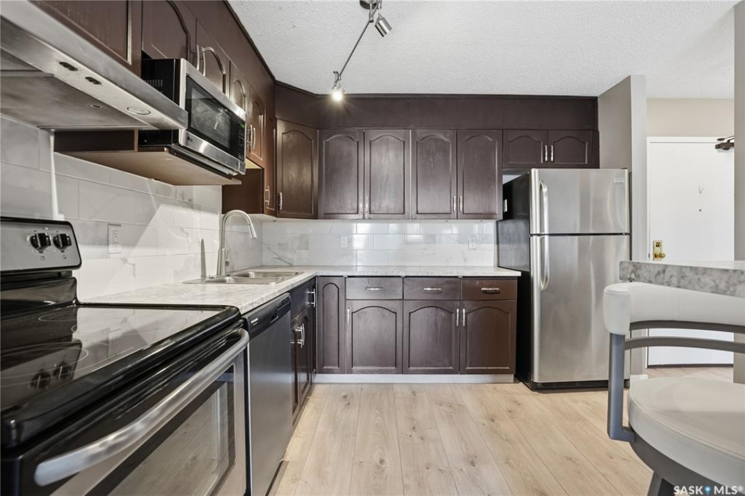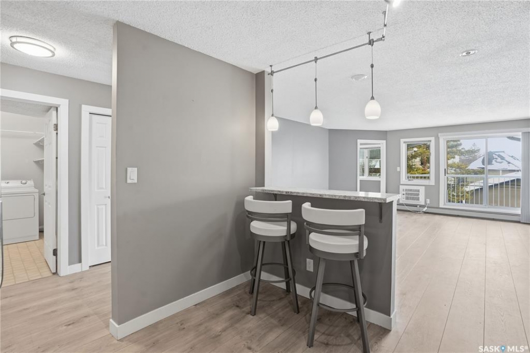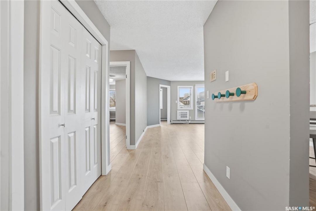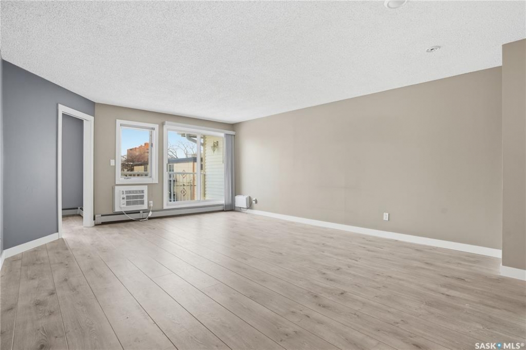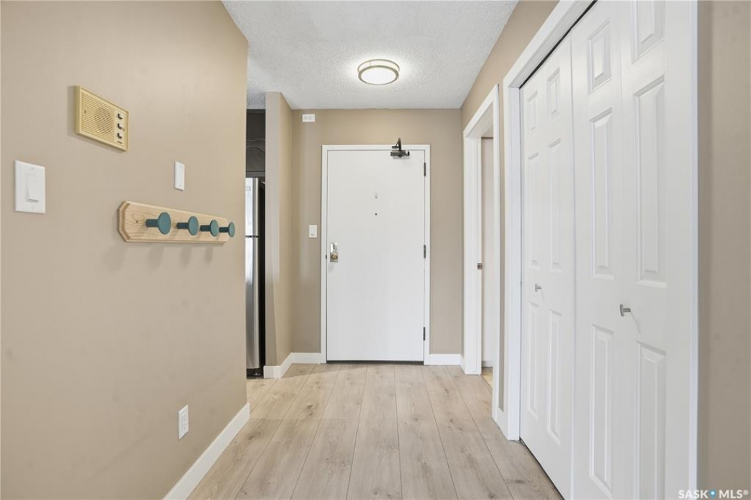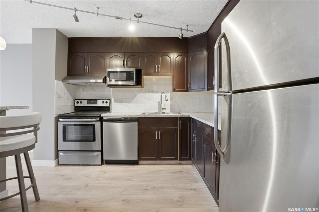 Welcome to #307 at 2275 McIntyre Street—an inviting condo that blends comfort, convenience, and great on-site amenities in a central Regina location. Step inside to a bright, functional layout with durable flooring and a wide entry hallway offering excellent closet space and a clean, contemporary feel. The kitchen features rich cabinetry, ample counter prep area, and stainless appliances, with a convenient eat-up peninsula that flows nicely into the main living space—ideal for entertaining or keeping things casual day to day. The living room is spacious and filled with natural light from the large window and patio door, leading to a private balcony where you can enjoy fresh air and city views. The bedroom offers a calming retreat with great storage, while the full bathroom is finished with a modern vanity and tub/shower combo. You'll also appreciate the everyday ease of in-suite laundry plus extra storage options to keep life organized. This well-managed building welcomes you with a bright lobby and offers secure underground parking and excellent common amenities, including a games/rec room and gathering spaces for residents. Situated close to downtown, Wascana Centre, shopping, restaurants, and transit, this is a fantastic option for first-time buyers, students, professionals, or investors looking for a low-maintenance home in a convenient location. Whether you're downsizing, buying your first place, or adding to your portfolio, #307 delivers a comfortable home base with the bonus of building amenities and a lock-and-leave lifestyle.